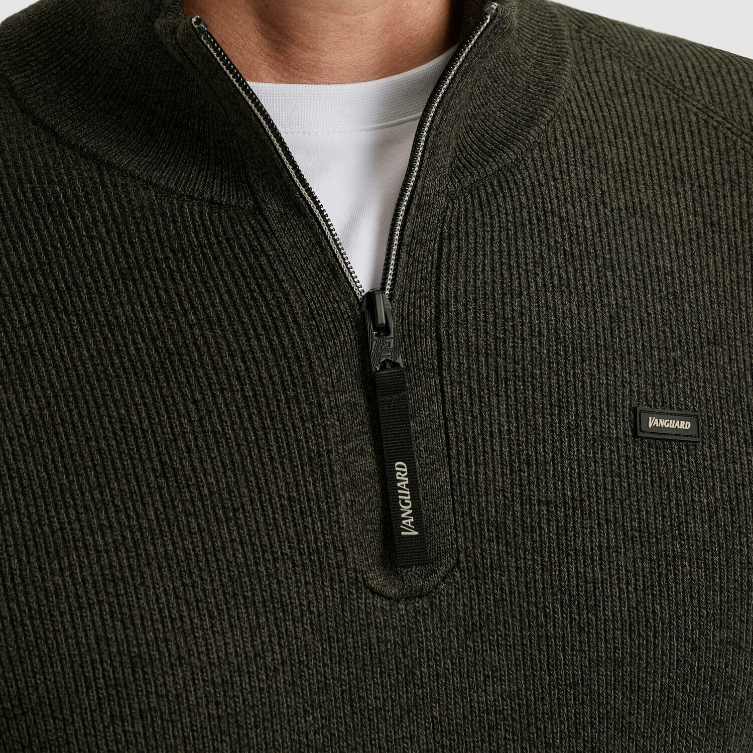De Half-zip Trui van Vanguard is een stijlvolle heren trui met een casual stijl. Voorzien van een opstaande kraag, ribgebreide mouwboorden en een praktische rits. Het regular fit design en de effen kleur maken deze trui veelzijdig en tijdloos voor elke gelegenheid.
