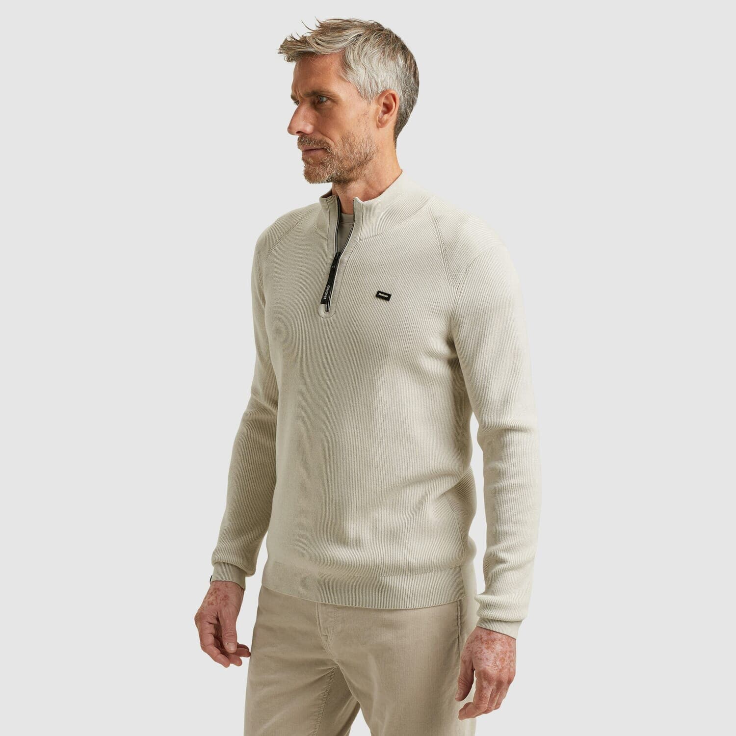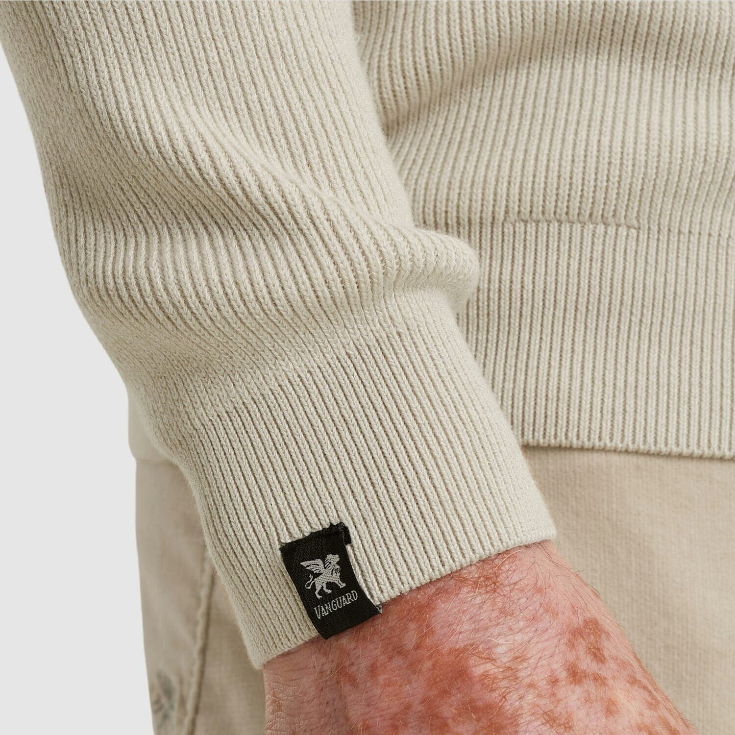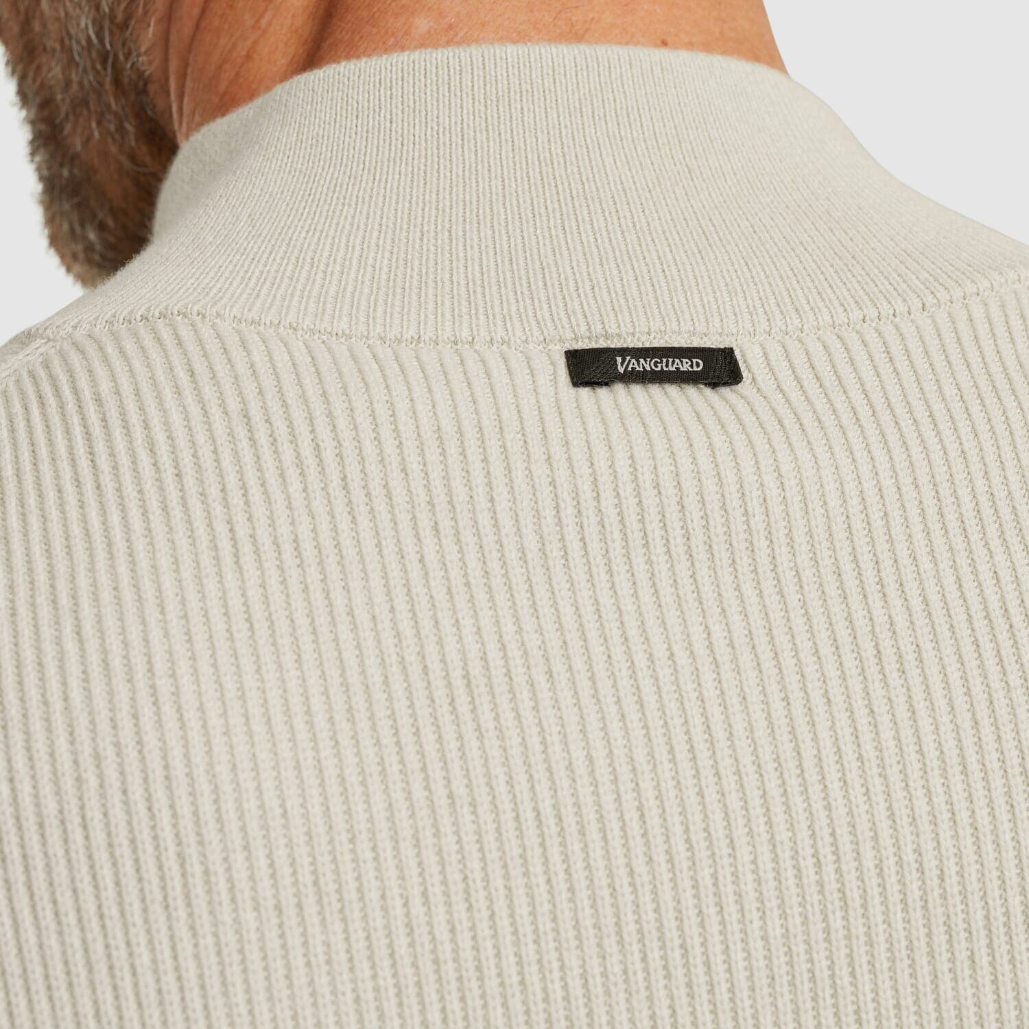 De Half-zip Trui van Vanguard, een heren trui met casual stijl, heeft een opstaande kraag en ribgebreide mouwboorden. Met een handige rits als sluiting en een regular fit past deze effen trui perfect bij elke gelegenheid. Ontdek het comfort van lange mouwen.