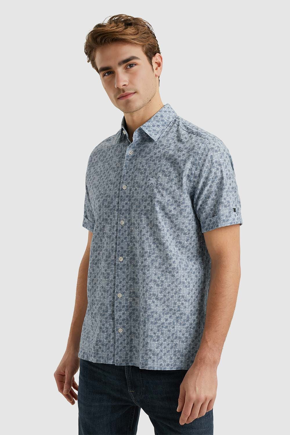 Het overhemd van Vanguard is een casual heren overhemd met korte mouw. Het heeft een button down kraag, zakken op de voorzijde en manchetknopen. Het effen patroon maakt het geschikt voor diverse gelegenheden en biedt een stijlvolle, maar toegankelijke uitstraling.