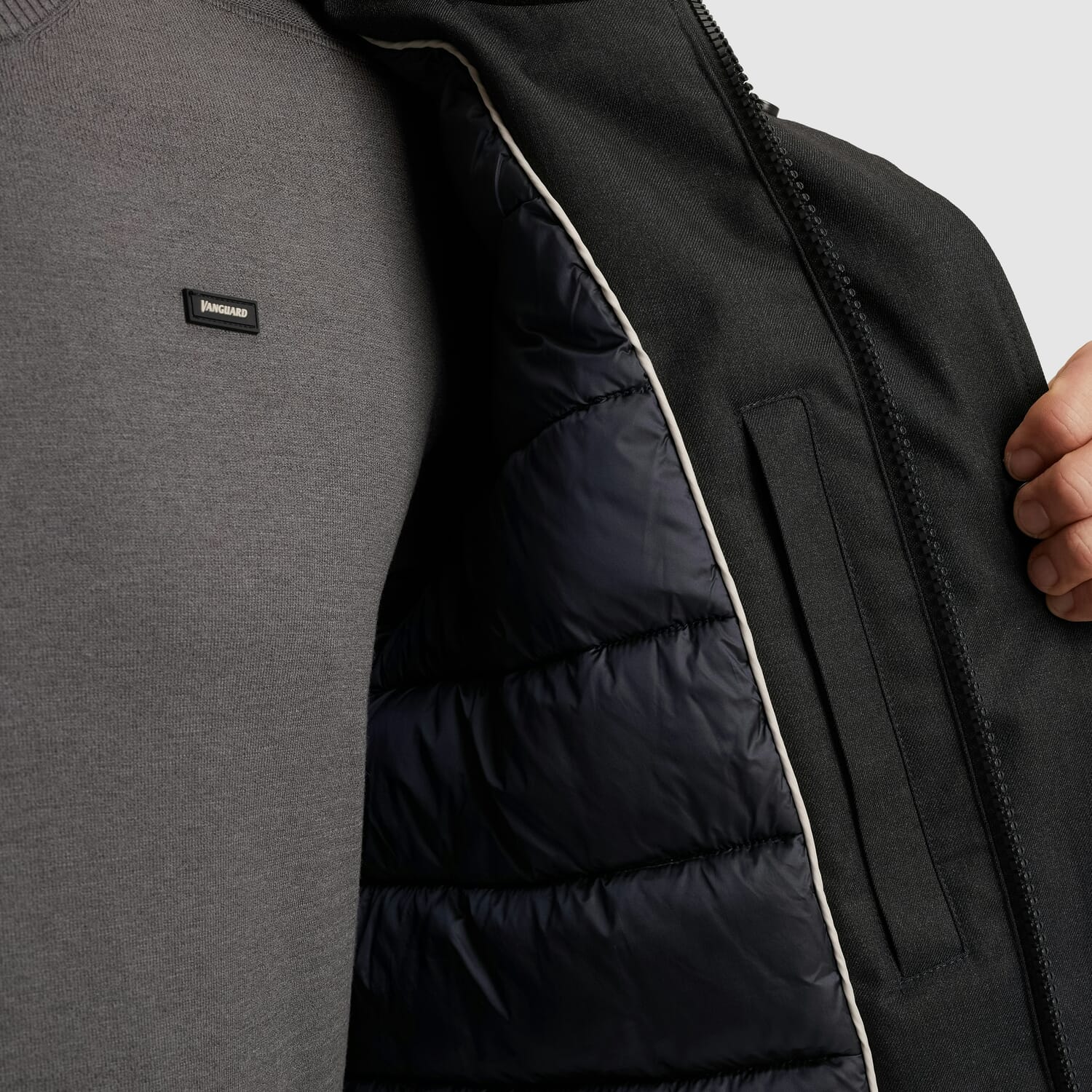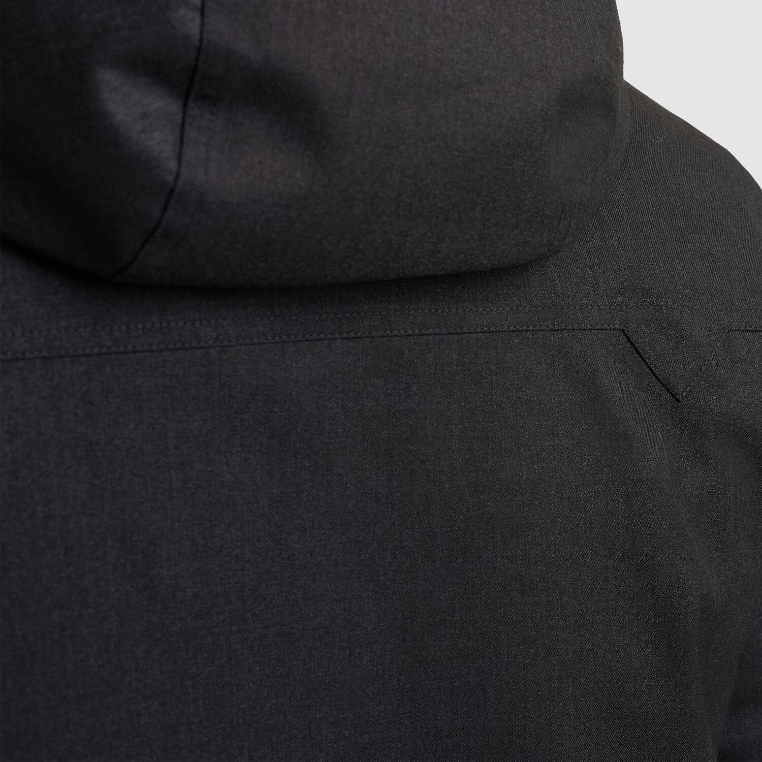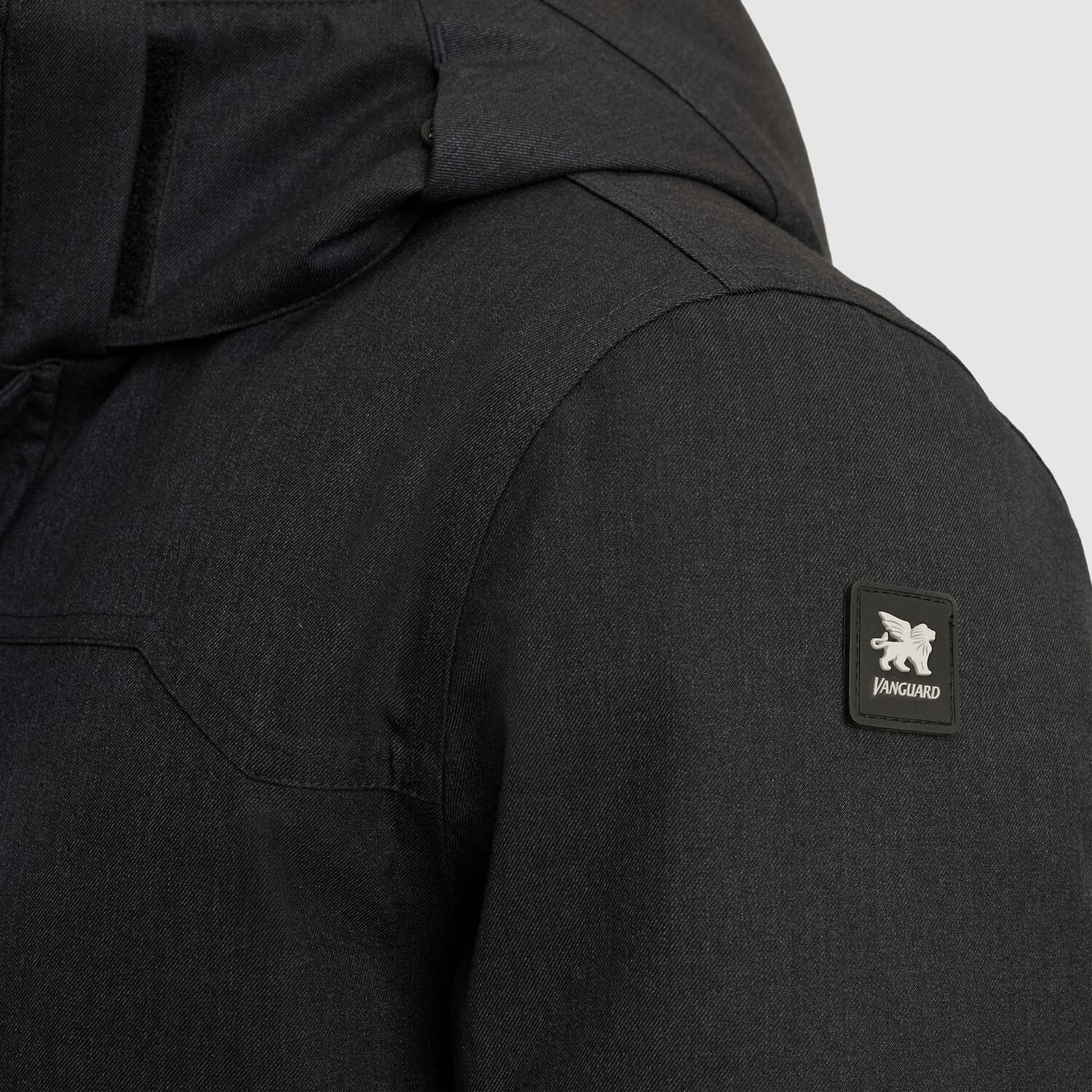 De Wheelride jas is een functionele parka met diverse zakken. Hij is gemaakt van een melange twill met een Tech Down vulling. De belangrijkste naden zijn getapet, waardoor de jas wind- en waterdicht is. De parka is voorzien van een afneembare, verstelbare capuchon en cuffs aan de binnenkant die de kou tegenhouden. Twee zijzakken met fleece voering en verborgen magneetknoop, twee zijzakken met verborgen knoopsluiting, twee borstzakken met knoopsluiting, een binnenzak met rits en een opgestikte binnenzak zorgen voor veel opbergruimte. De iconische V-vormige voering en de tijdloze Vanguard details maken deze stijl helemaal compleet.
