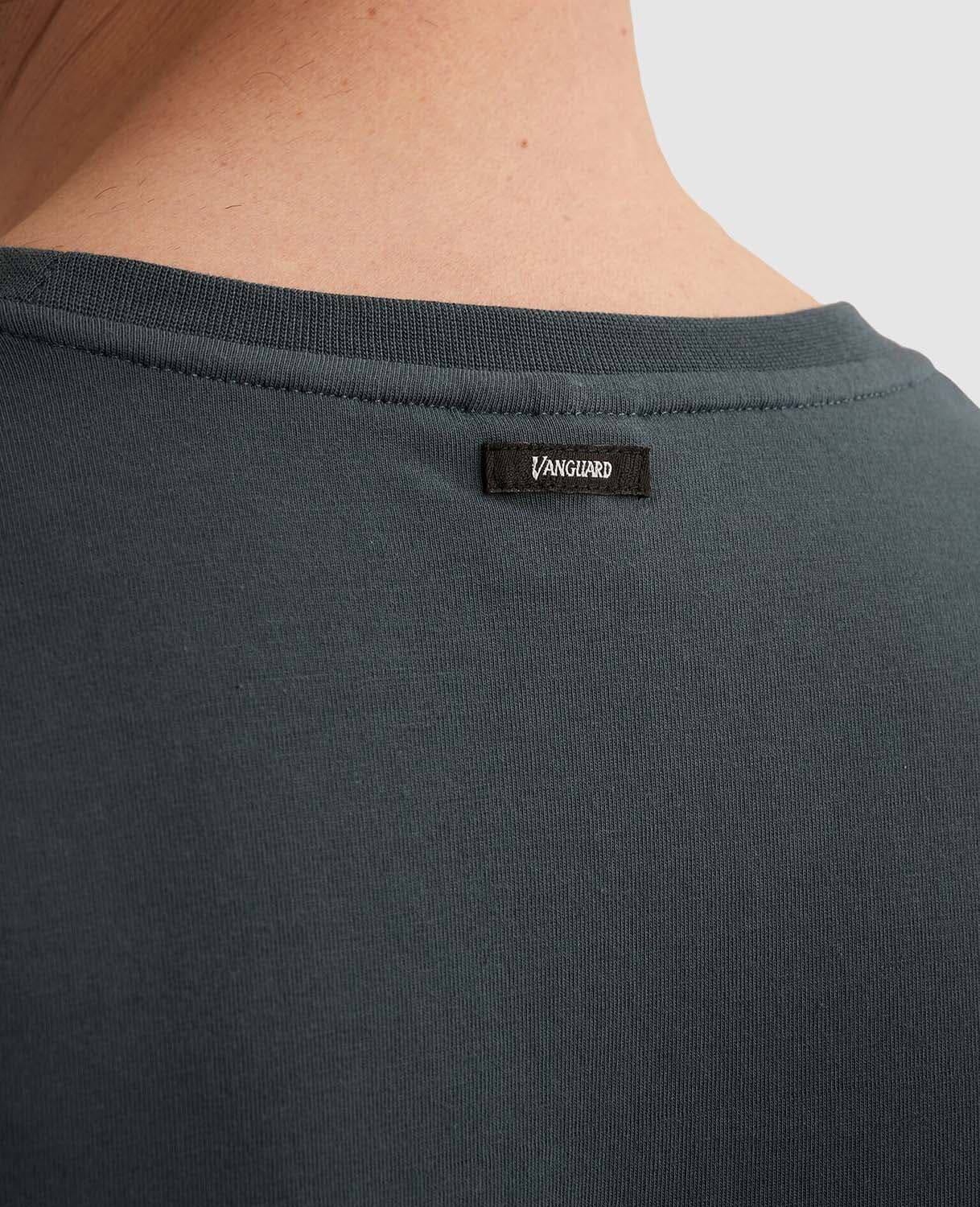 T-shirt van Vanguard met casual uitstraling en effen ontwerp. De ronde hals, korte mouwen en regular pasvorm dragen prettig en geven een verzorgde basis. Subtiele logo-badge op de borst en klein merklabel in de nek. Combineer met jeans of chino.