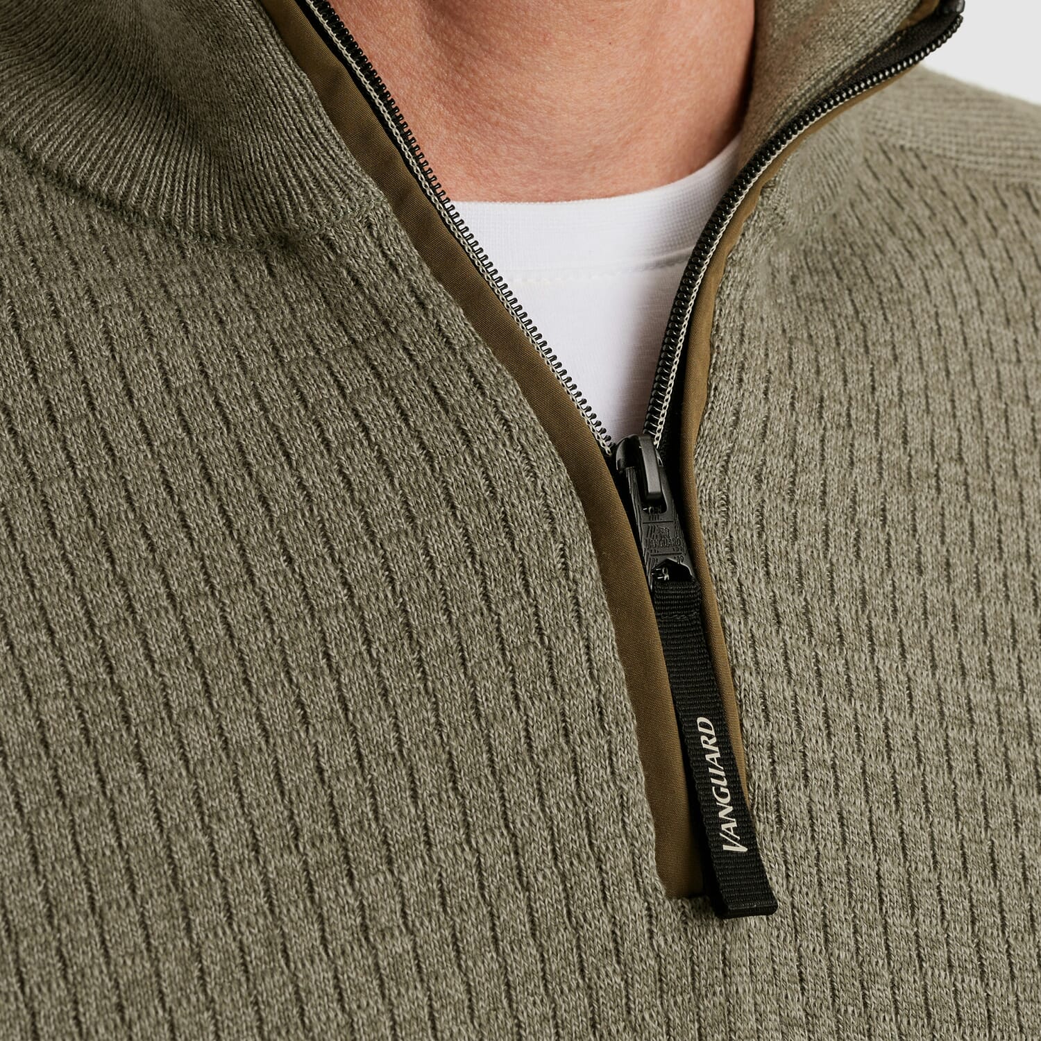 Deze trui van Vanguard, onderdeel van de heren truien, heeft een casual stijl met een opstaande kraag en een ritssluiting. De ribgebreide mouwboorden en lange mouwen zorgen voor een comfortabele pasvorm. Ideaal voor een informele gelegenheid.