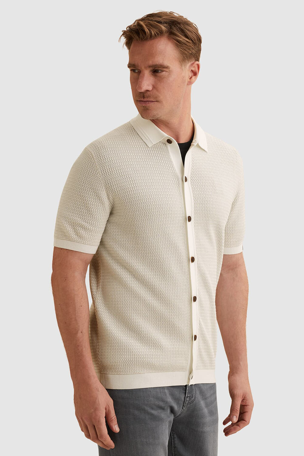 Vest met Polokraag van Vanguard met regular fit en korte mouwen. De spreidkraag en knoopsluiting geven een rustige, casual uitstraling. Ribgebreide mouwboorden en zoom zorgen voor een nette afwerking. Het effen, klassiek geweven structuurbreisel voelt stevig. Combineer met een T-shirt en jeans.