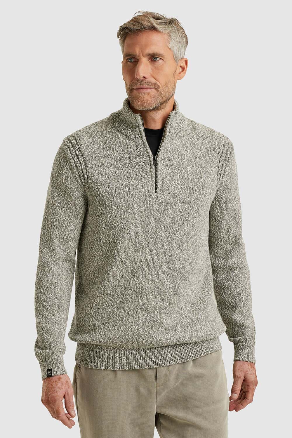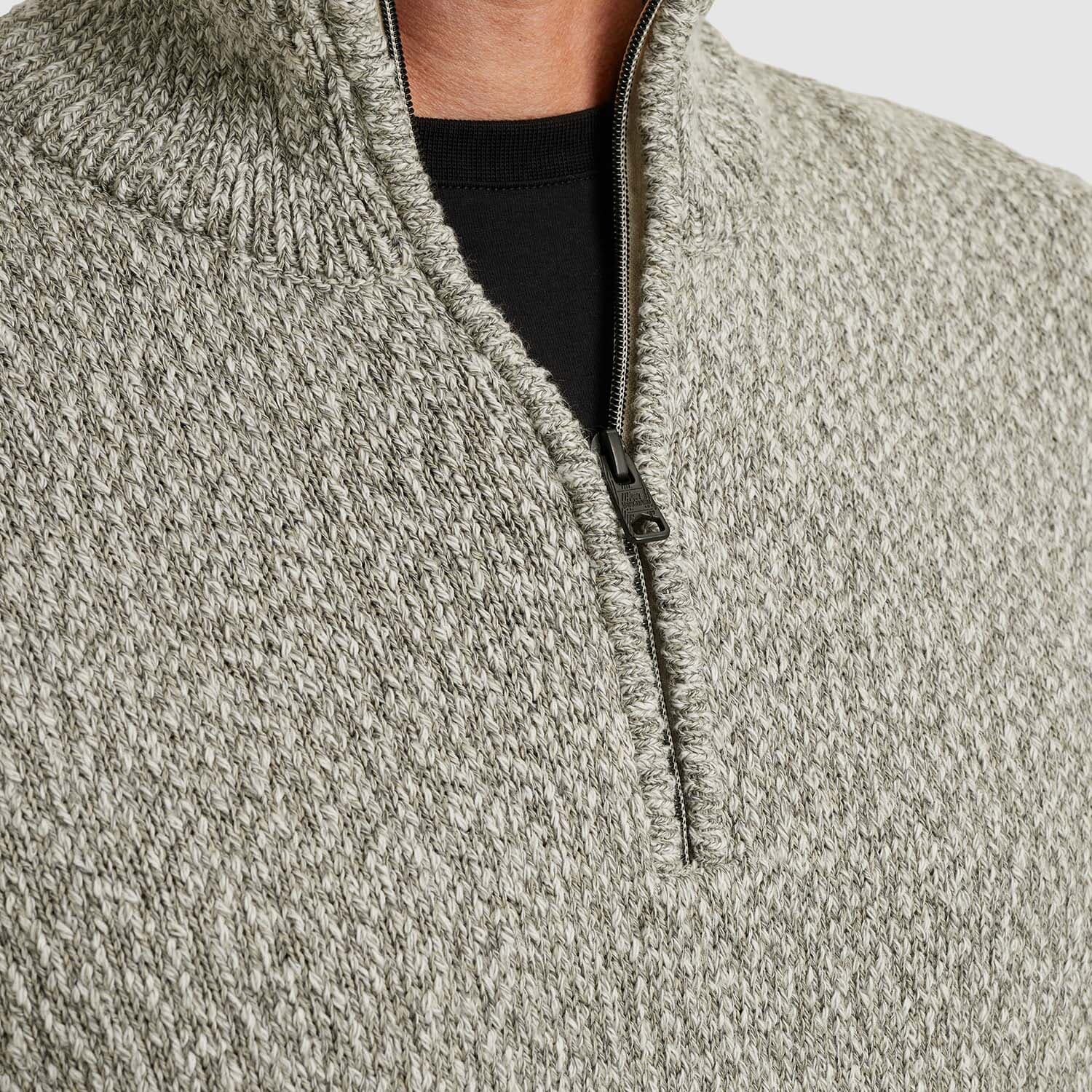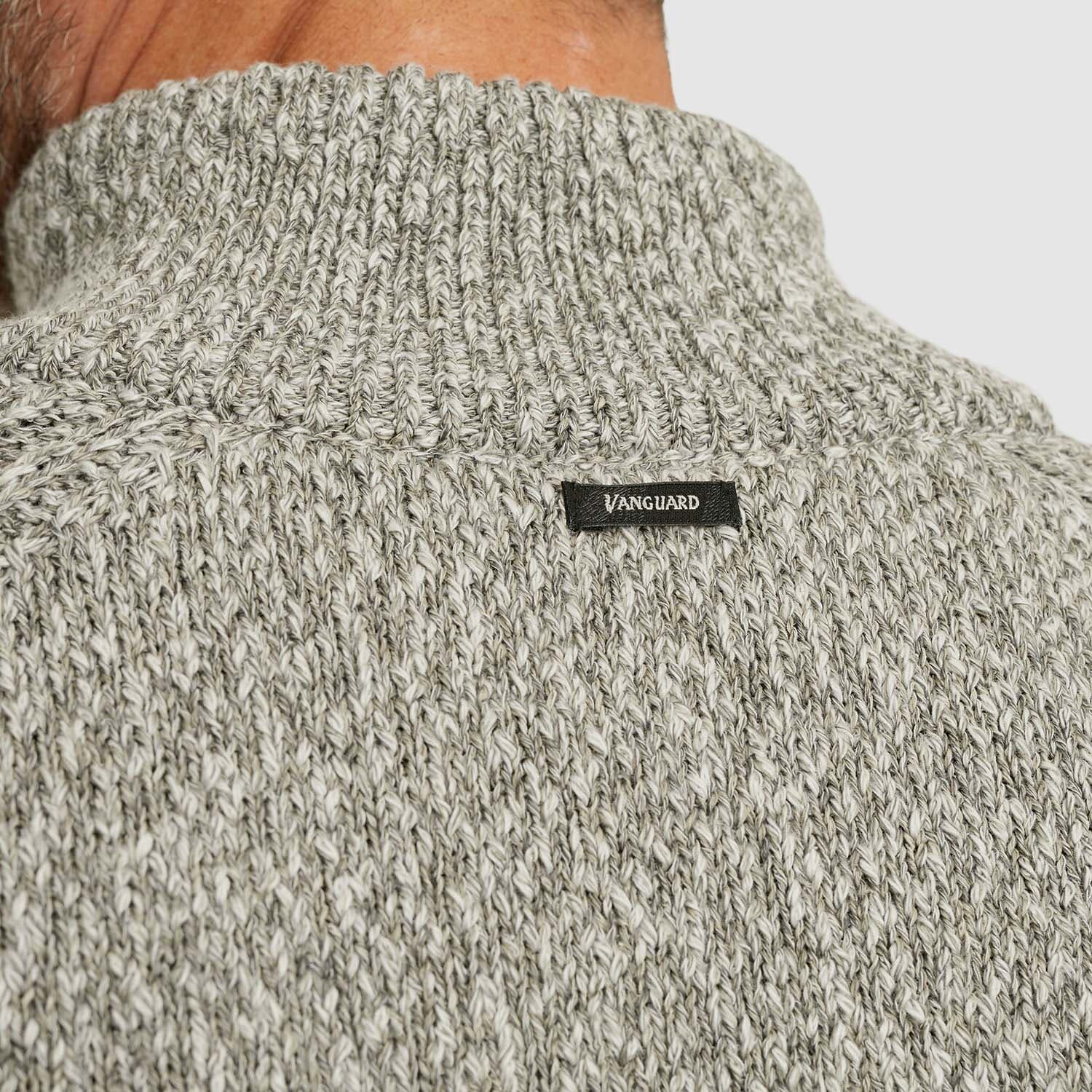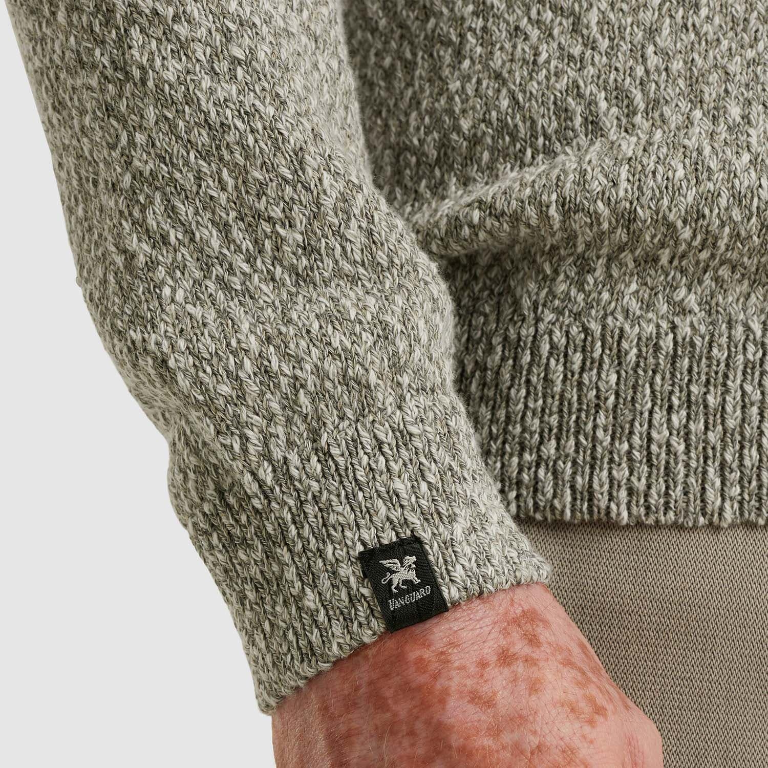 De Zip-trui van katoen slub mouliné van Vanguard is een stijlvolle toevoeging aan je collectie truien. Met een opstaande kraag, ribgebreide mouwboorden en een praktische ritssluiting biedt deze effen trui een comfortabele, casual pasvorm. Ideaal voor elke gelegenheid.