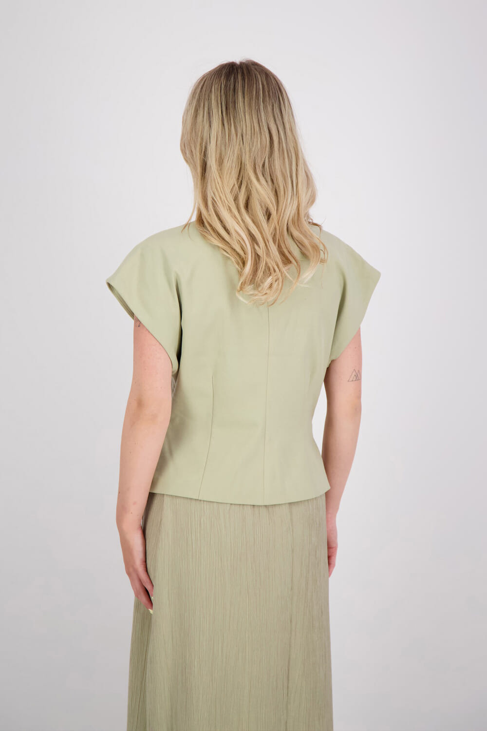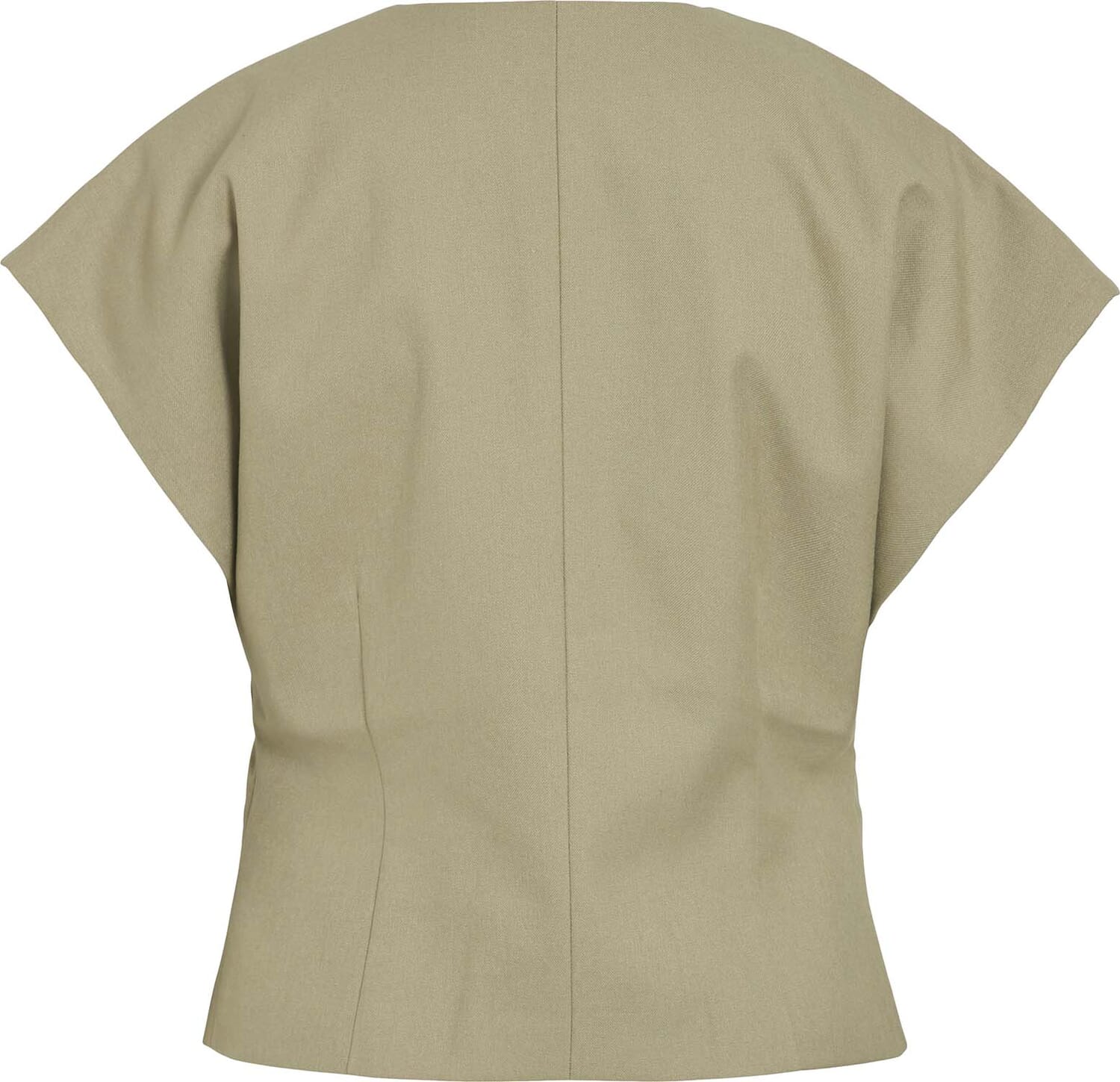 De blazer Keep van Vila is een elegante dames blazer met een v-hals en een gespreide kraag. Deze blazer heeft een getailleerde pasvorm, korte mouwen zonder knopen bij de manchetten, en een effen patroon, waardoor het veelzijdig en stijlvol is.