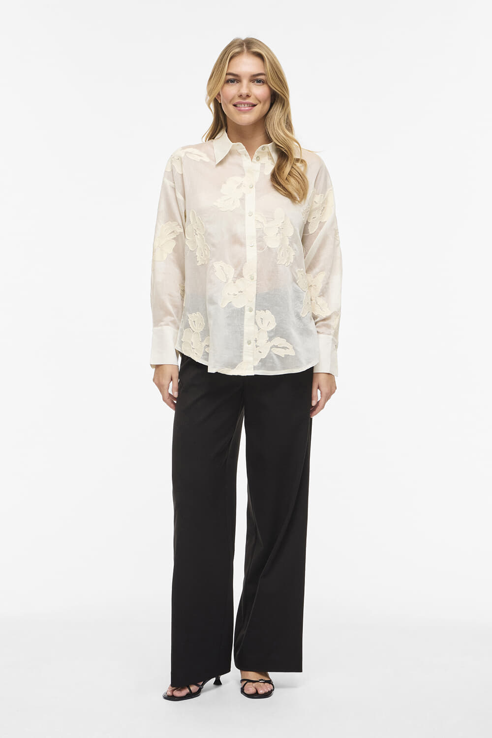 Blouse Beka Flower van Vila is een elegante blouse met een bloemenpatroon, perfect voor een casual gelegenheid. De blouse heeft een button down kraag, lange mouwen met manchetten en een losse pasvorm, wat zorgt voor een comfortabele en stijlvolle uitstraling.