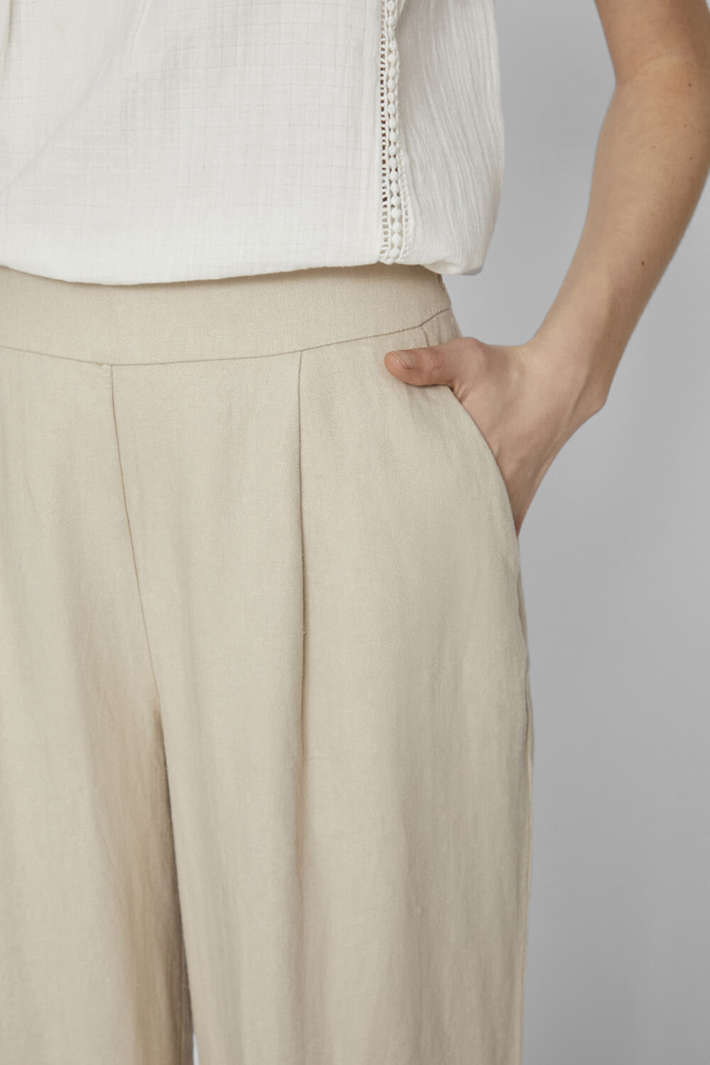 De Pantalon Jolanda HW Linnen Blend van Vila biedt een verfijnde look dankzij de minimalistische stijl. Met een hoge taille en losse pasvorm is deze dames pantalon perfect voor comfort en stijl. Het linnen materiaal zorgt voor een luchtige en elegante uitstraling.