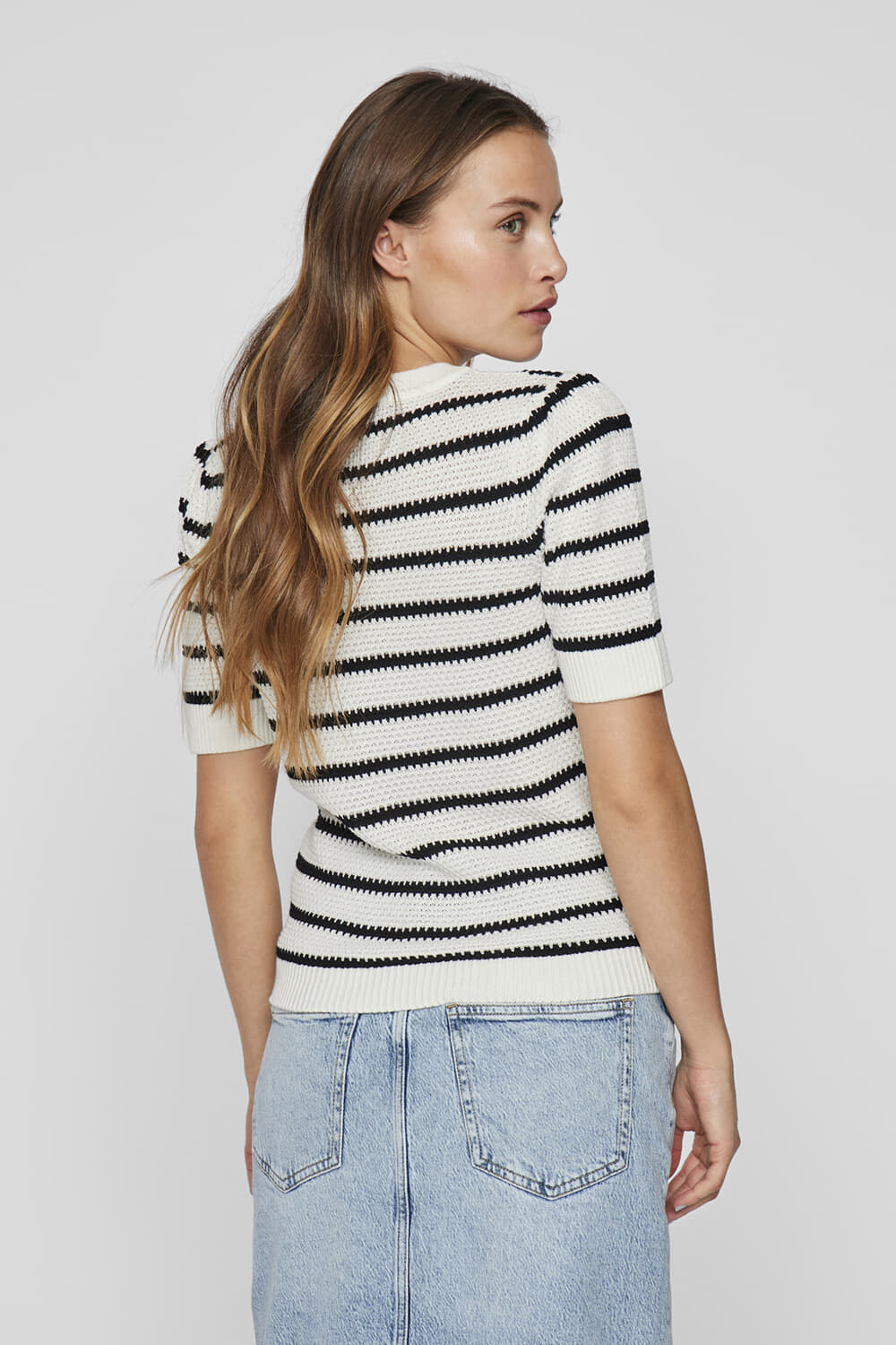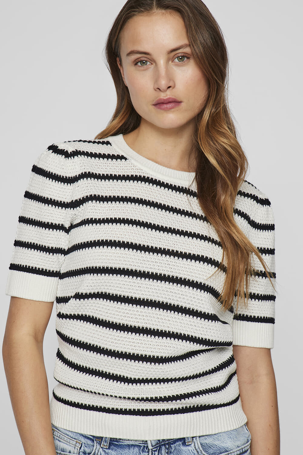 De Top Dalo Streep van Vila is een casual dames t-shirt met een opvallend streepjespatroon. Het heeft korte mouwen met ribgebreide boorden en een ronde hals, en biedt een regular pasvorm. Perfect voor een ontspannen, stijlvolle look.