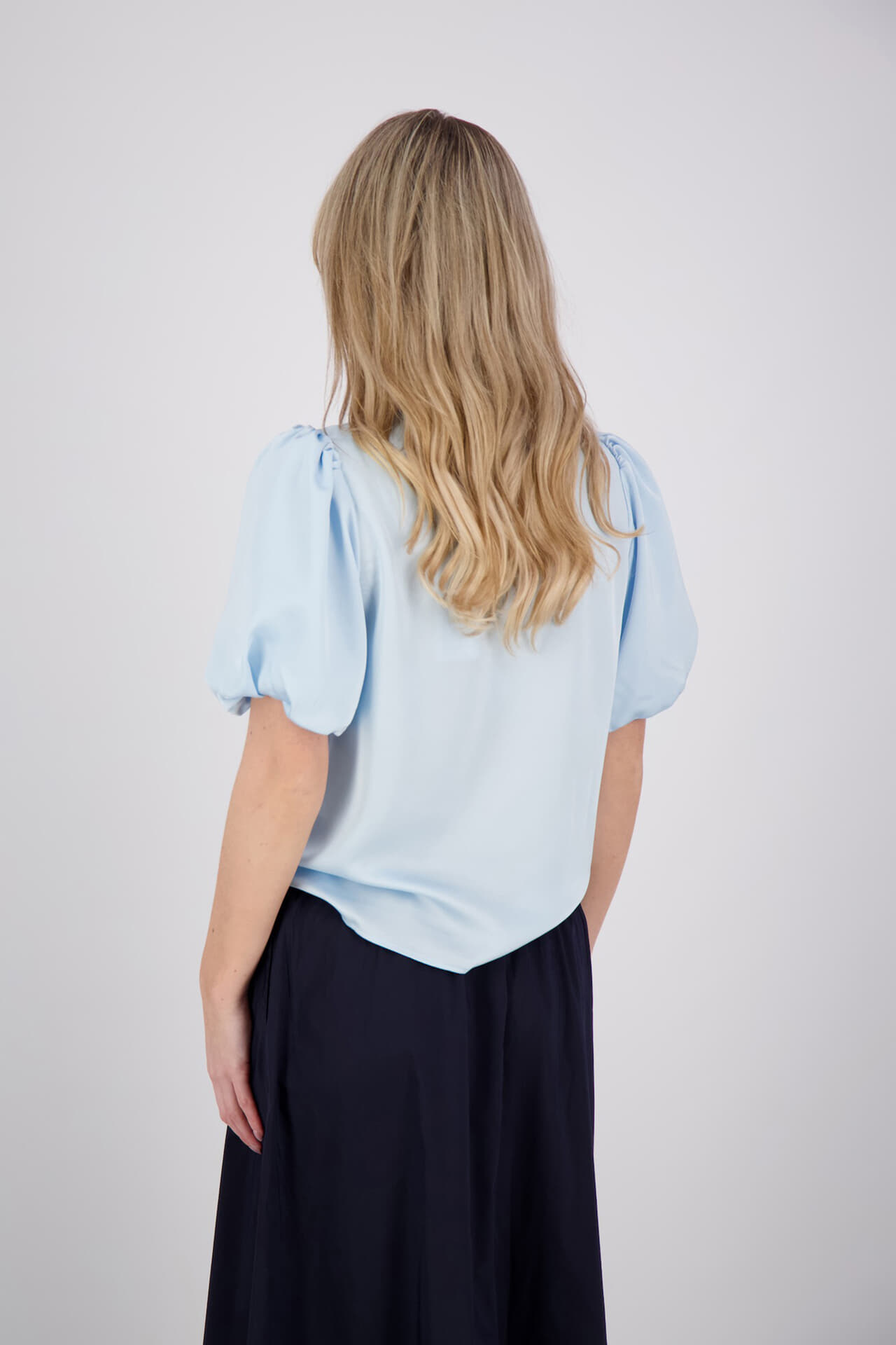 De Top Ellette Satin Puff van Vila is een elegante dames top met een opstaande kraag en ronde halslijn. Het heeft een regular pasvorm met korte mouwen, perfect voor een stijlvolle uitstraling. Het effen patroon zorgt voor veelzijdige combinaties.
