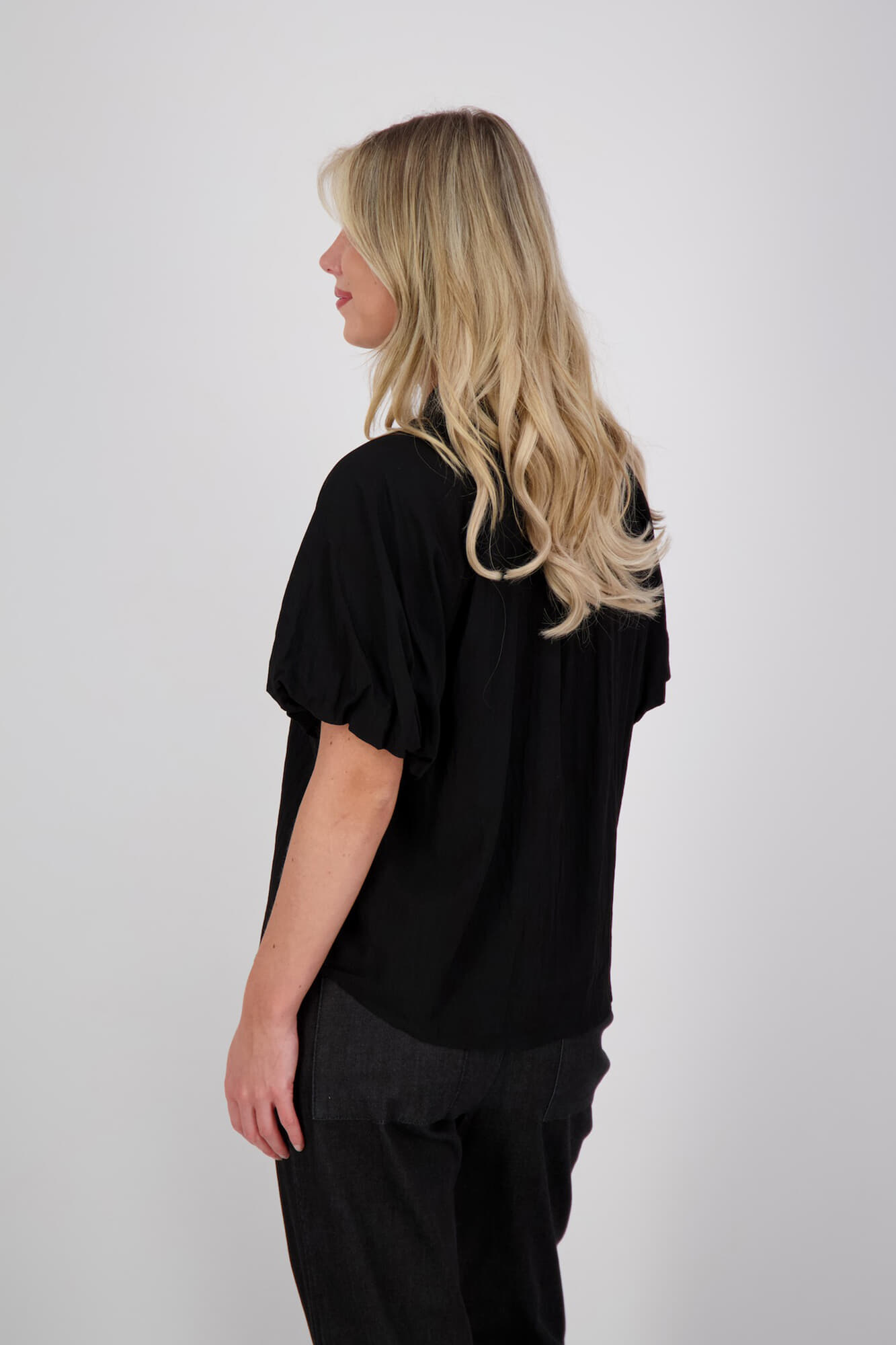 De Top Fridina van Vila is een stijlvolle dames top korte mouw met een button down kraag en knoopsluiting. Het effen patroon en de korte mouwen met elastische manchetten zorgen voor een casual en nette uitstraling, perfect voor elke gelegenheid.