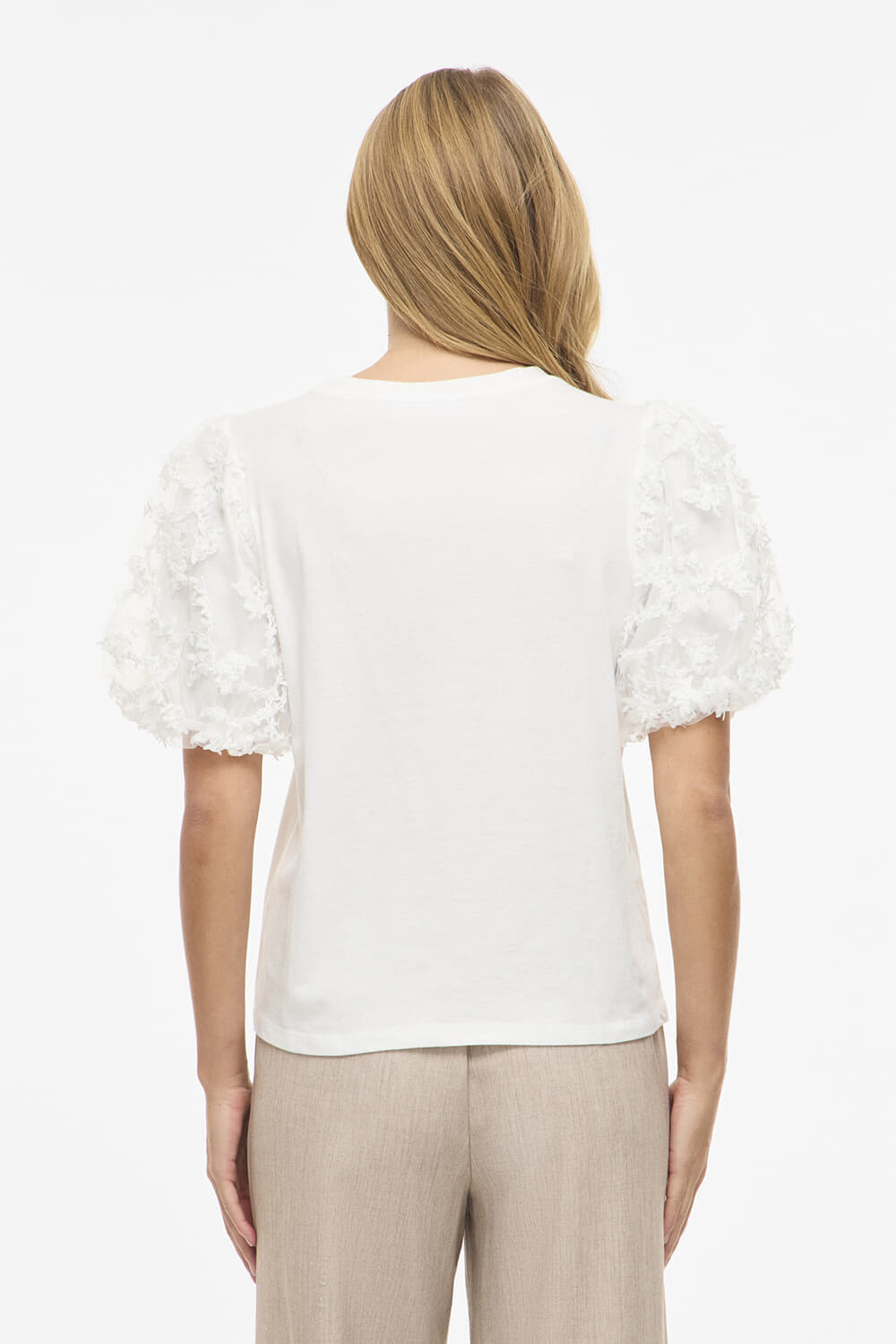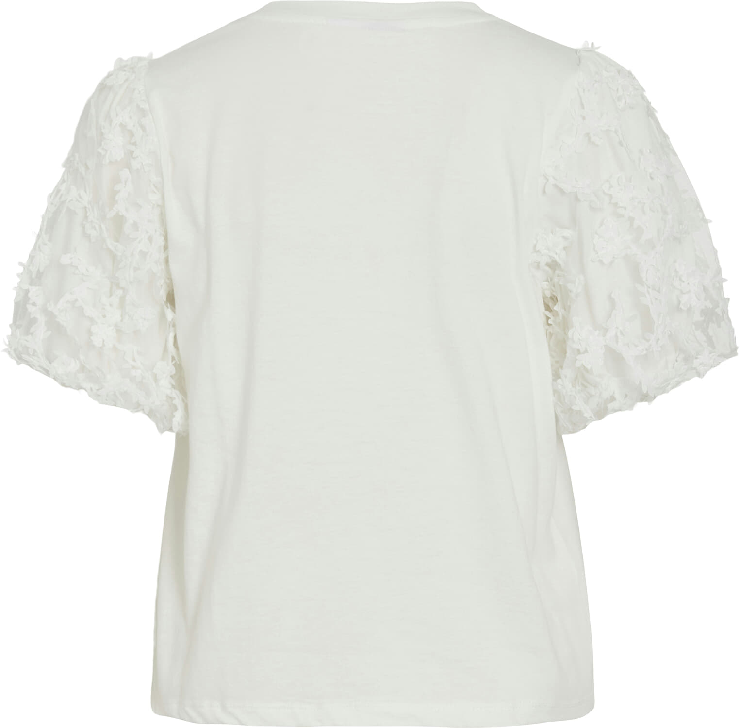Top Onesca van Vila is een top met korte mouw, ronde hals en regular pasvorm. De mouwen zijn uitgevoerd in luchtige mesh met 3D-bloemen, wat het item extra structuur geeft. Draagt prettig en combineert makkelijk met een jeans of een nette pantalon voor casual momenten.