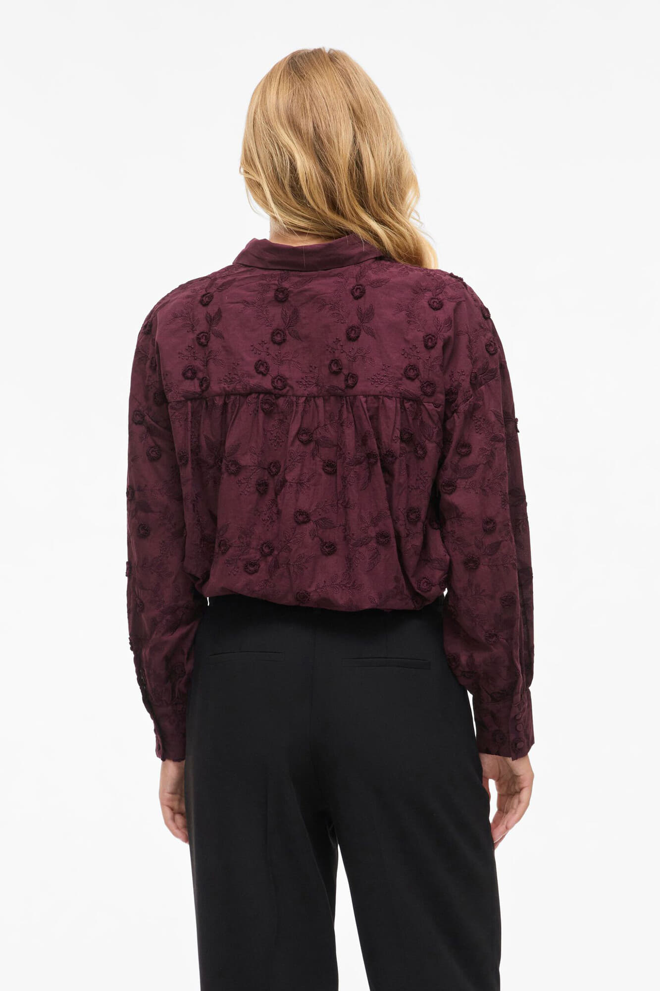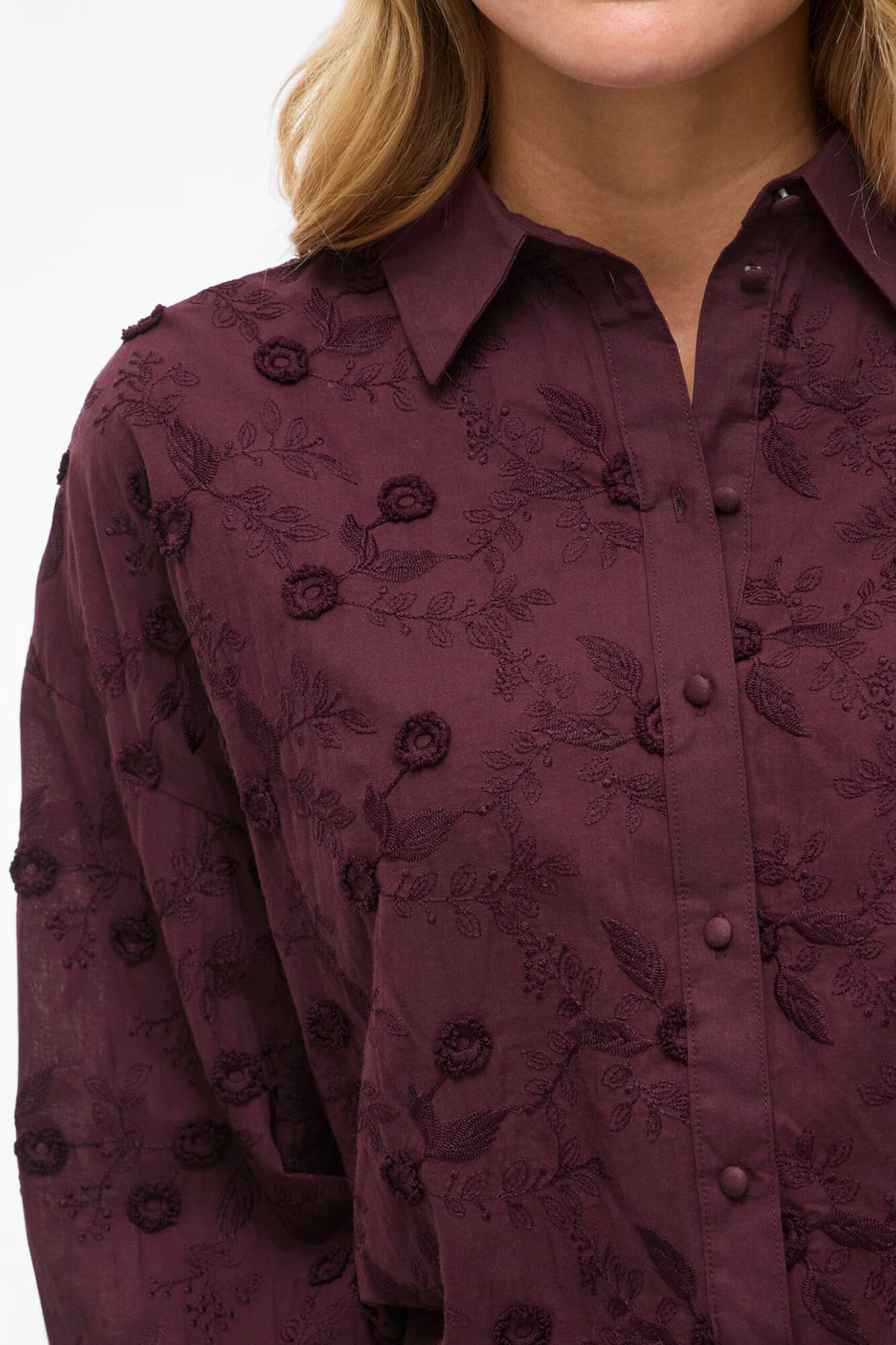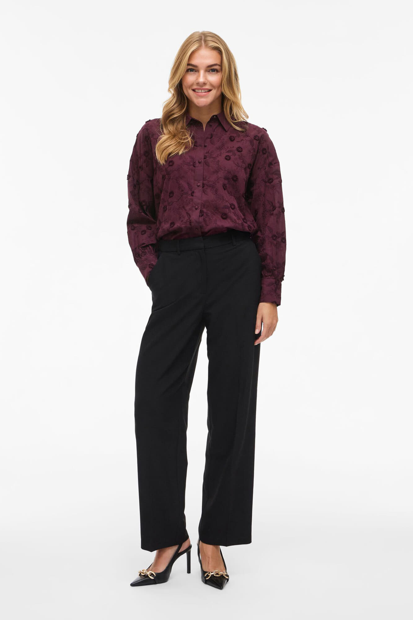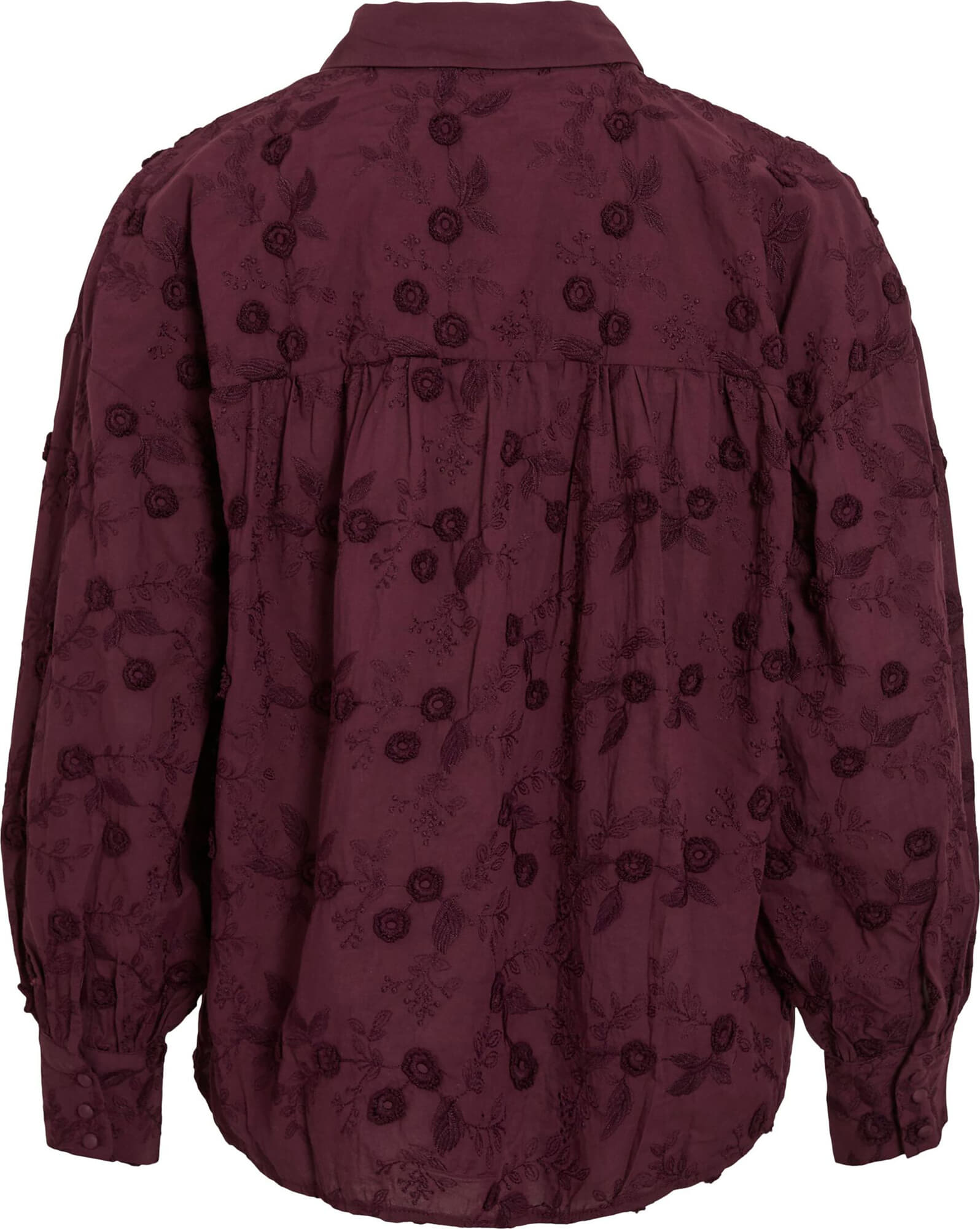 De Top Simone van Vila is een dames blouse met een losse pasvorm, gekenmerkt door een bloemenpatroon. De lange mouwen eindigen in manchetknopen en een knoopsluiting accentueert de overhemdkraag. Deze blouse combineert elegantie met draagcomfort en is perfect voor diverse gelegenheden.