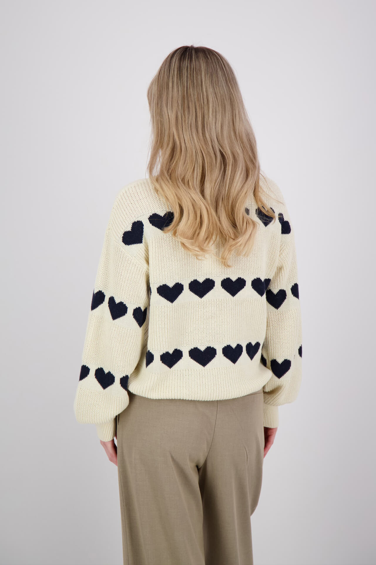 De Gebreide Trui Jamilla Jacquard van Vila is een casual dames trui met een ronde hals en lange mouwen. Het hartjespatroon geeft een speelse touch, terwijl de gebreide, losse pasvorm zorgt voor comfort en stijl. Ideaal voor een informele gelegenheid.