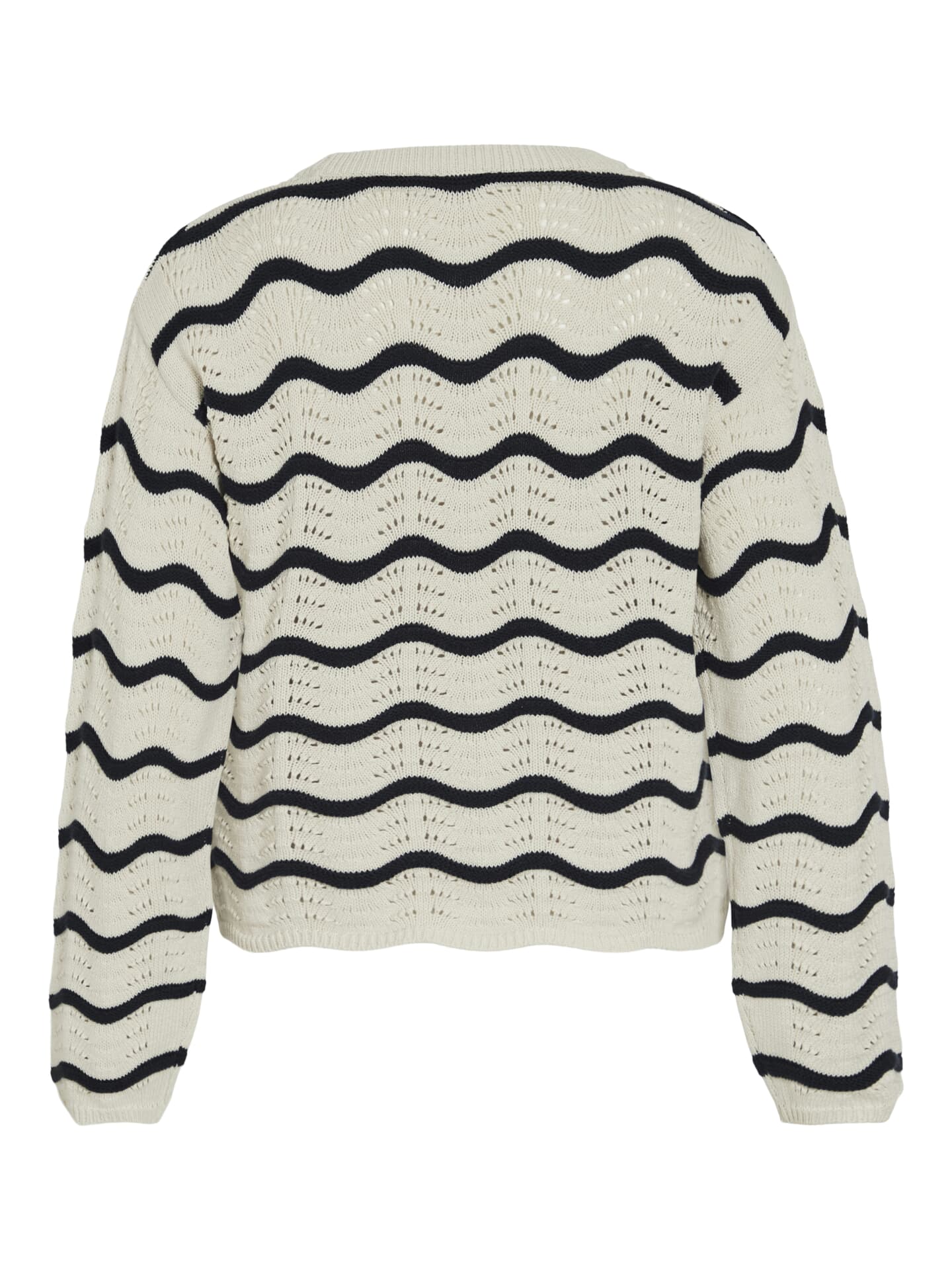 De Trui Wave Pointelle van Vila is een elegante dames trui met een boothals en een casual streep patroon. De ribgebreide mouwboorden en losse, relaxed fit met lange mouwen maken deze trui perfect voor een comfortabele en modieuze uitstraling.