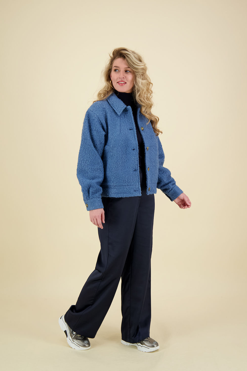 De Blazer van Vive La Femme is een stijlvolle toevoeging aan elke garderobe. Deze casual oversized tussenjas, gemaakt van wol, heeft een effen patroon en lange mouwen. Perfect voor een modieuze, warme uitstraling, ideaal voor het tussenseizoen.
