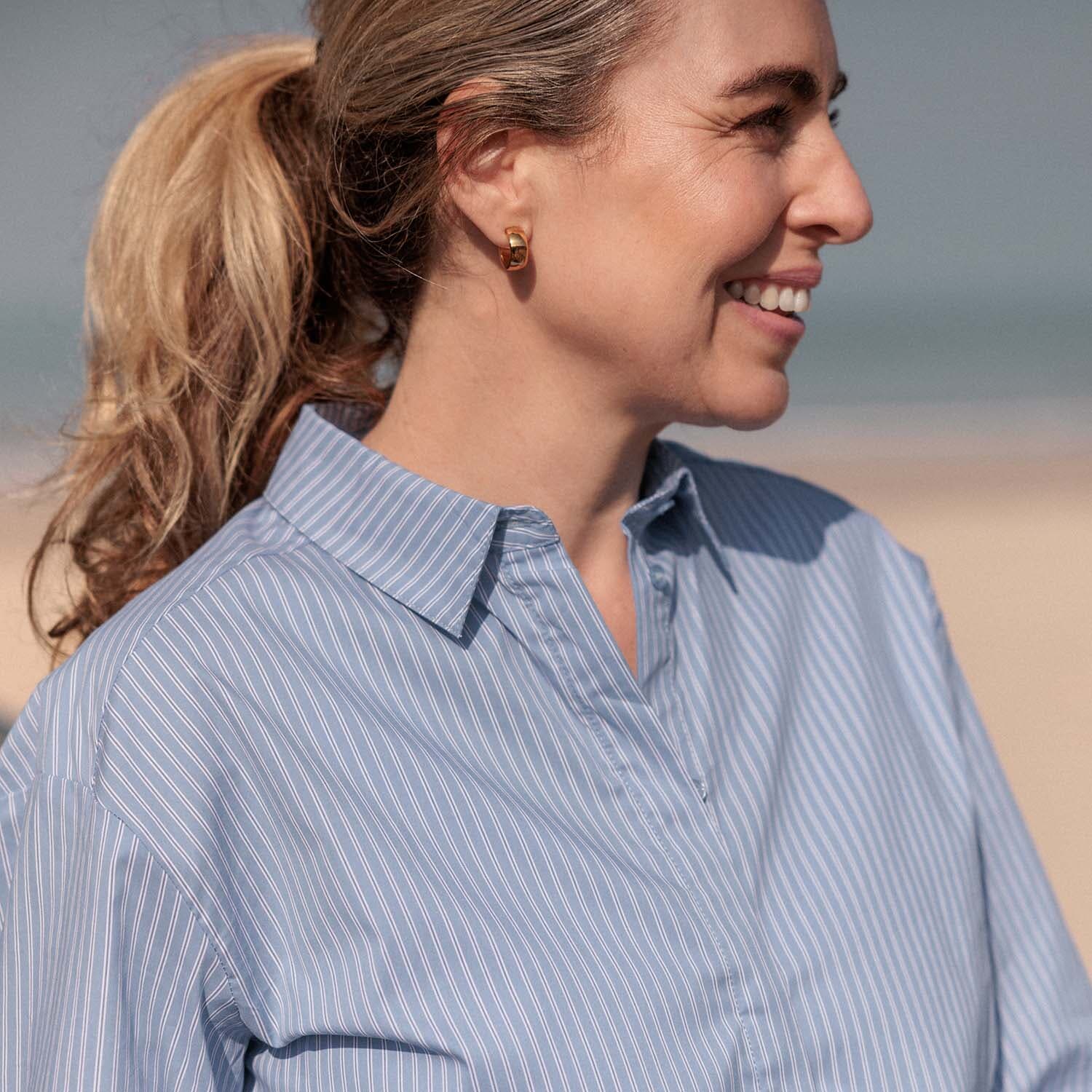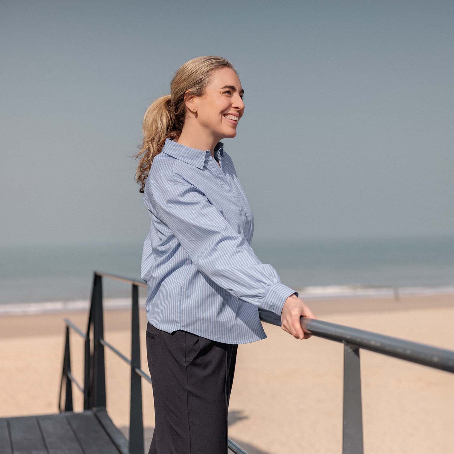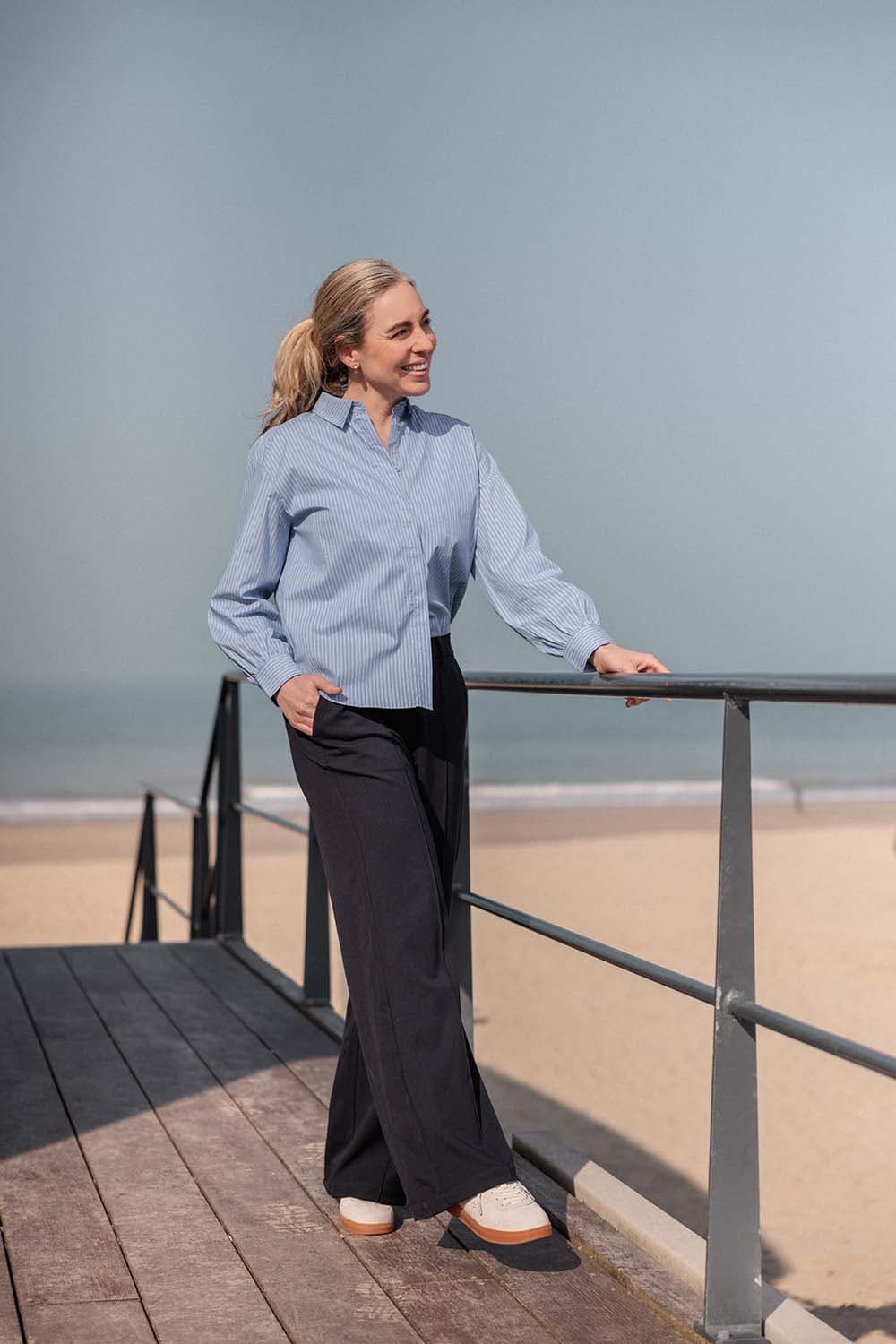 De Blouse Arloes van Vive La Femme is een stijlvol business overhemd. Deze dames blouse heeft een opstaande kraag, lange mouwen met manchetten en een klassieke knoopsluiting. Het streeppatroon geeft een nette uitstraling, ideaal voor zakelijke gelegenheden. Kies voor comfort en stijl met deze regular fit blouse.
