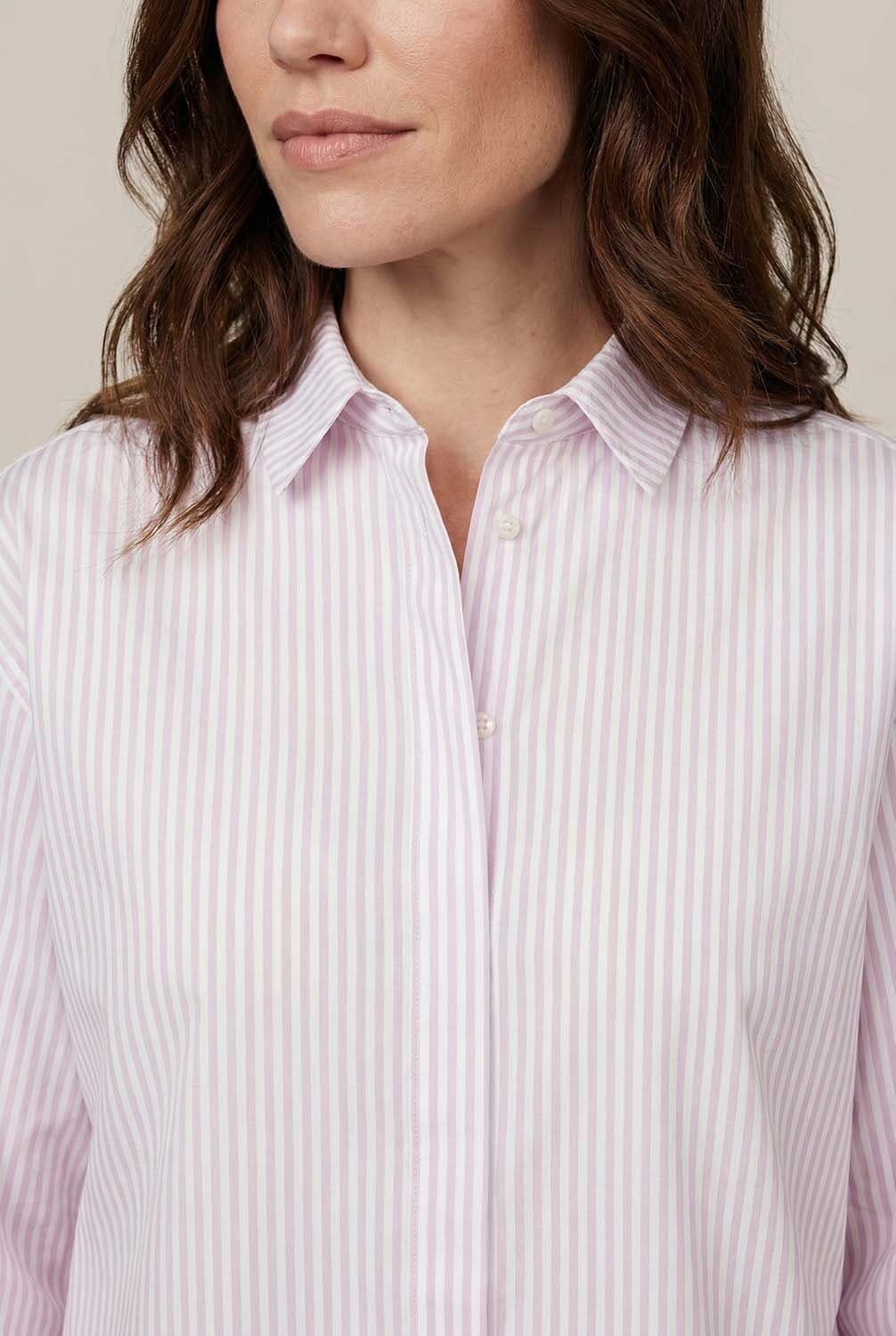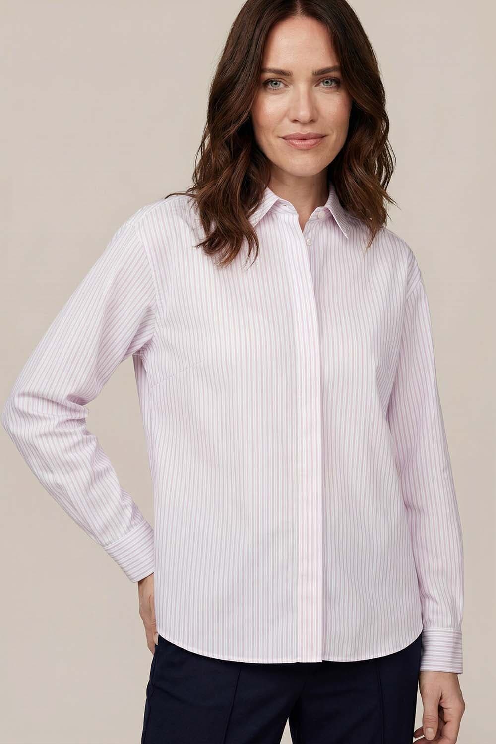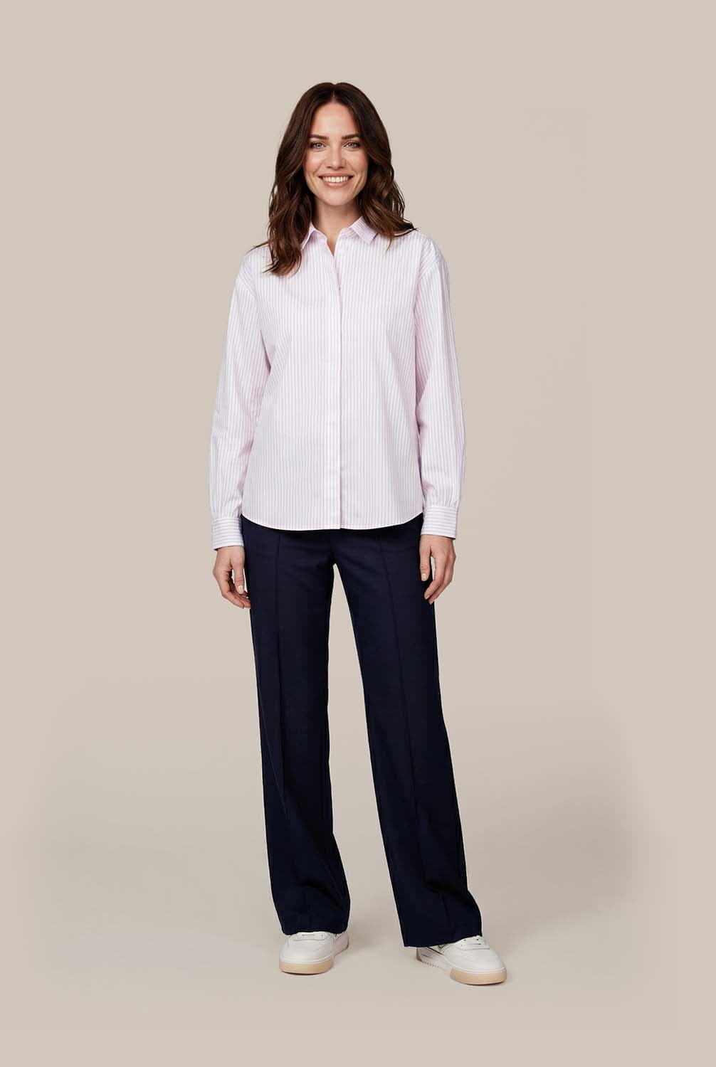 De Blouse Arloes van Vive La Femme is een stijlvol business overhemd. Deze dames blouse heeft een opstaande kraag, lange mouwen met manchetten en een klassieke knoopsluiting. Het streeppatroon geeft een nette uitstraling, ideaal voor zakelijke gelegenheden. Kies voor comfort en stijl met deze regular fit blouse.