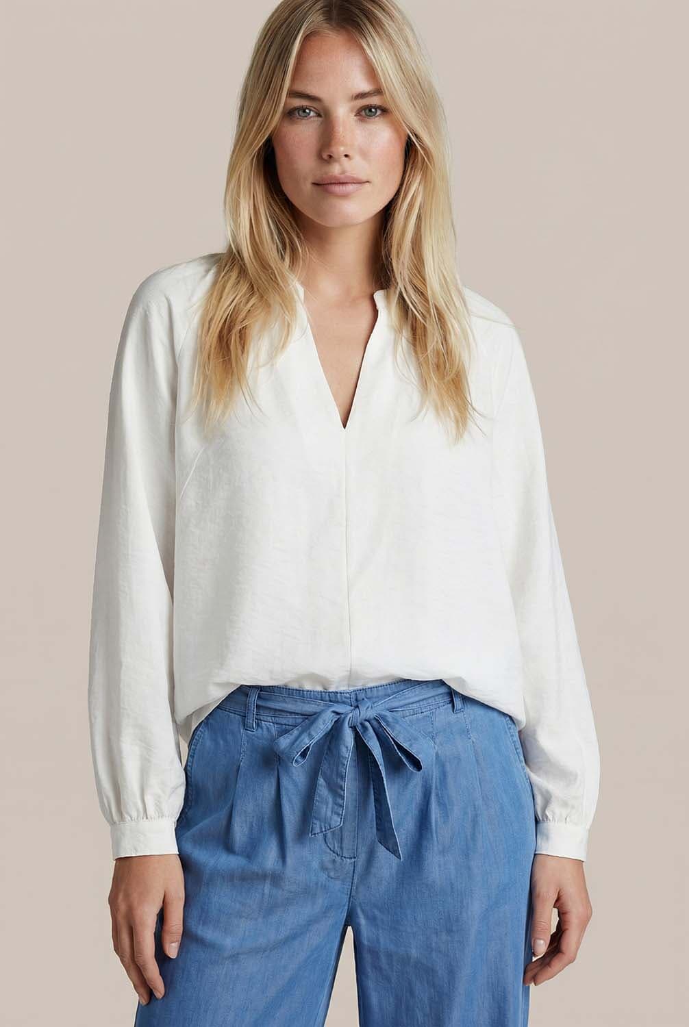 De Blouse Bodi van Vive La Femme is een stijlvolle dames blouse met een losse pasvorm. Het effen ontwerp wordt gekenmerkt door ballonmouwen met elastische manchetten en een V-hals, waardoor een casual en toch elegante uitstraling ontstaat. Ideaal voor diverse gelegenheden en moeiteloos te combineren.