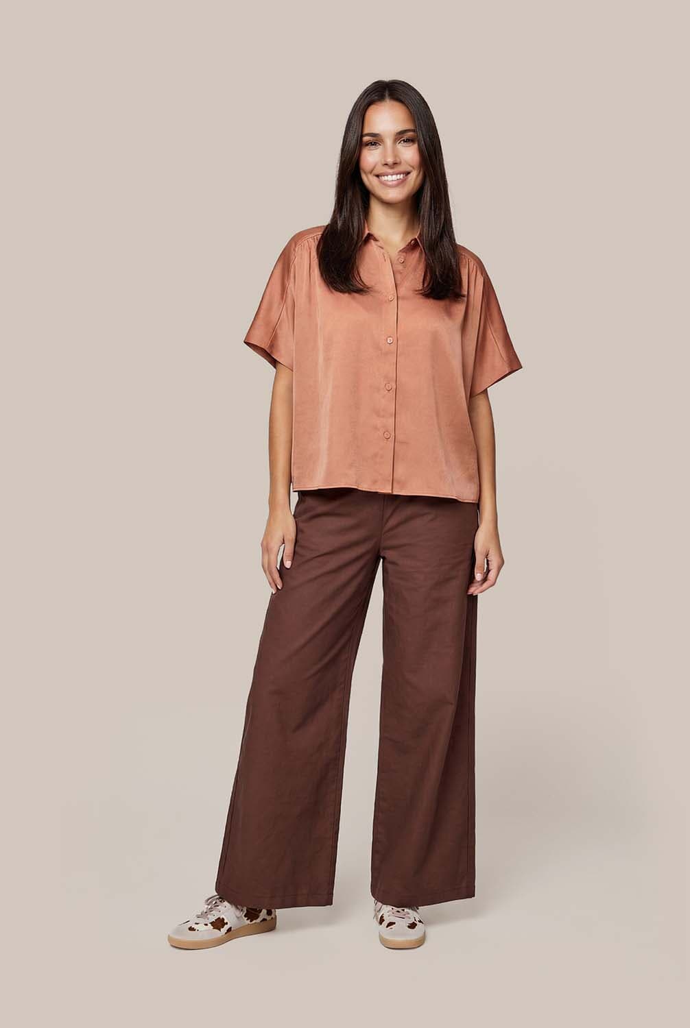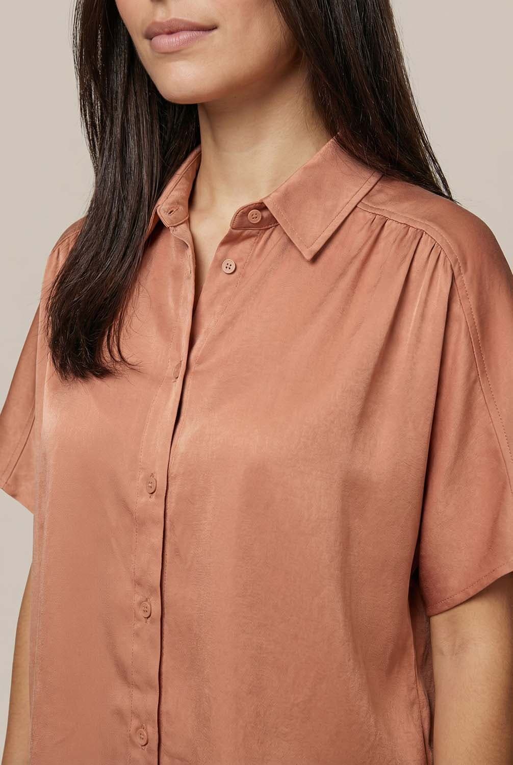 Blouse Bregje van Vive La Femme is een stijlvolle blouse met korte mouwen en een button down kraag. De cropped fit en het effen patroon maken het tot een veelzijdig item. Ideaal voor elke gelegenheid dankzij de knoopsluiting en overhemdkraag die een verfijnde uitstraling geven.