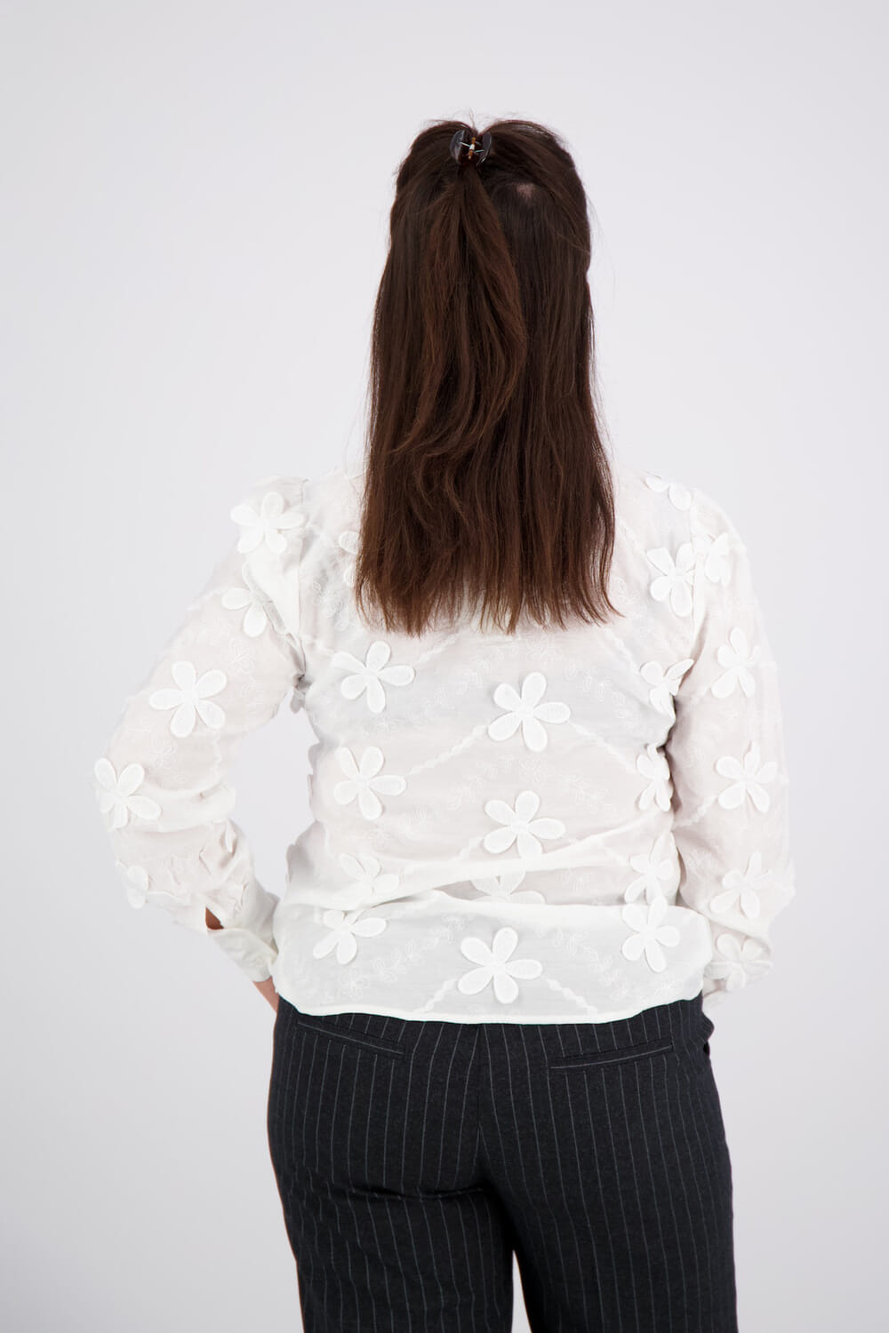 De Blouse Roos van Vive La Femme straalt stijl en elegantie uit met zijn prachtige bloemenpatroon. De lange mouwen en button down kraag maken deze blouse een veelzijdige keuze voor elke garderobe. Een stijlvolle aanvulling op de dames blouse collectie.