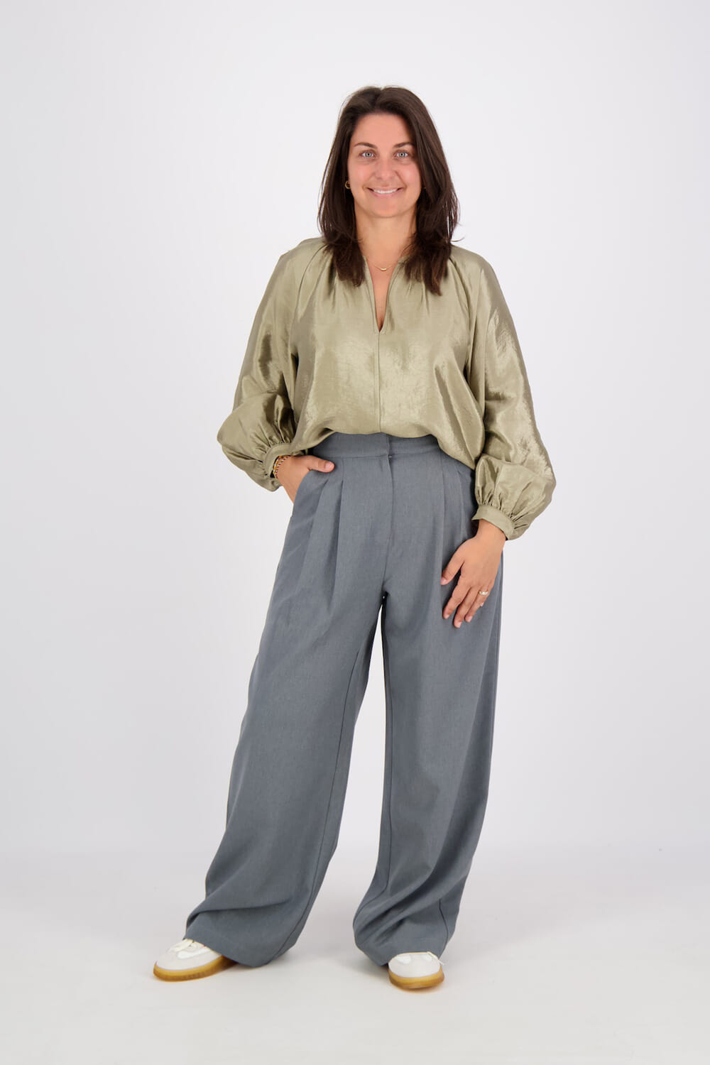 De Tess blouse van Vive La Femme is een stijlvolle dames blouse met een ronde hals en lange mouwen. De effen stof en losse pasvorm geven het een trendy uitstraling. De manchetten zonder knopen zorgen voor een subtiele, maar verfijnde afwerking.