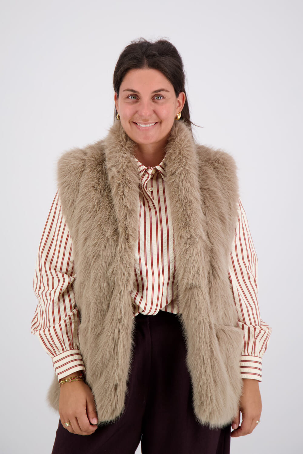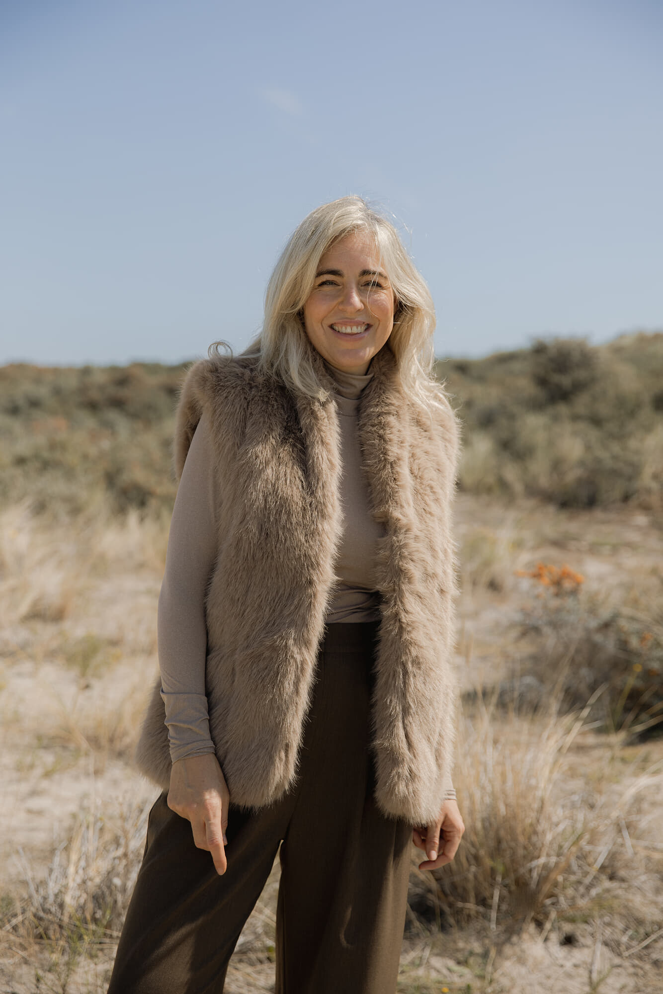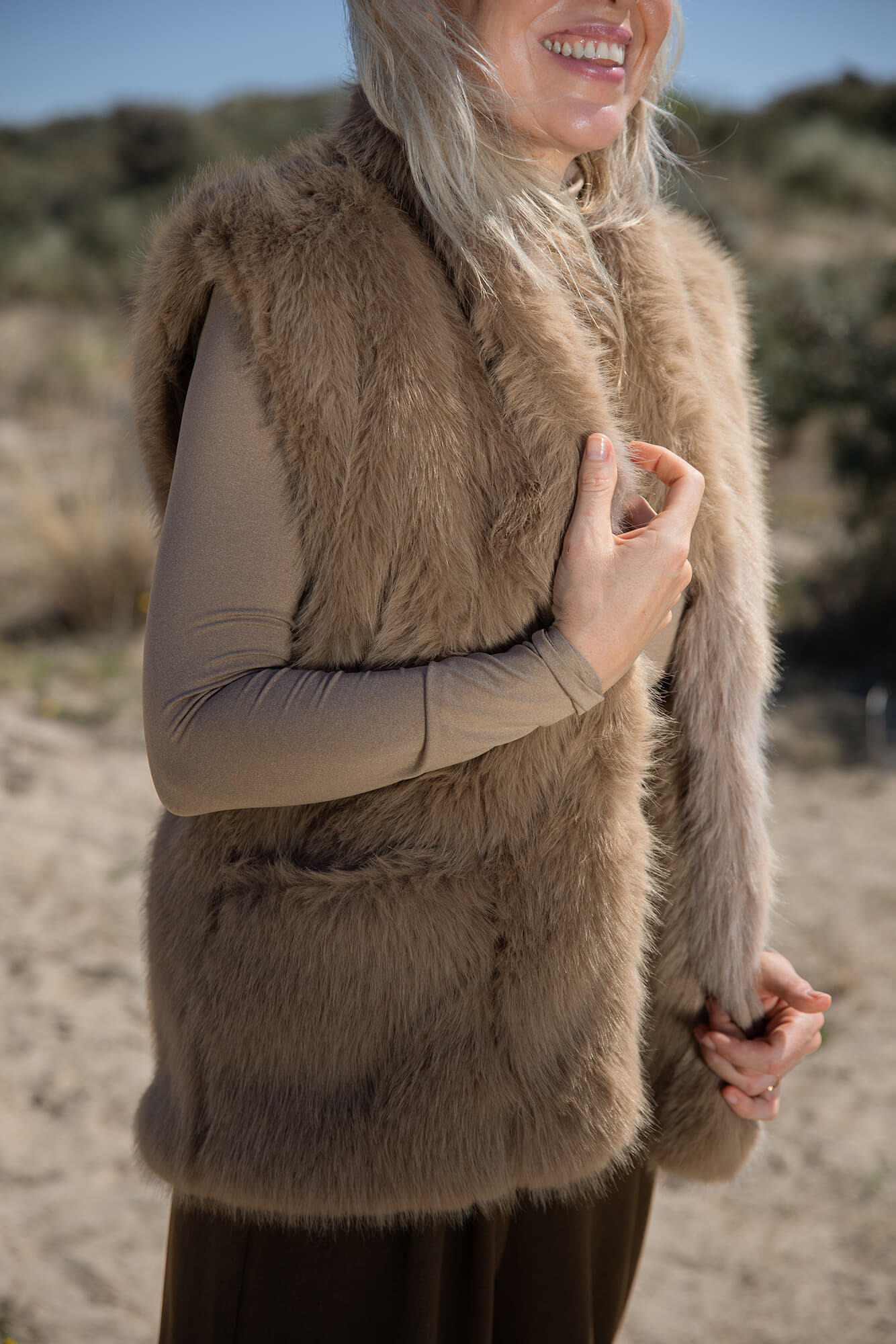 Gilet Cato van Vive La Femme is een bohemian en verfijnd dames gilet. Het effen ontwerp straalt eenvoud en stijl uit, perfect voor elke gelegenheid. De zachte textuur zorgt voor comfort en warmte, waardoor het een veelzijdige aanvulling is op elke garderobe.