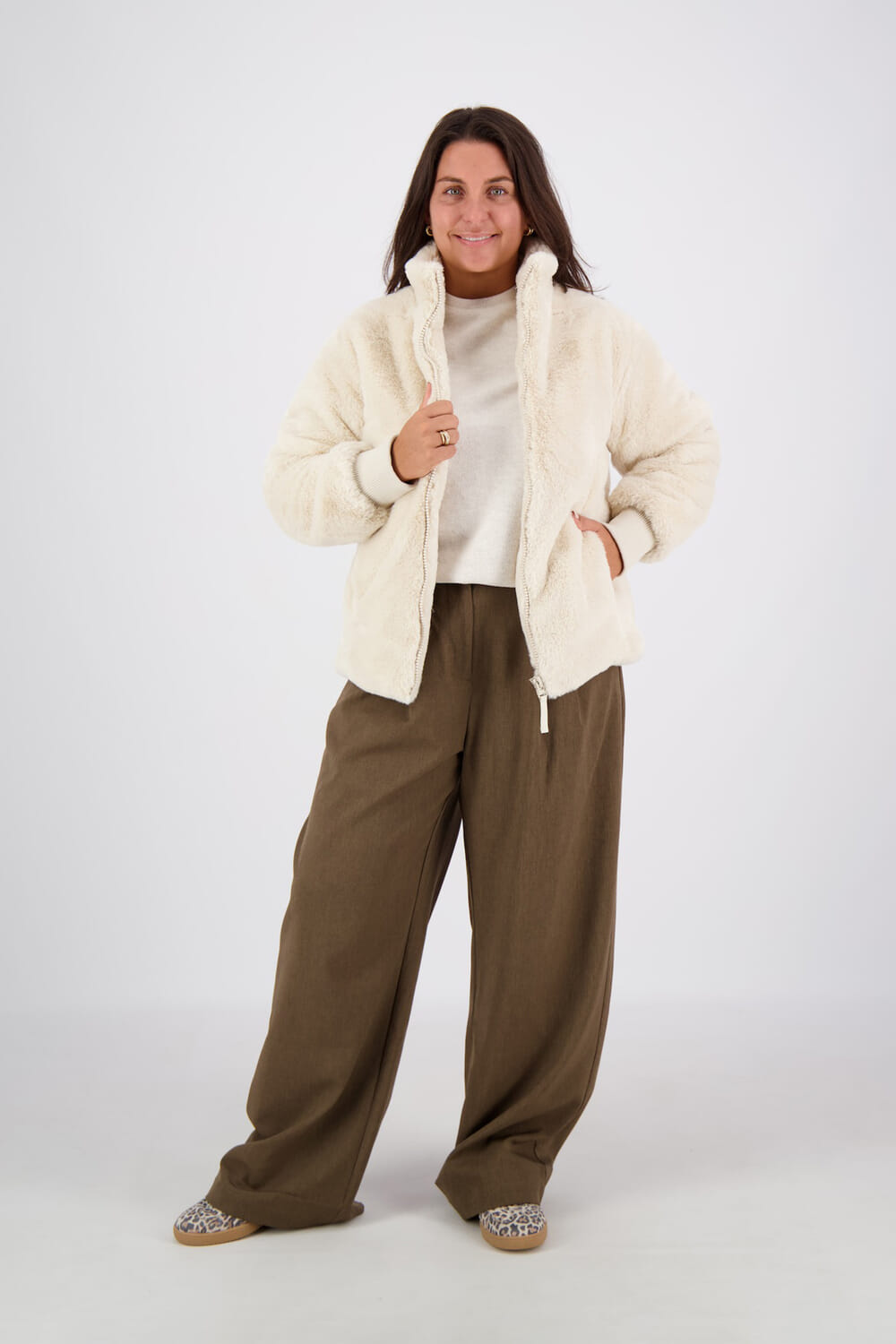 Jas Jasmijn van Vive La Femme is een stijlvolle tussenjas met een opstaande kraag en een praktische rits. Deze casual teddy jas biedt comfort en warmte, ideaal voor dagelijks gebruik. Het is een modieuze keuze voor degenen die op zoek zijn naar stijl en functionaliteit.