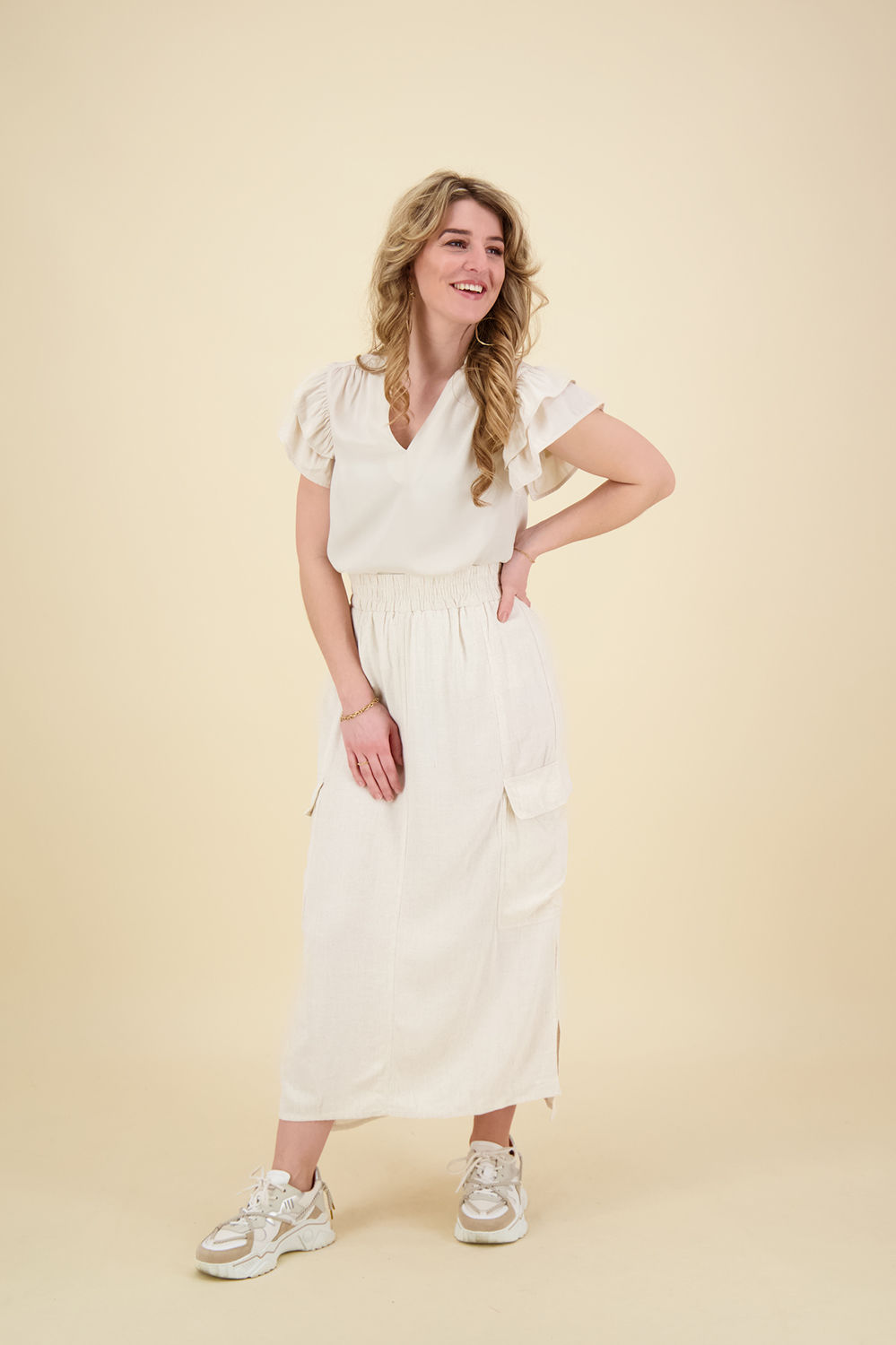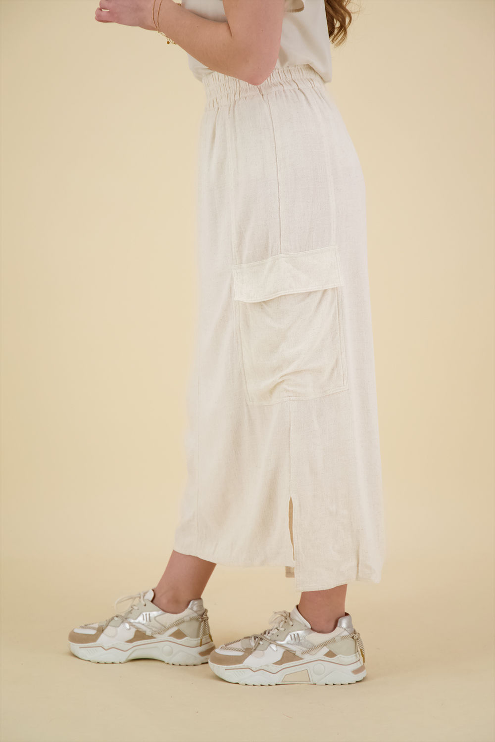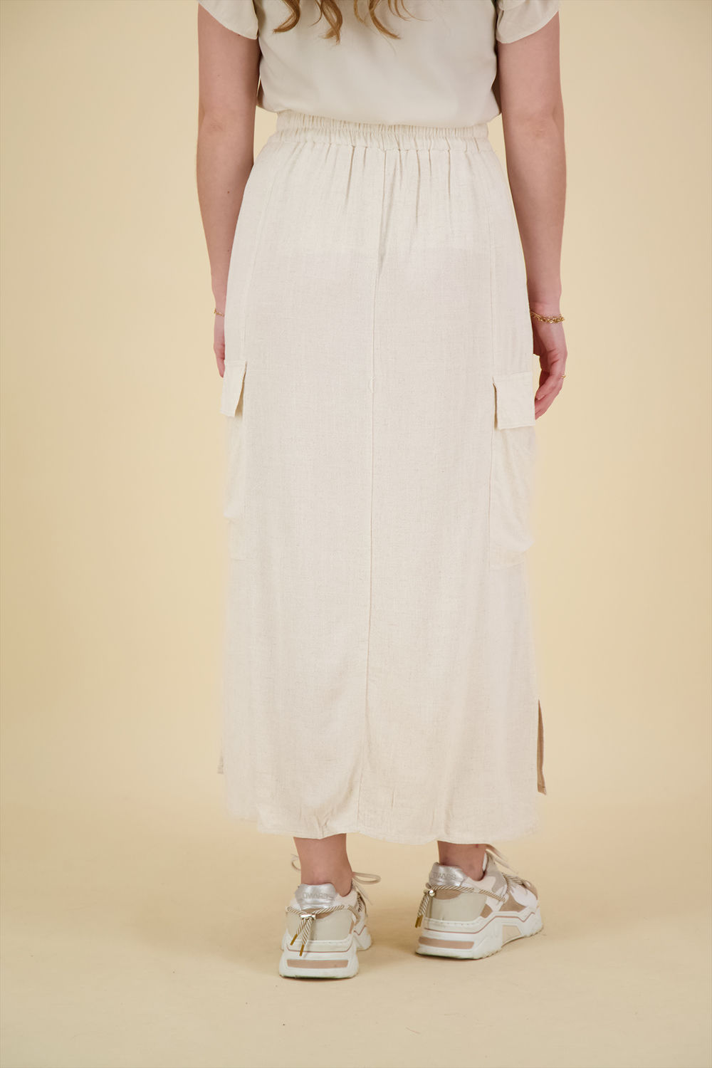 De rok Lin van Vive La Femme is een casual lange rok met een elastische taille en praktische cargo zakken. Deze effen midi rok biedt een stijlvolle en comfortabele optie voor verschillende gelegenheden. Ideaal voor wie houdt van een ontspannen en modieuze uitstraling.
