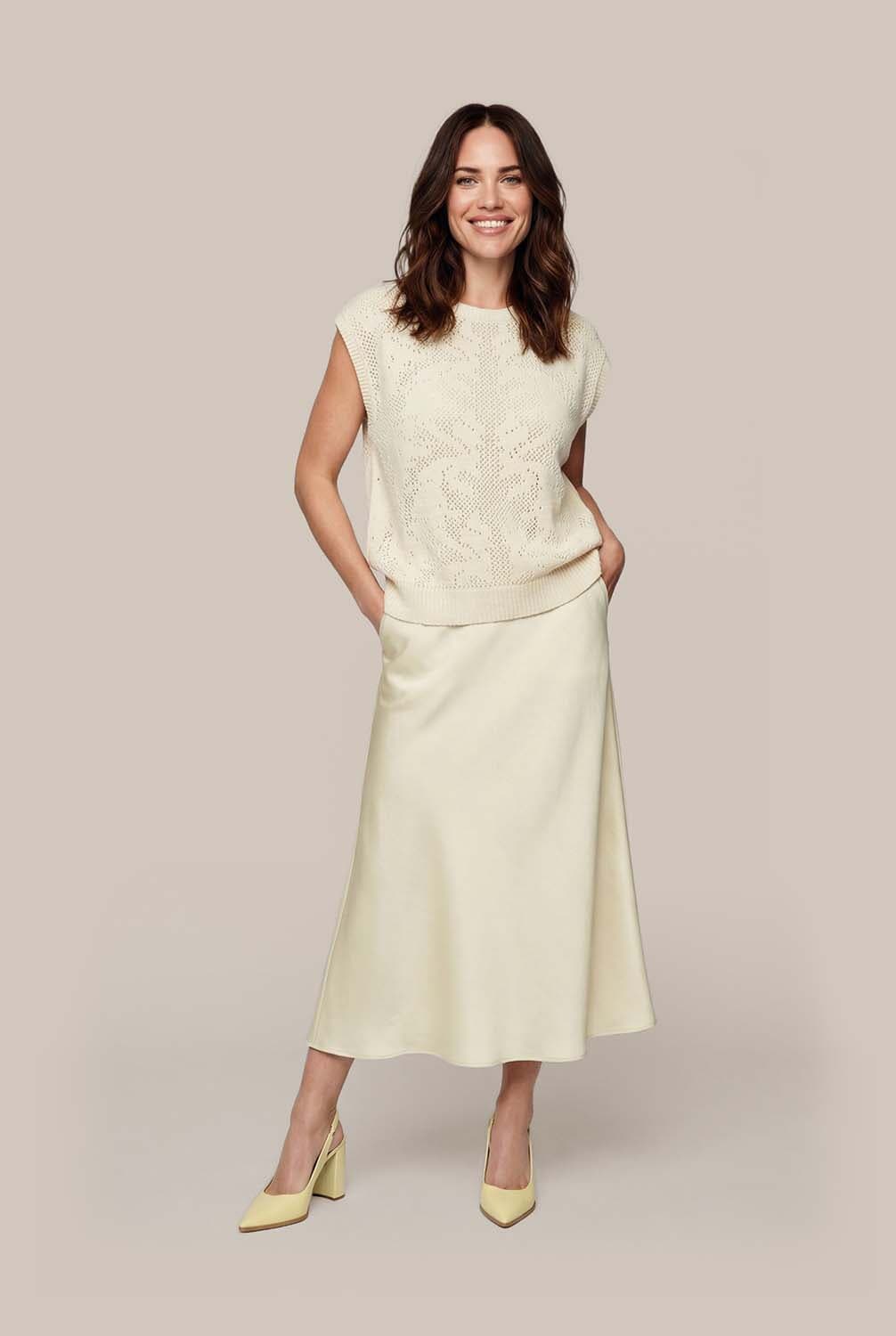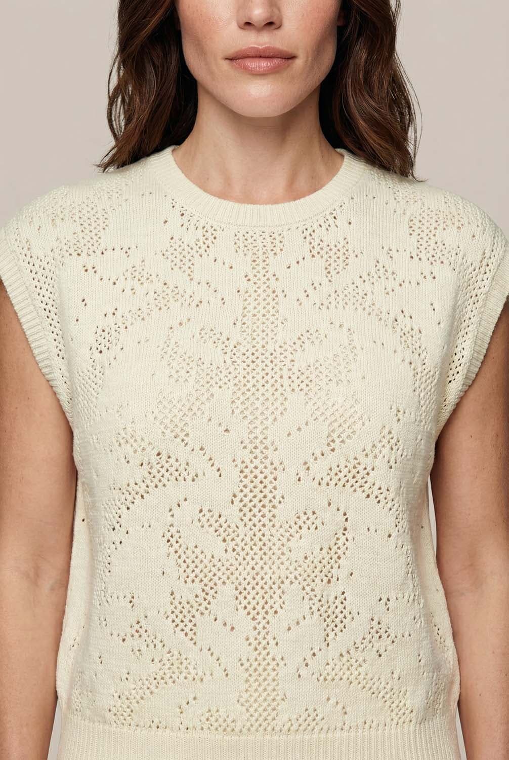 De Spencer Aisha van Vive La Femme is een stijlvolle dames spencer. Met een minimalistische uitstraling, een ronde hals en een gebreide structuur zonder mouwen, biedt het patroon een unieke flair. Perfect voor verschillende gelegenheden, deze spencer combineert mode en comfort moeiteloos.