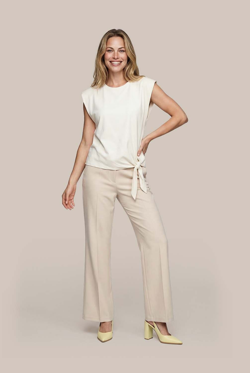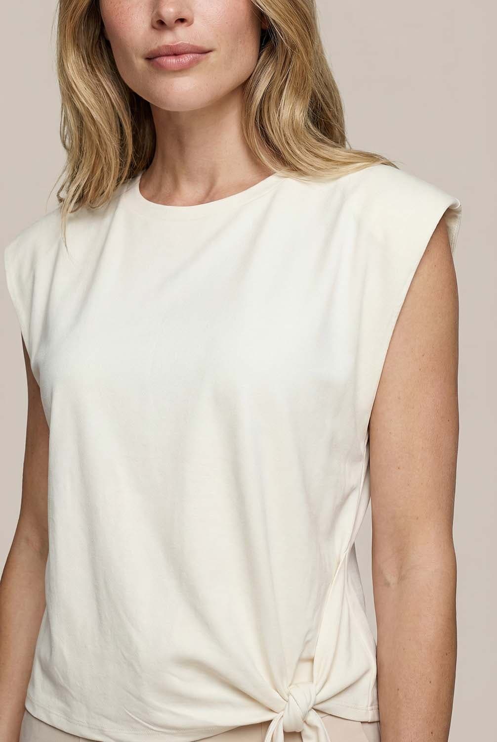 Het T-shirt Annefleur van Vive La Femme is een stijlvolle dames top mouwloos. Met een minimalistisch ontwerp en een ronde halslijn, biedt het een comfortabele, regular fit. De effen kleur en mouwloze stijl maken het perfect voor casual gelegenheden. Ideaal voor een elegante, eenvoudige look.