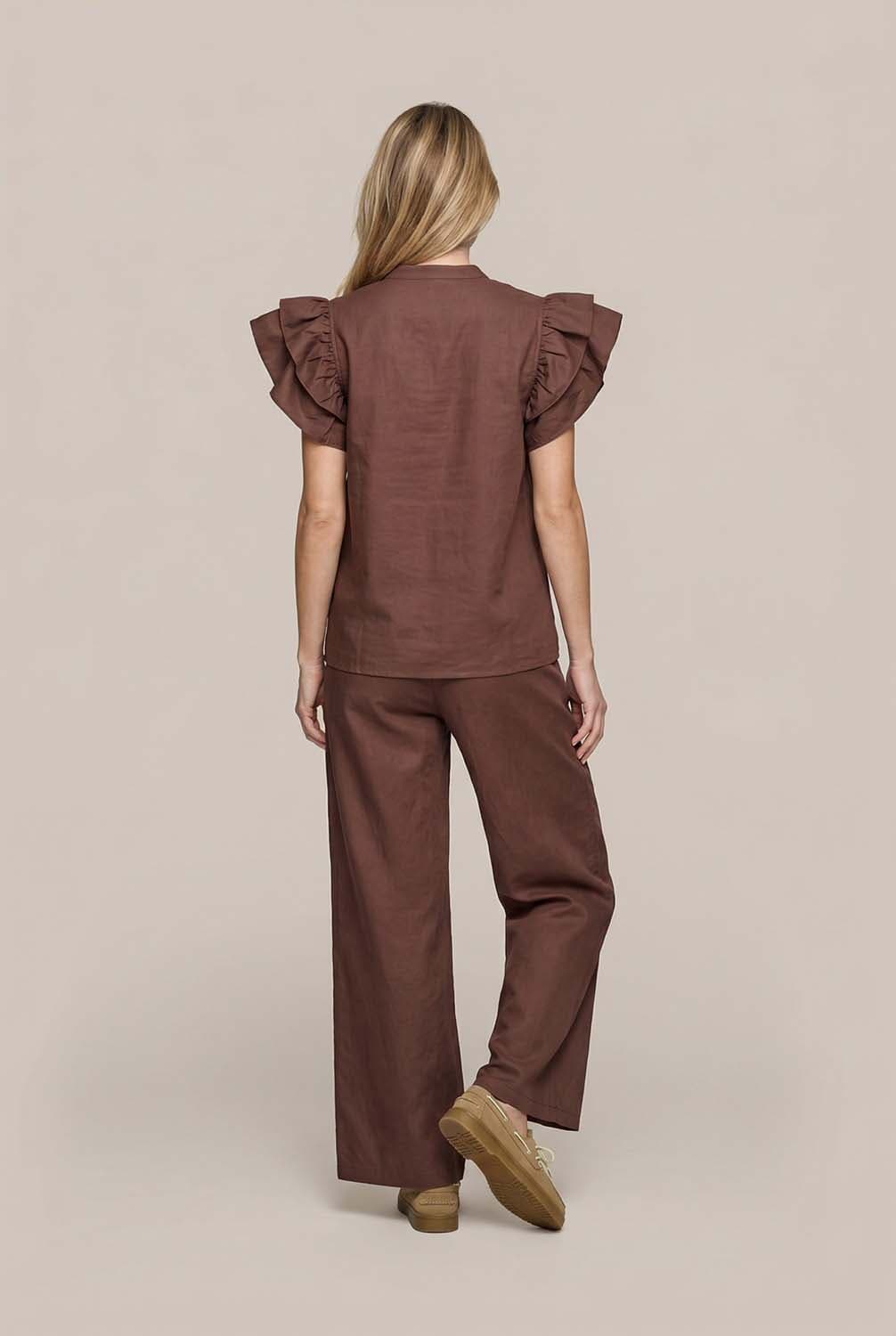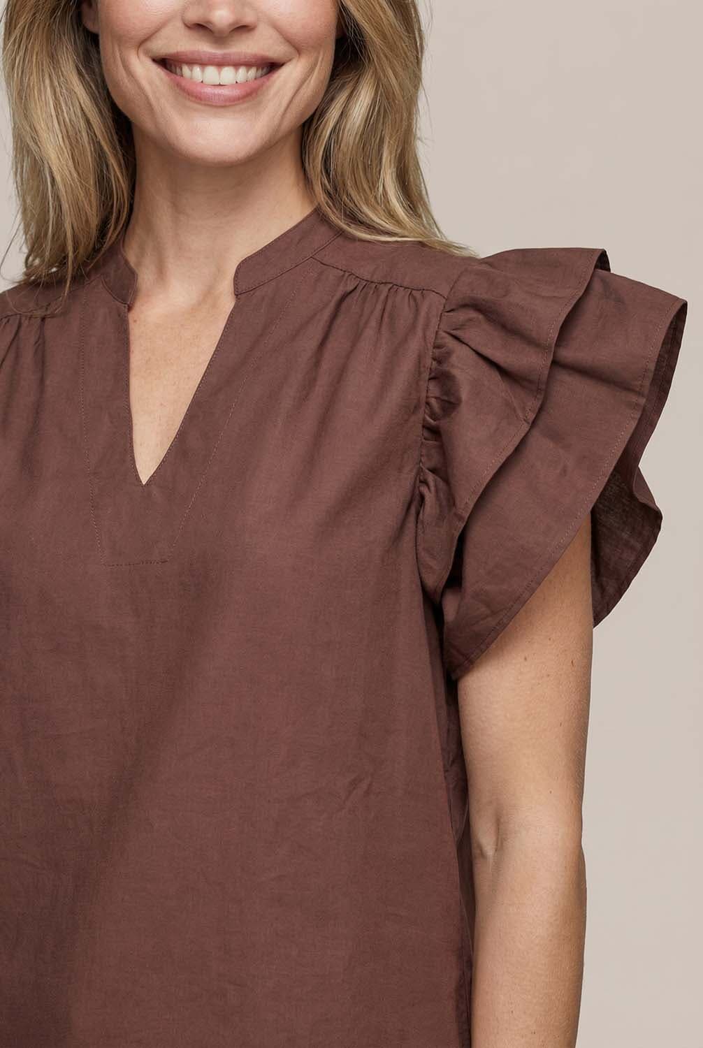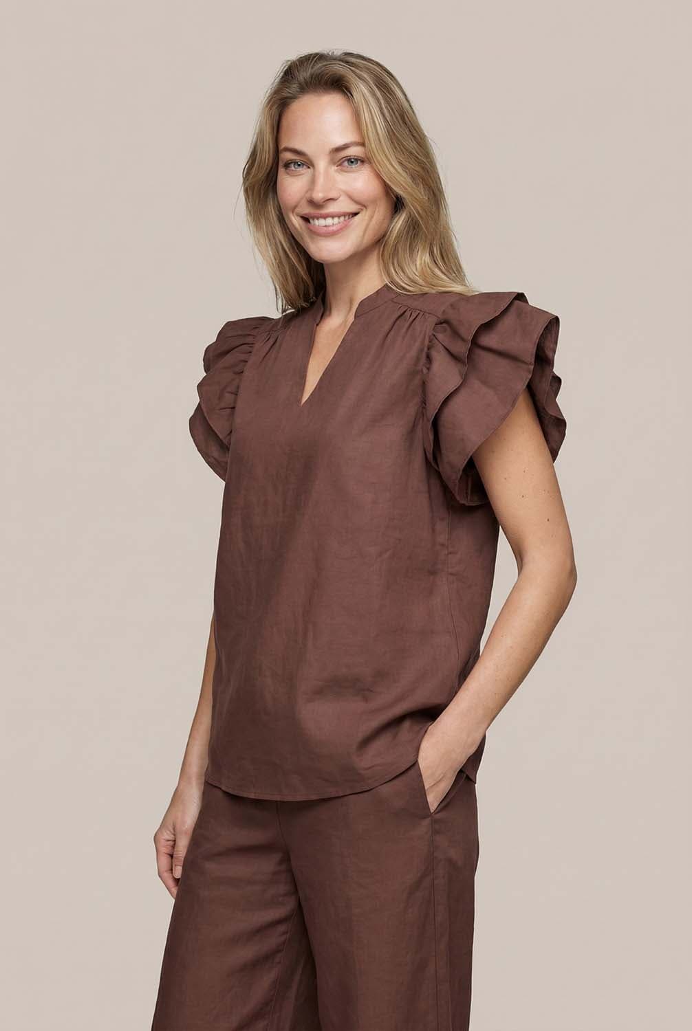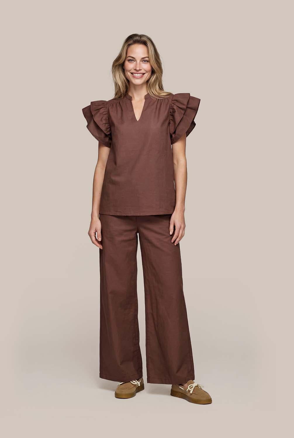 Top Bijou van Vive La Femme is een top korte mouw met split hals, effen design en regular, losse pasvorm. De korte mouwen hebben opvallende ruches voor extra volume. Ideaal voor casual en trendy momenten, combineert makkelijk met jeans, rok of pantalon.