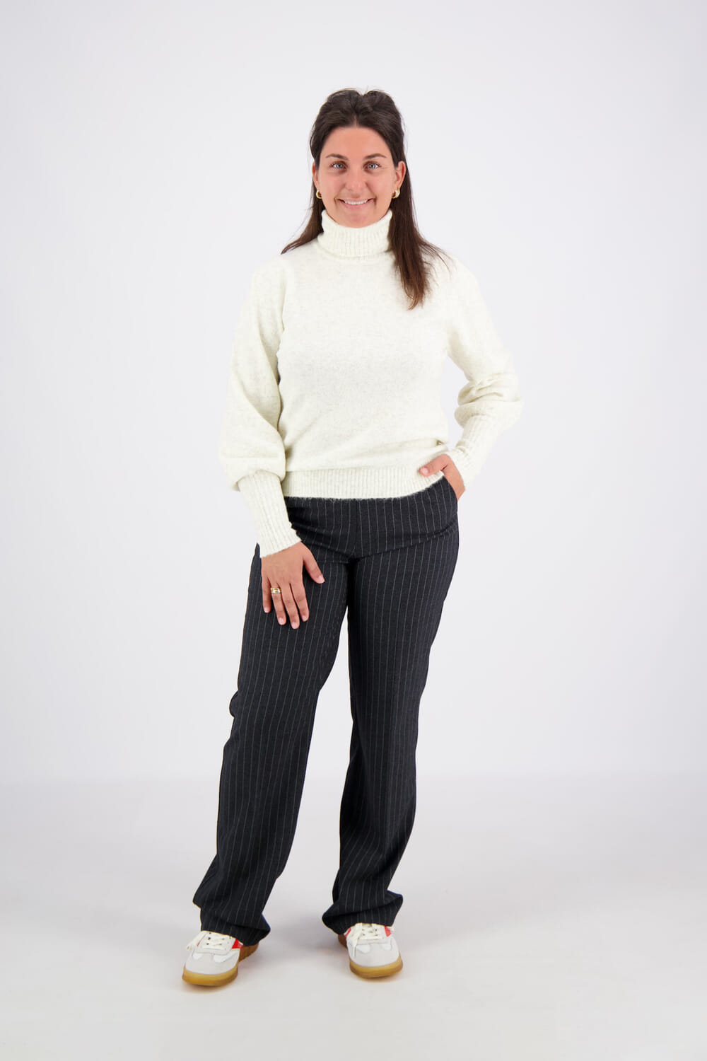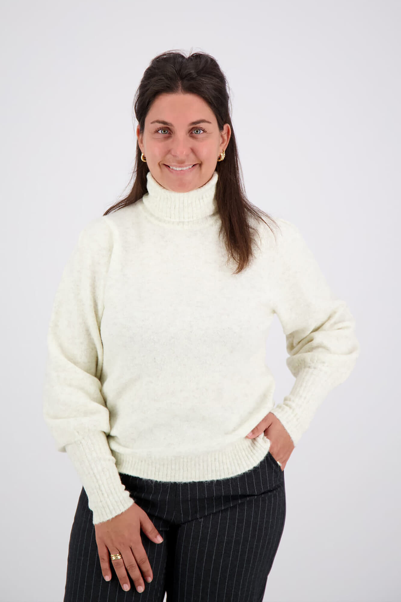 Trui Guusje van Vive La Femme is een stijlvolle coltrui met een opstaande kraag en lange mouwen. De ribgebreide mouwboorden zorgen voor een comfortabele pasvorm. Ideaal voor een casual gelegenheid, met een effen patroon en gebreide structuur. Perfect voor elke garderobe.