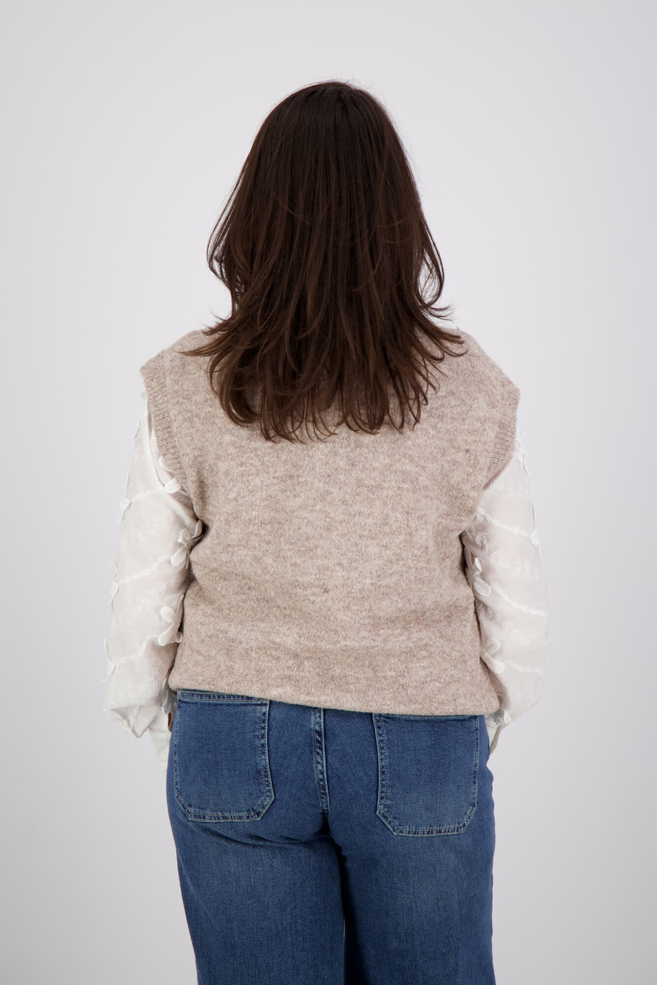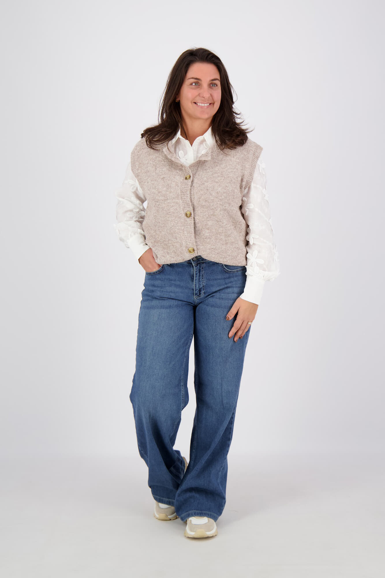Het Vest Amber Mouwloos van Vive La Femme is een casual dames vest met een ronde halslijn en knoopsluiting. Dit mouwloze ontwerp heeft een effen patroon, perfect voor een veelzijdige look. Ideaal om eenvoudig te combineren met verschillende stijlen en outfits.