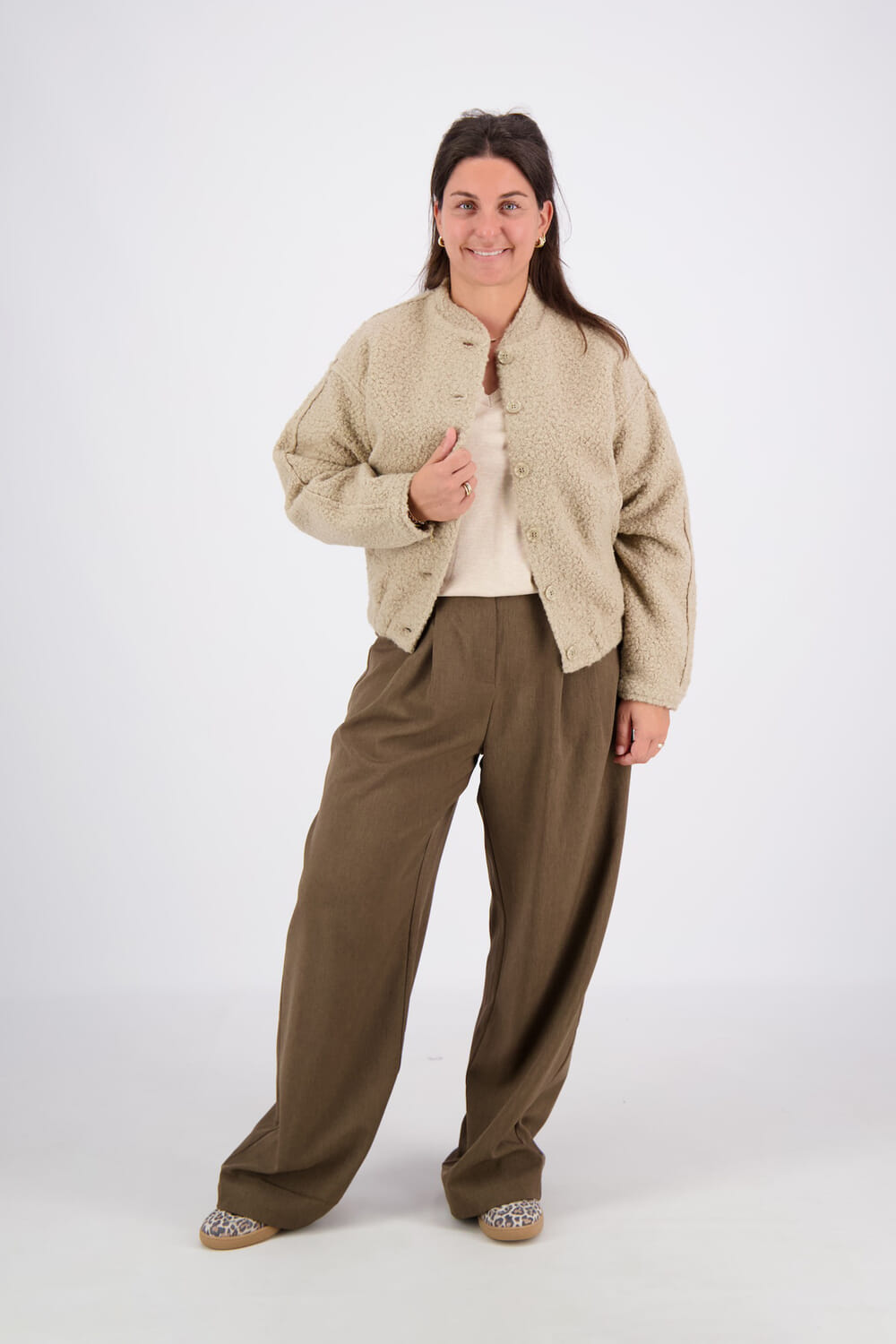 Vest Josje van Vive La Femme combineert stijl en comfort. Deze oversized bomberjas heeft een opstaande kraag en lange mouwen, perfect voor een casual en minimalistische look. De knoopsluiting voegt functionaliteit toe, terwijl de zachte stof zorgt voor een warme en uitnodigende uitstraling.