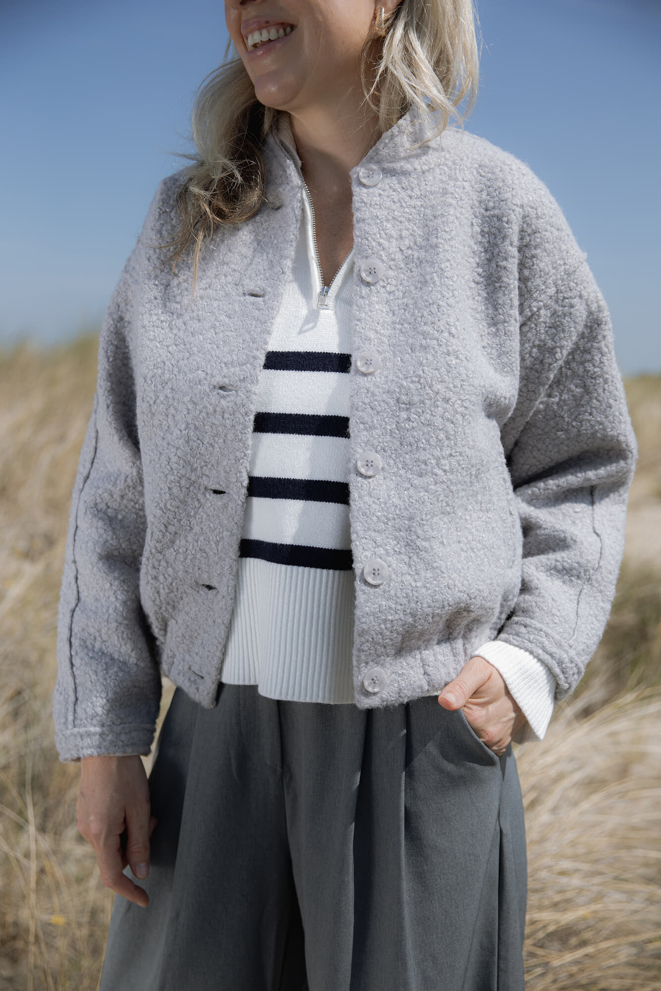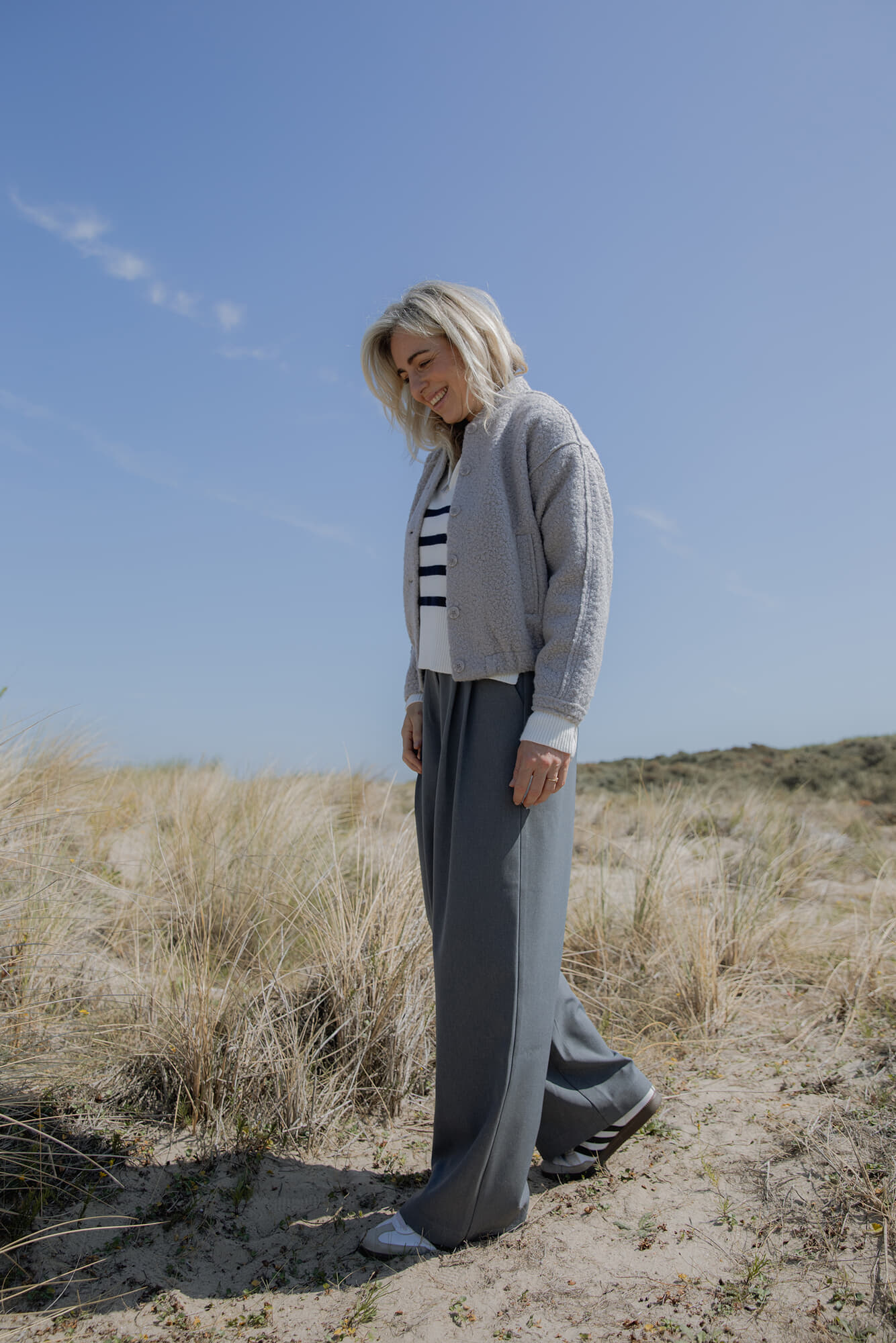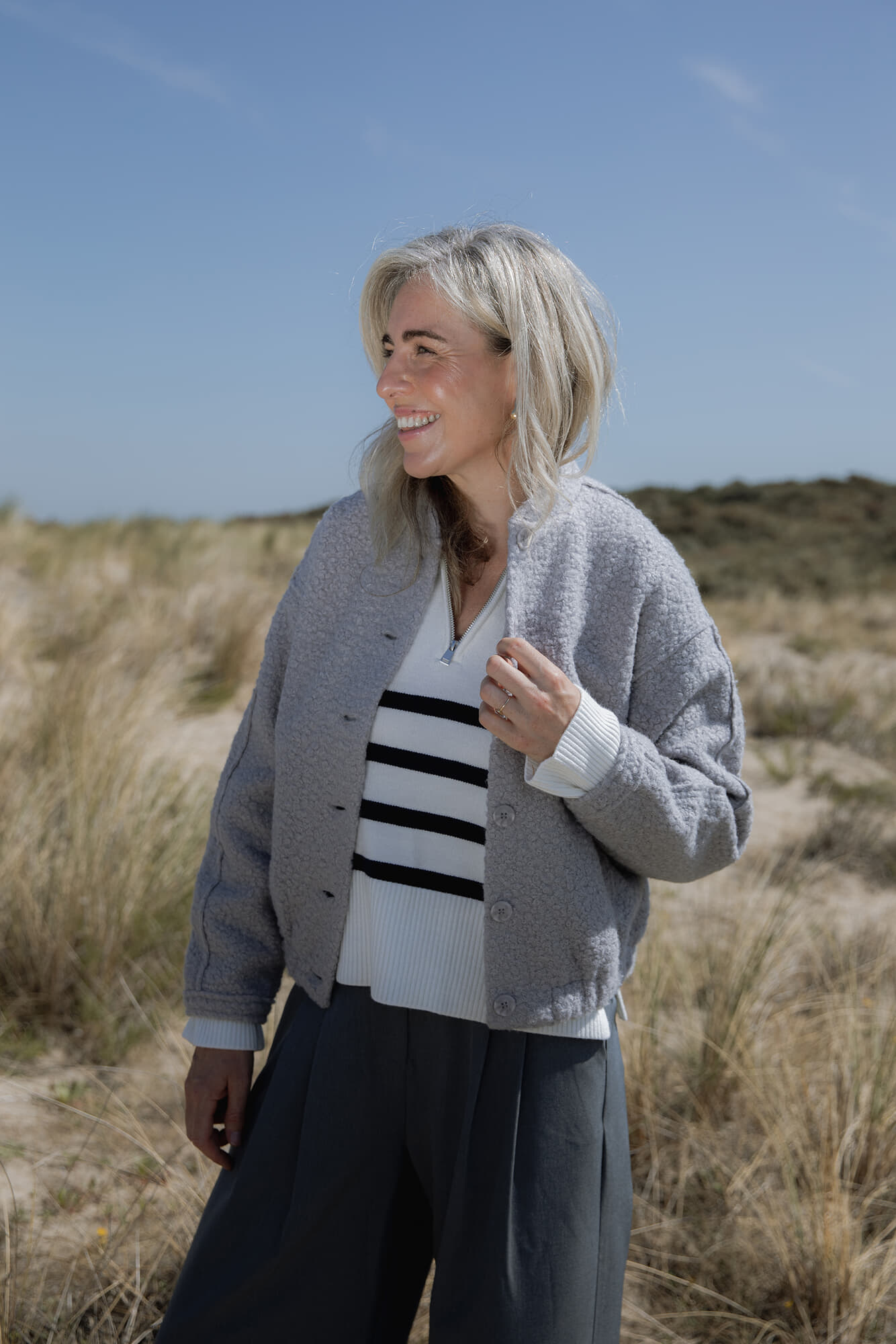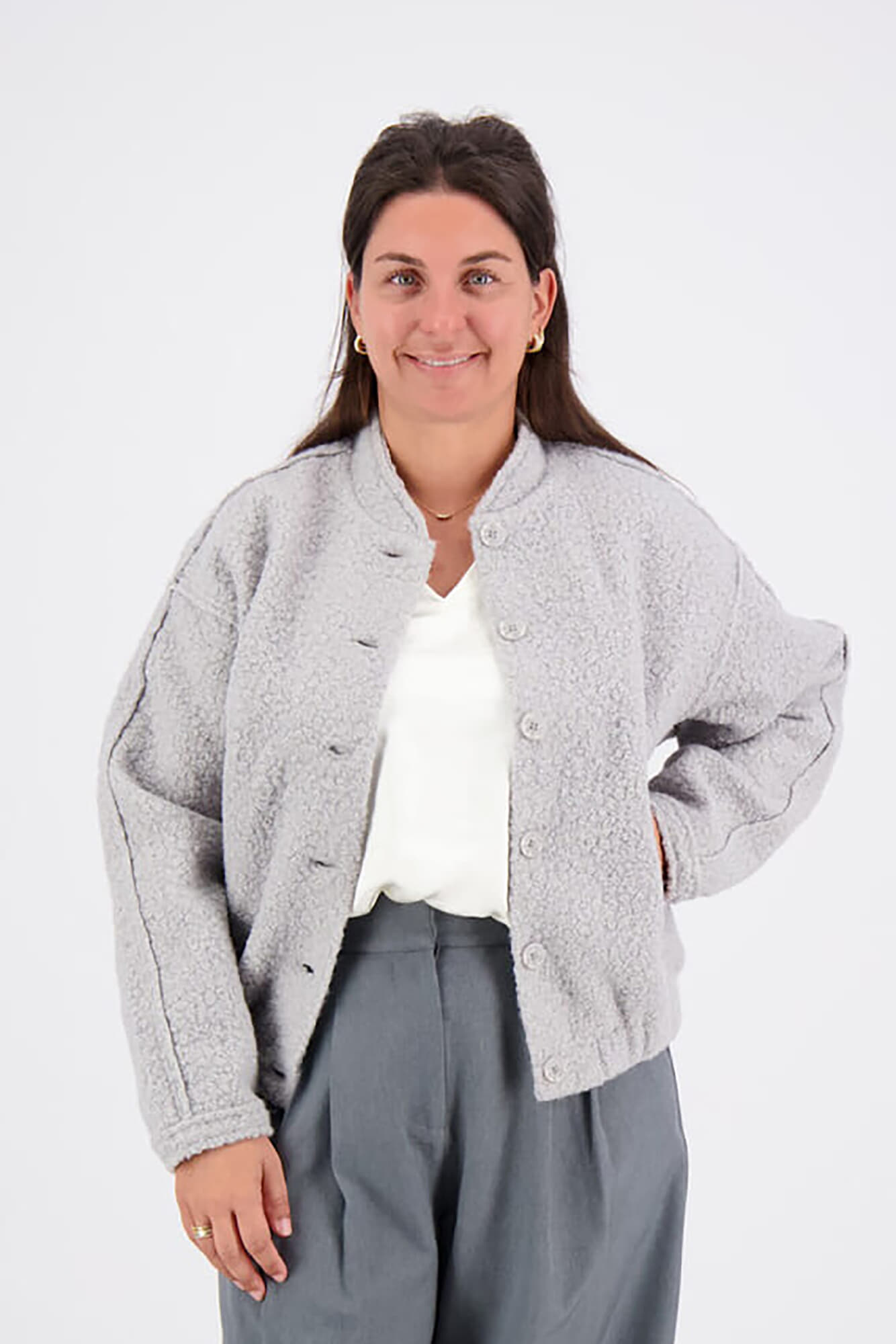 Vest Josje van Vive La Femme combineert stijl en comfort. Deze oversized bomberjas heeft een opstaande kraag en lange mouwen, perfect voor een casual en minimalistische look. De knoopsluiting voegt functionaliteit toe, terwijl de zachte stof zorgt voor een warme en uitnodigende uitstraling.