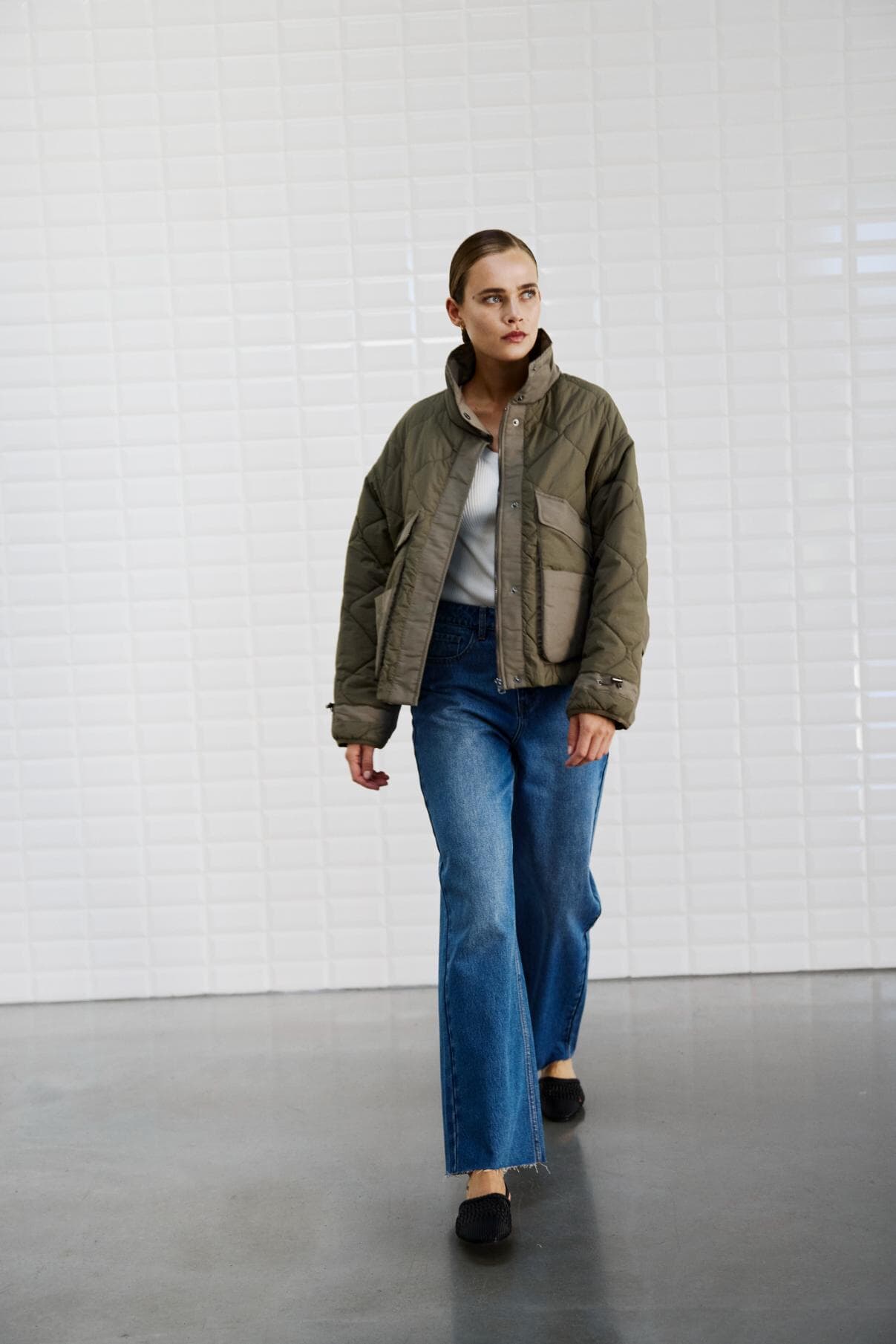 Bomberjack Veda Quilted van With Black biedt een casual stijl met een opstaande kraag en rits. Dit effen, gewatteerde jack heeft zakken op de voorzijde en een boxy fit, ideaal voor dagelijks comfort en stijl. De lange mouwen maken het perfect voor verschillende gelegenheden.