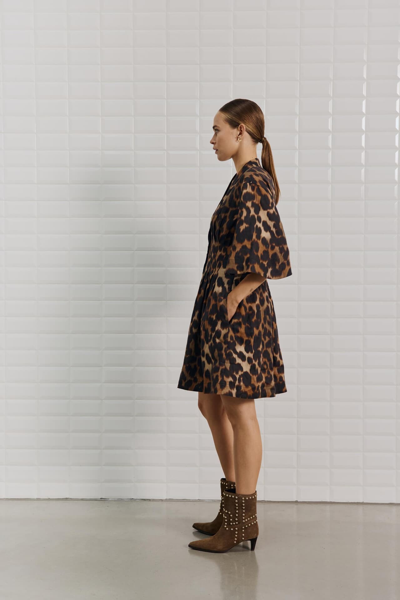 De Jurk Cleopatra van With Black is een stijlvolle casual optie. Deze mouwloze jurk, onderdeel van de dames jurken mouwloos categorie, heeft een opvallende panterprint en praktische zakken aan de voorzijde. De 3/4 mouwen en midi-lengte maken het een veelzijdige keuze.