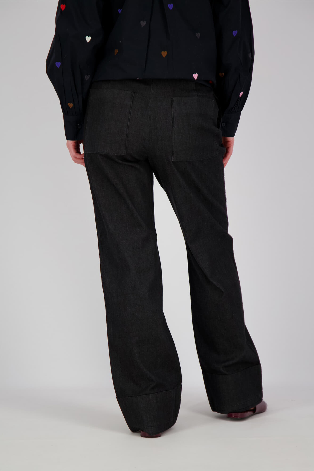 Pantalon Julianna van With Black is een elegante pantalon met een normale taille en een flared pasvorm. Deze sophisticated pantalon combineert stijl en comfort moeiteloos, waardoor het een veelzijdige toevoeging is aan elke kledingkast. Perfect voor elke gelegenheid, straalt het zowel professionaliteit als charme uit.