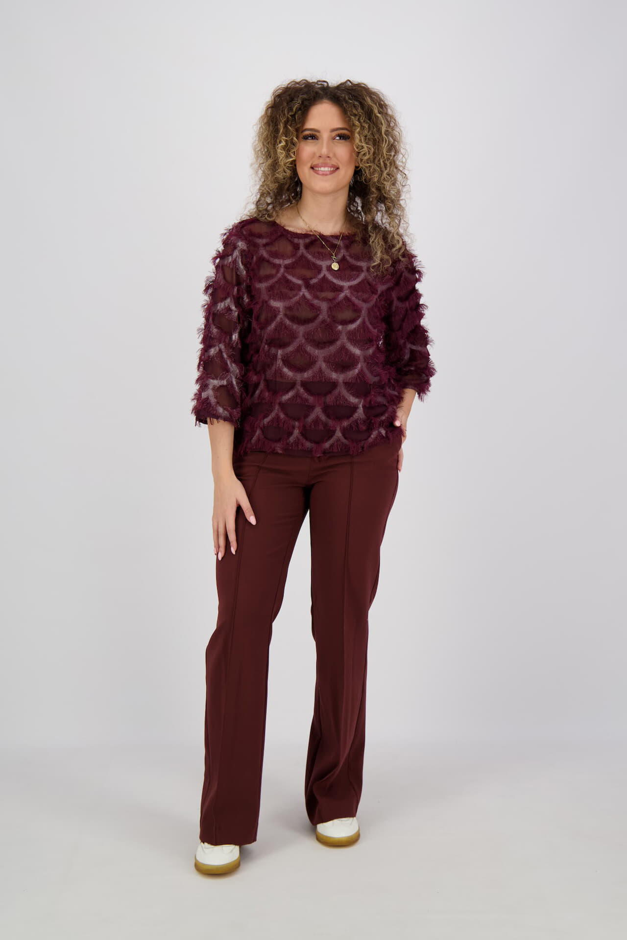 Blouse Pazilla van Y.A.S. combineert een bohemian en vrouwelijke stijl met een unieke 3D-print. Deze dames blouse heeft een ronde hals en een losse pasvorm met lange mouwen. De knoopsluiting en het bijzondere patroon maken het een opvallend en veelzijdig kledingstuk.