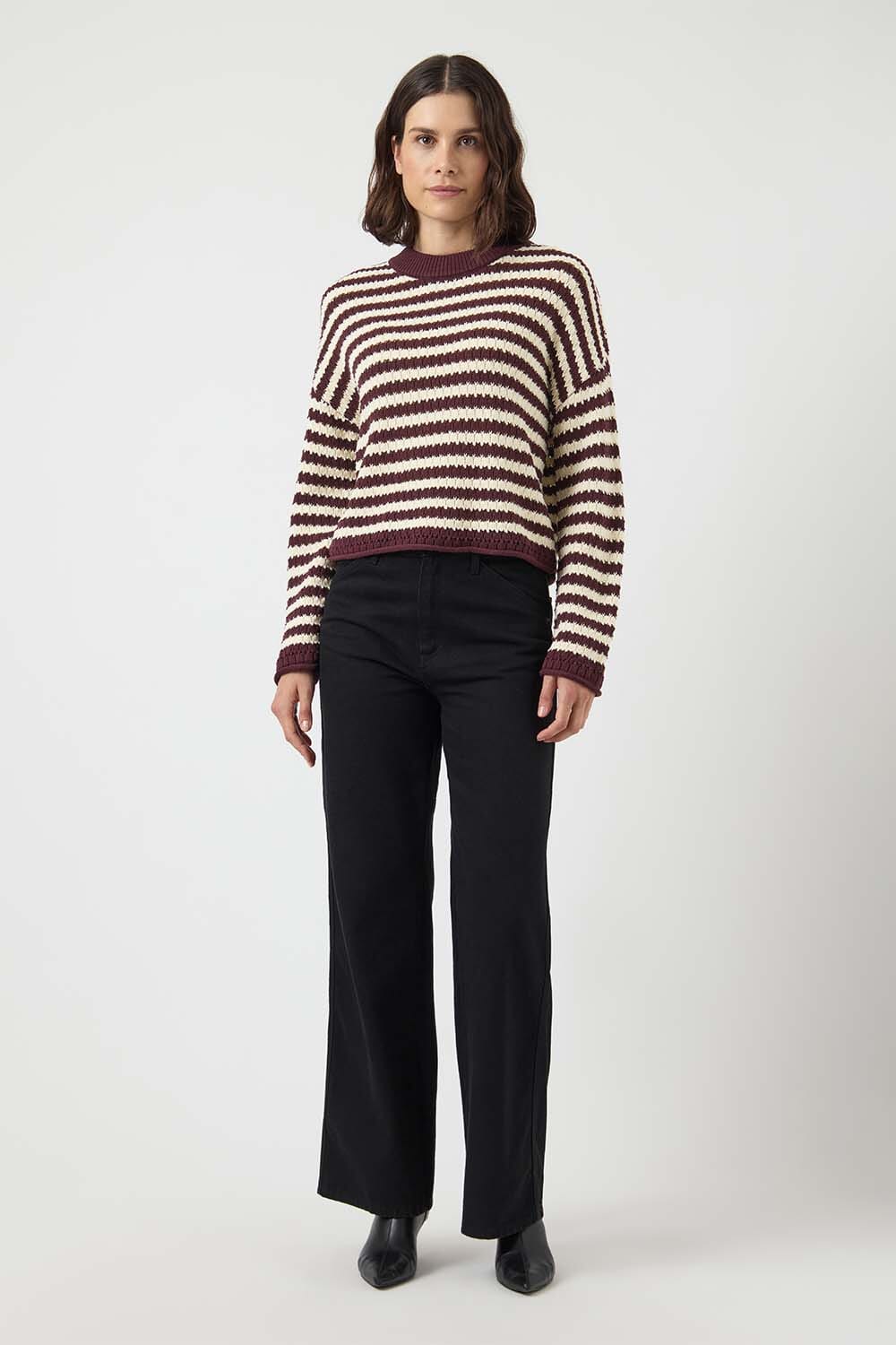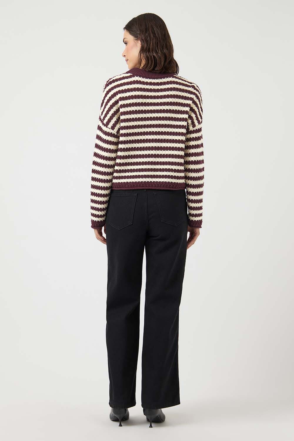 De Pullover Porta van Y.A.S. is een stijlvolle gebreide trui met een relaxed pasvorm. Het heeft een ronde halslijn en lange mouwen, wat zorgt voor comfort en warmte. De streepjespatroon geeft een casual uitstraling, perfect voor alledaagse gelegenheden.