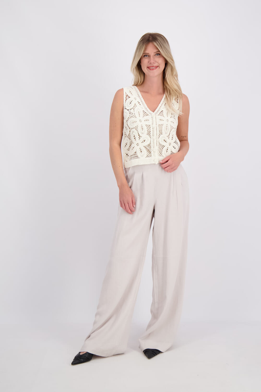 De Top Sanula van Y.A.S. is een stijlvolle top met een cropped fit en een elegante v-hals. Gemaakt van katoen met een uniek gaatjespatroon en knopen als sluiting, biedt deze top een modieuze en luchtige uitstraling zonder mouwen.