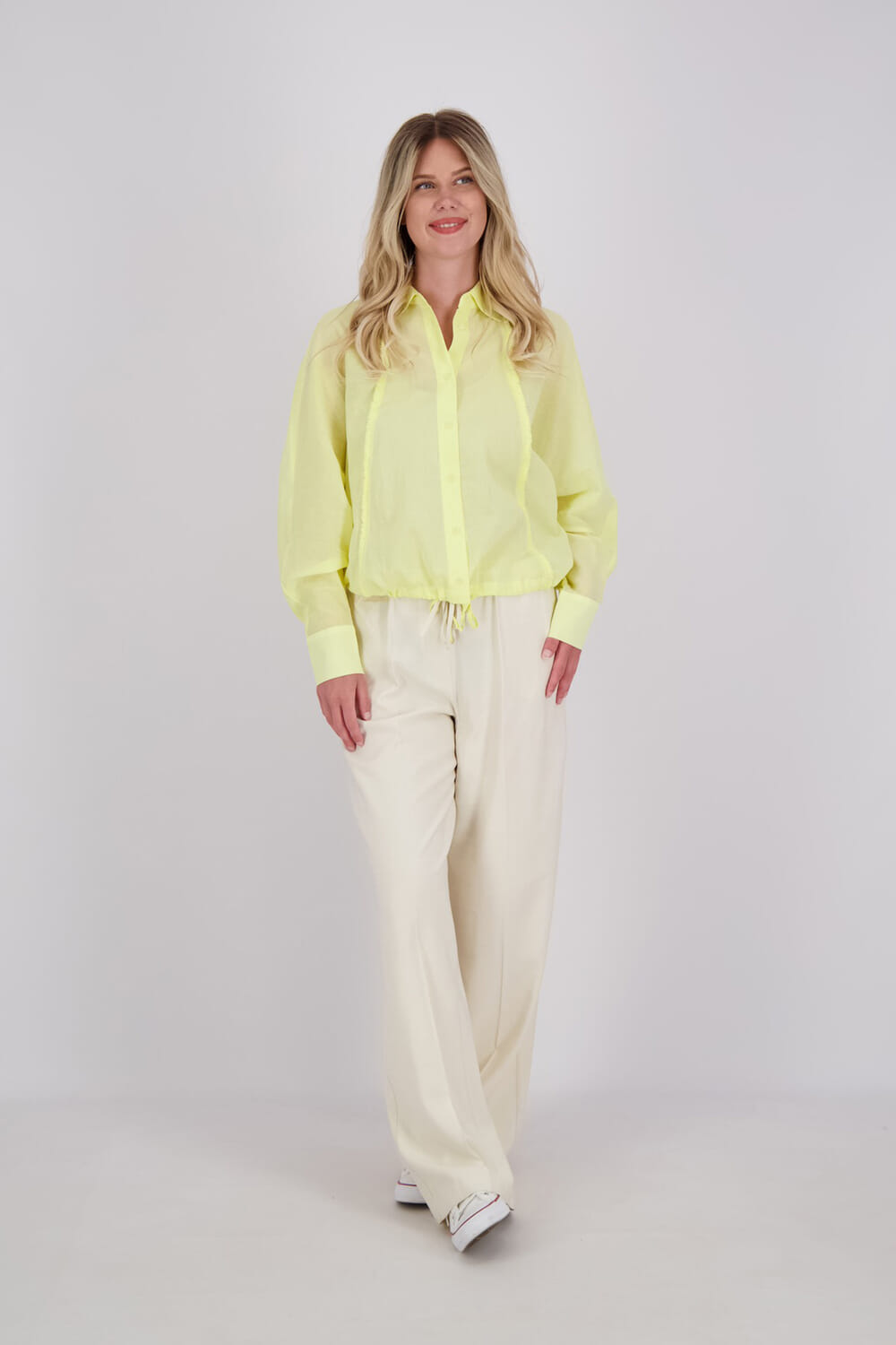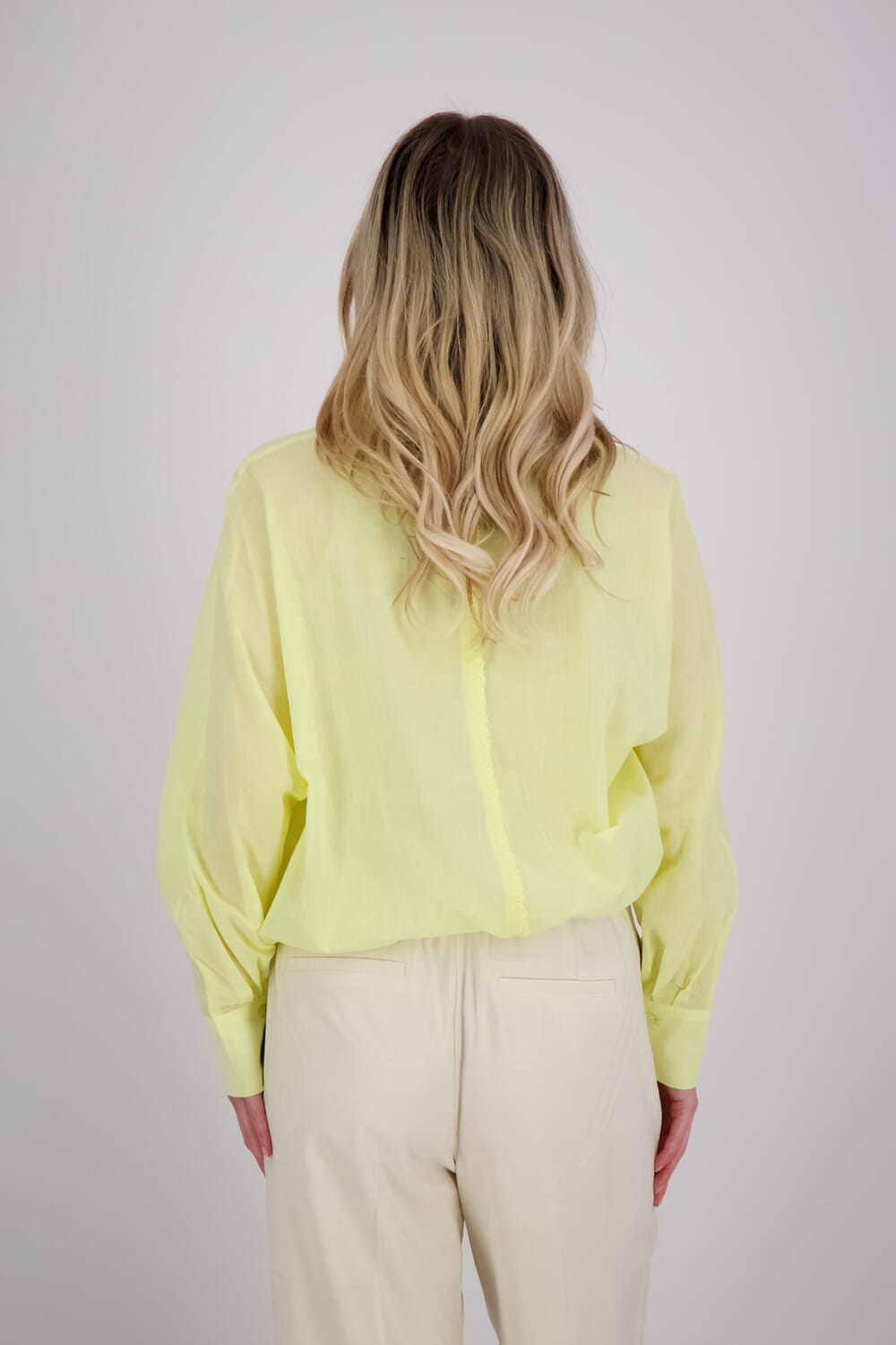 Deze luchtige Yaya blouse is gemaakt van een zachte, licht doorschijnende stof en heeft subtiele stikdetails langs de naden voor een verfijnde en speelse uitstraling. De losse pasvorm, vleermuismouwen en elastische taille creëren een moeiteloos vrouwelijke look. De klassieke kraag en knoopsluiting maken het geheel compleet. Perfect voor een casual maar stijlvolle outfit.