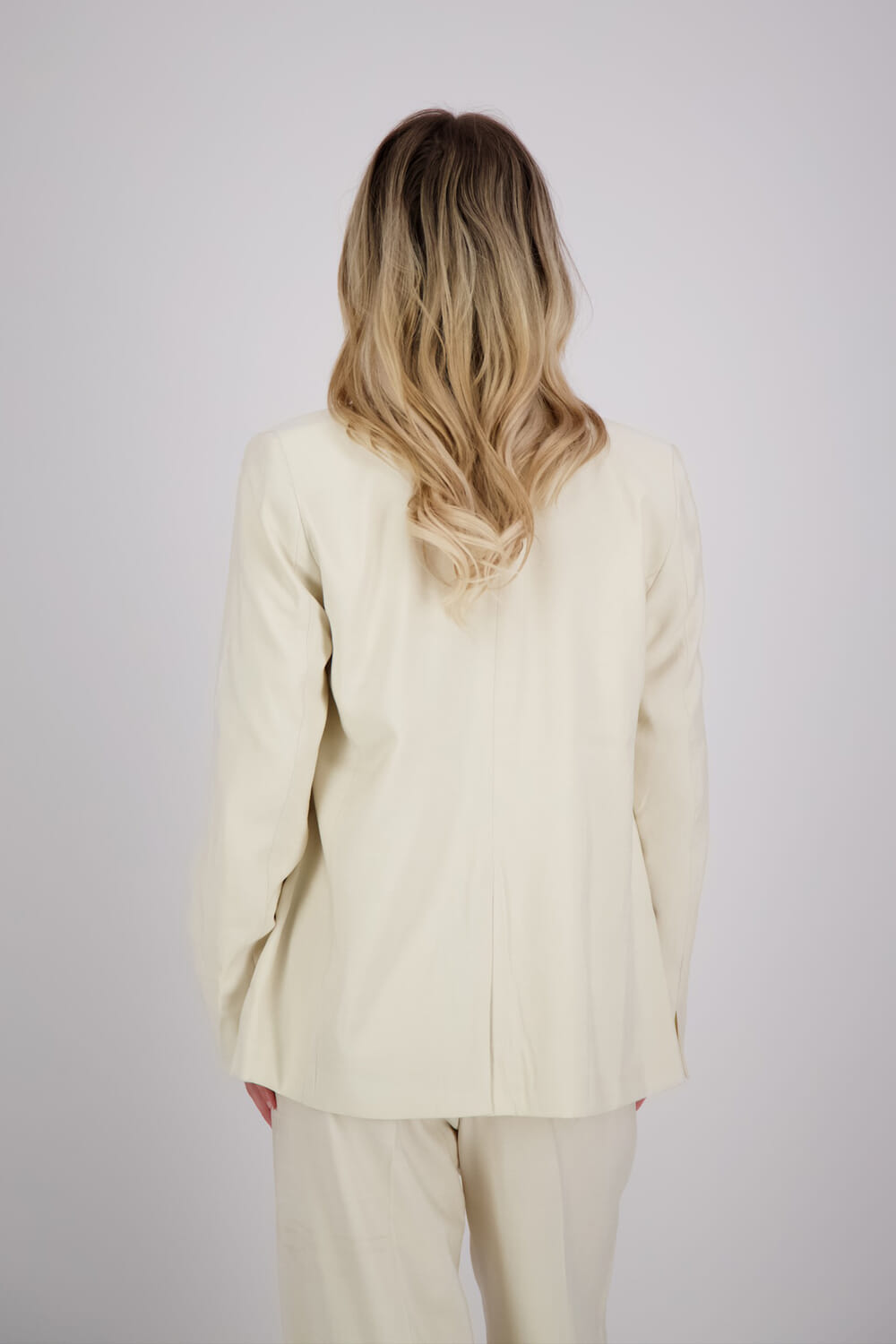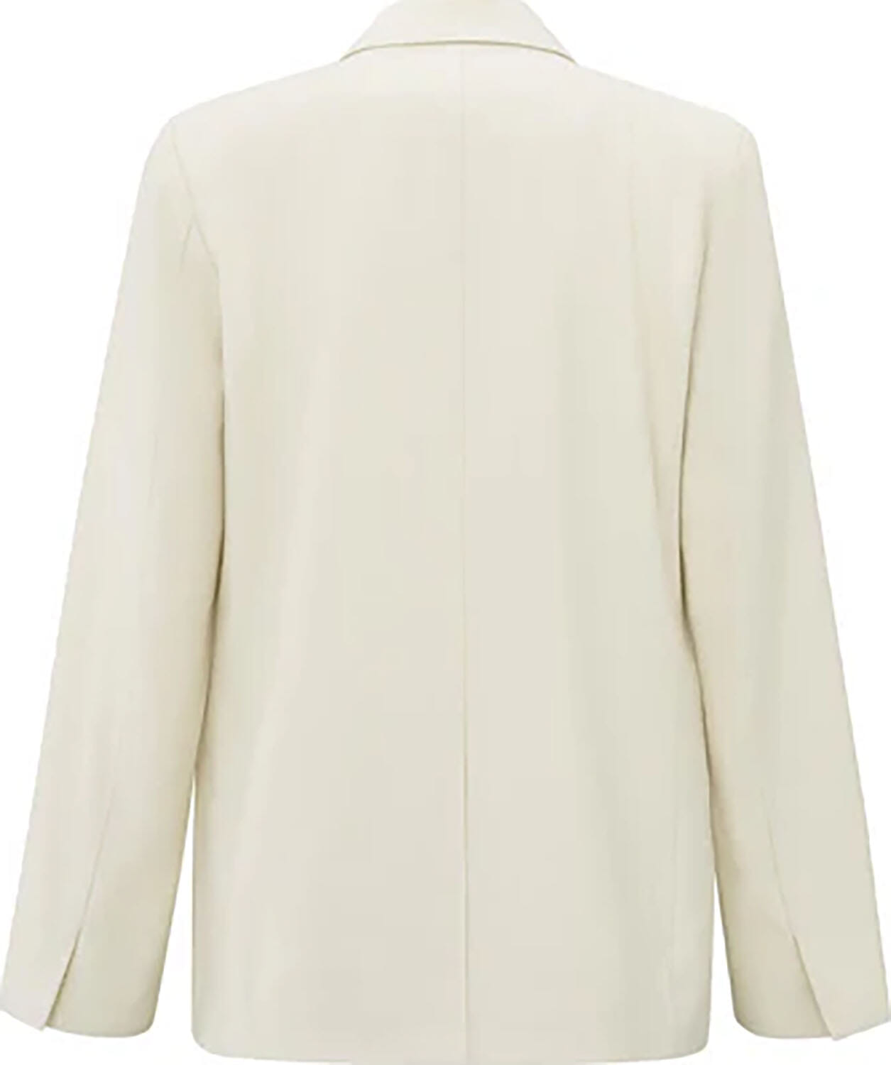 Deze elegante Yaya blazer is gemaakt van een luchtige, geweven stof en heeft een aansluitende pasvorm. Het ontwerp is voorzien van een klassieke reverskraag, subtiele schoudervulling en paspelzakken met een minimalistische uitstraling. De split aan de achterkant zorgt voor extra bewegingsvrijheid. Perfect voor zowel casual als zakelijke outfits.