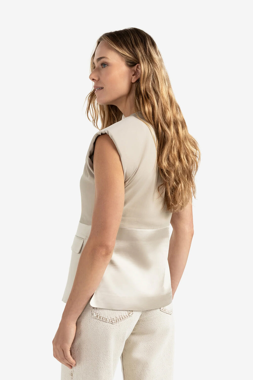 Blazer met satijnen details van yaya, ideaal voor nette gelegenheden. Deze effen dames blazers combineert een stijlvolle look met praktische zakken op de voorzijde en een elegante knoopsluiting. Het mouwloze ontwerp zorgt voor een verfijnde uitstraling die veelzijdig en tijdloos is.