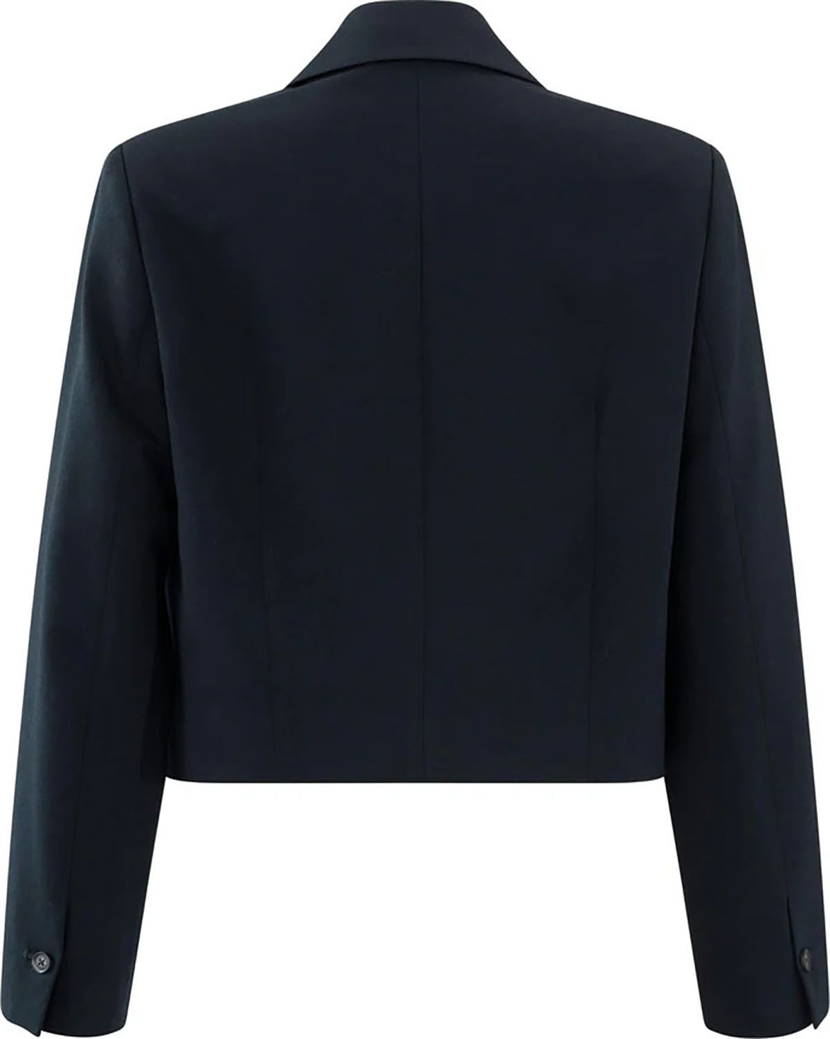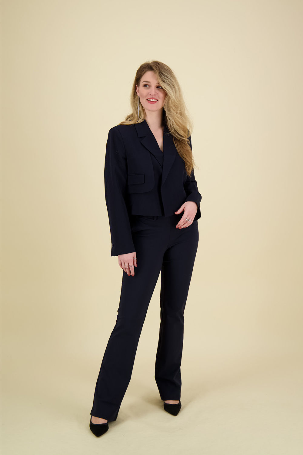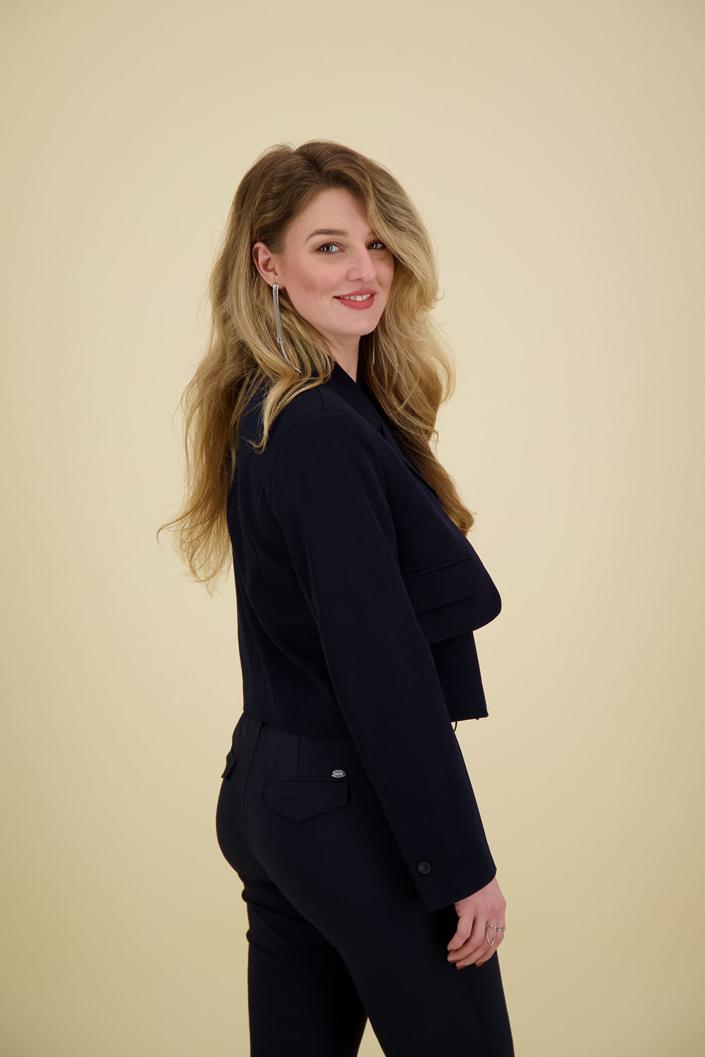 Blauwe cropped blazer, ideaal voor een moderne touch aan elke outfit. De flap details maken het ontwerp compleet.