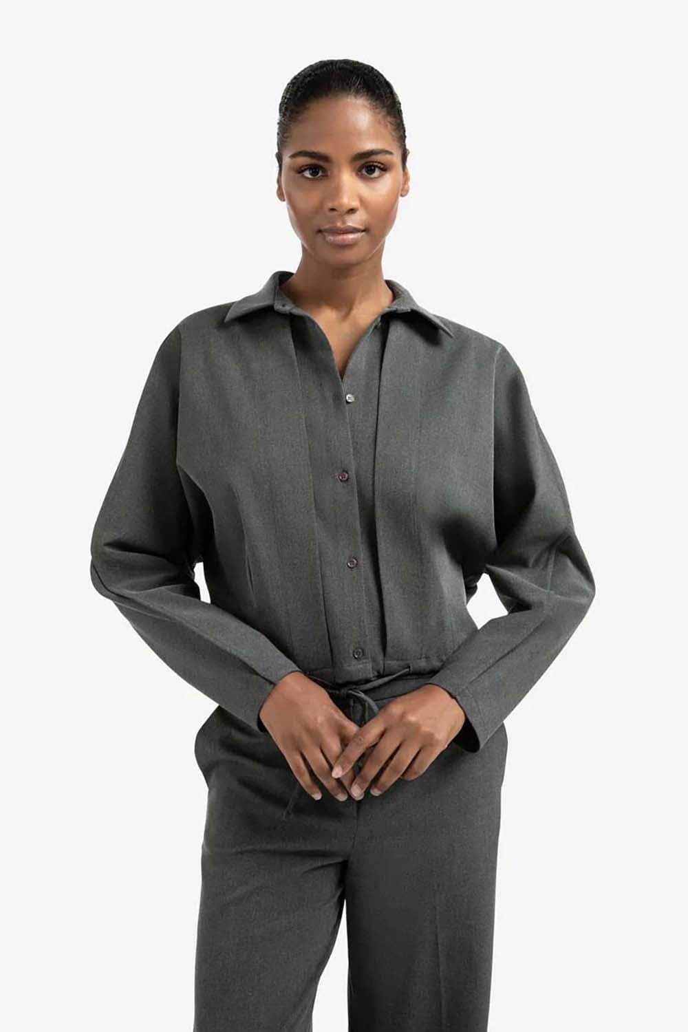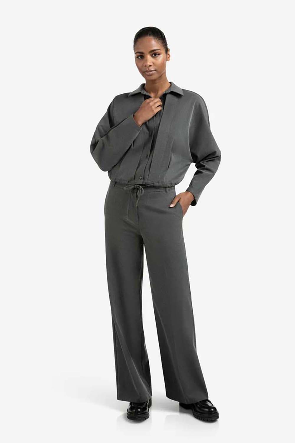 De blouse van Yaya combineert een elastische taille en overhemdkraag met lange mouwen voor een stijlvolle uitstraling. Met zowel voor- als achterzakken en een koordsluiting is het een veelzijdig kledingstuk. De effen stof maakt het geschikt voor elke gelegenheid, ideaal voor zakelijke stijl.