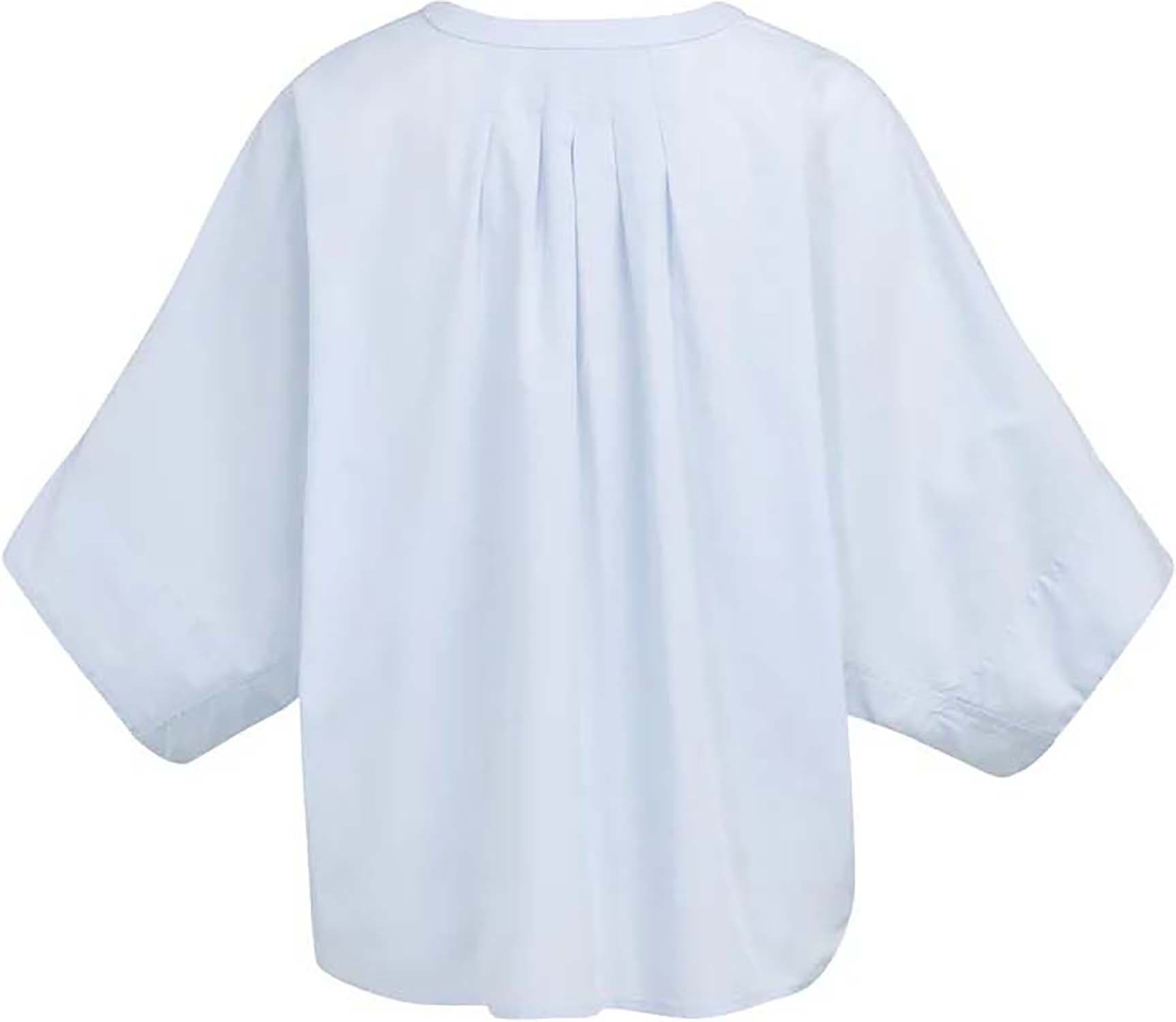 Blouse Batwing van Yaya heeft een oversized pasvorm met batwing mouwen in 3/4 lengte. De opstaande bandkraag met split hals geeft een rustige, minimalistische uitstraling. Het effen ontwerp en de knoopsluiting maken dit casual overhemd praktisch. Combineer met een jeans of pantalon.