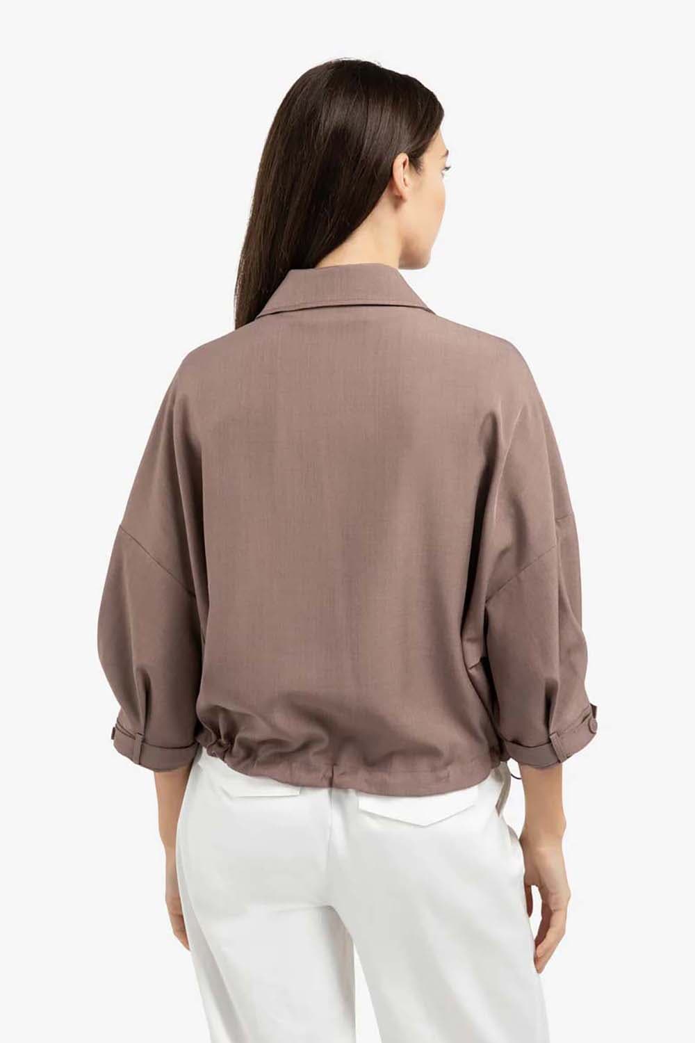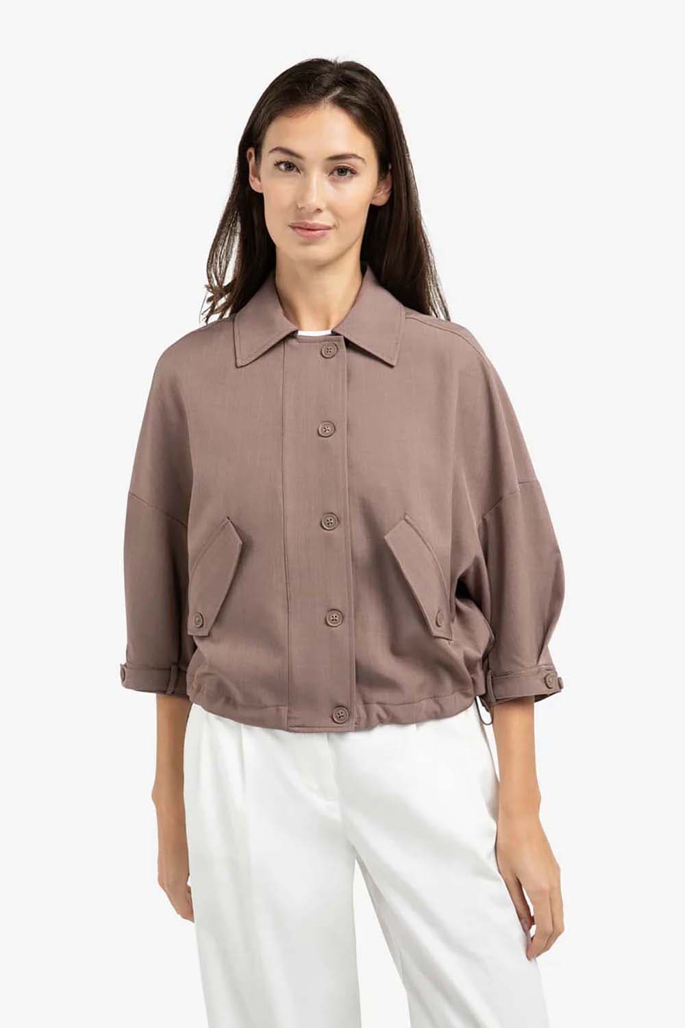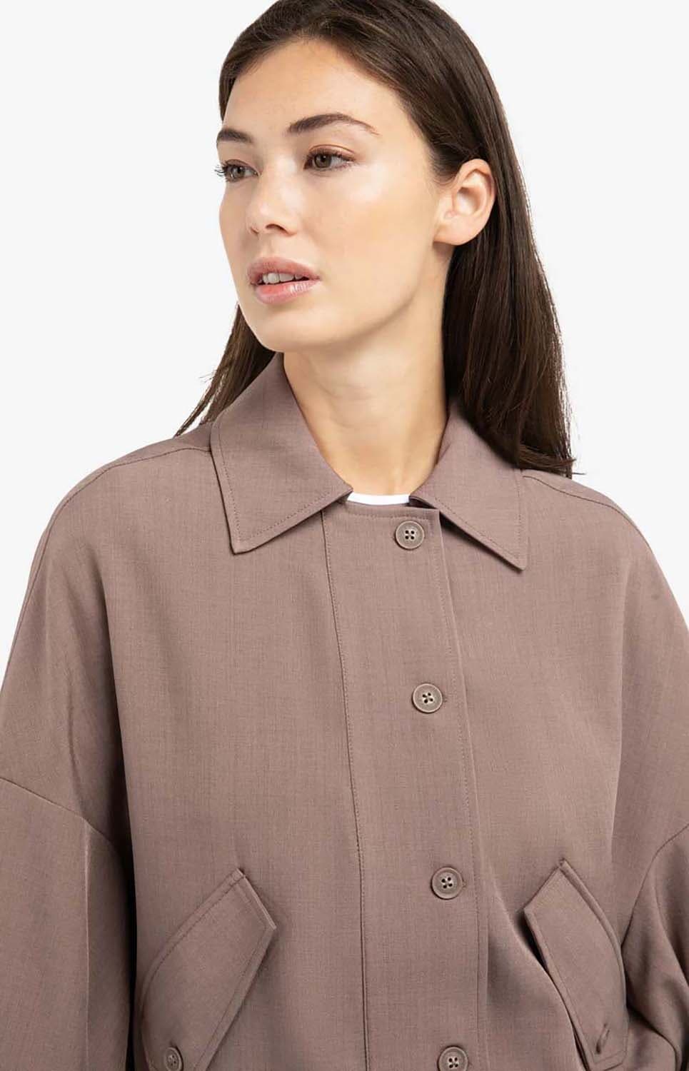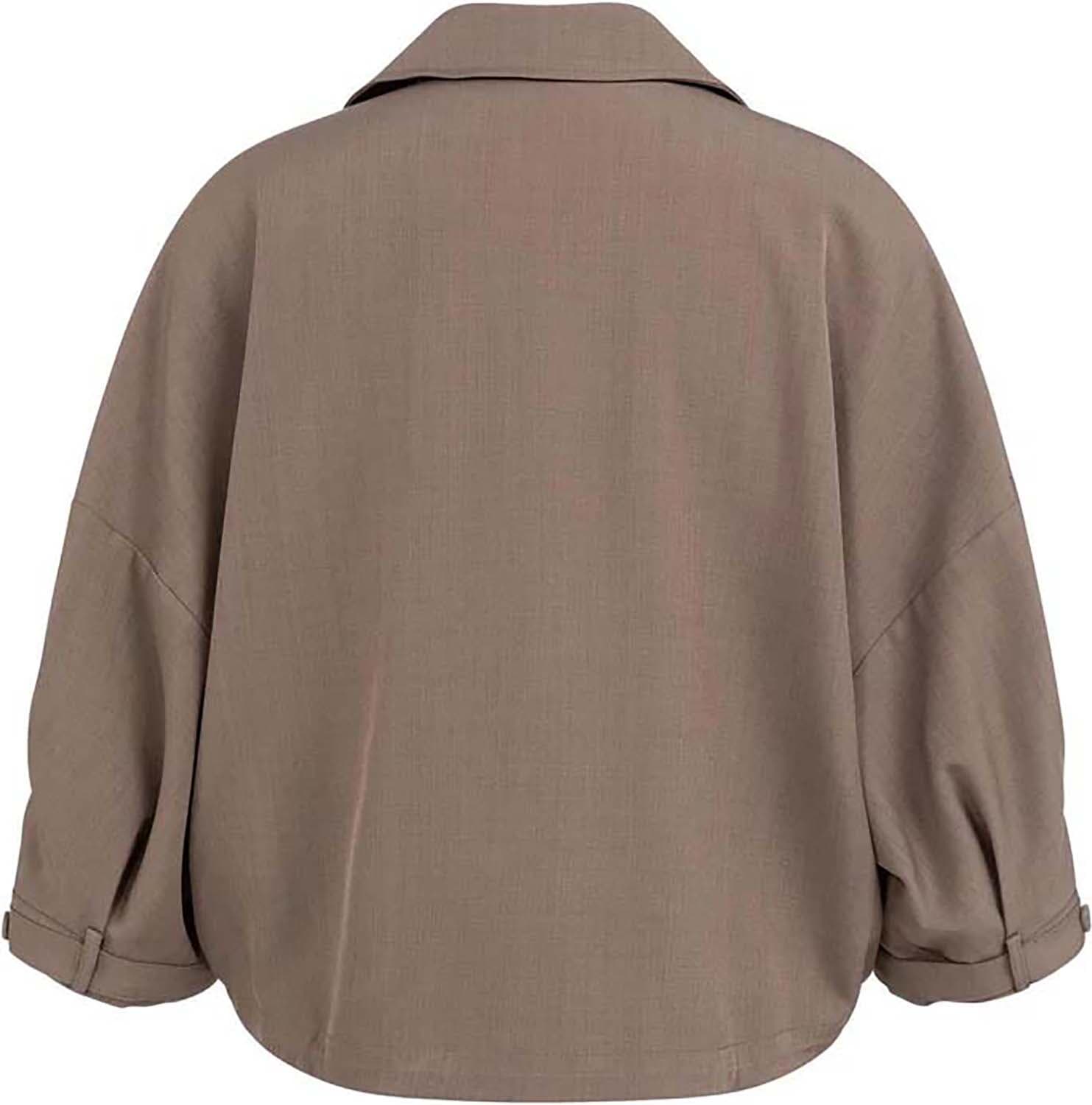 Blousejack van Yaya met casual, minimalistische uitstraling en boxy, oversized pasvorm. De spreidkraag en knoopsluiting geven een strak lijnenspel. Voorzakken met klep en brede manchetten zorgen voor praktische details. De effen stof en 3/4 mouwen maken combineren met jeans of pantalon eenvoudig.