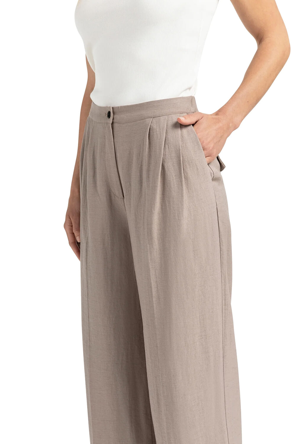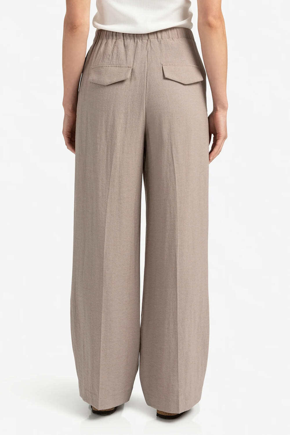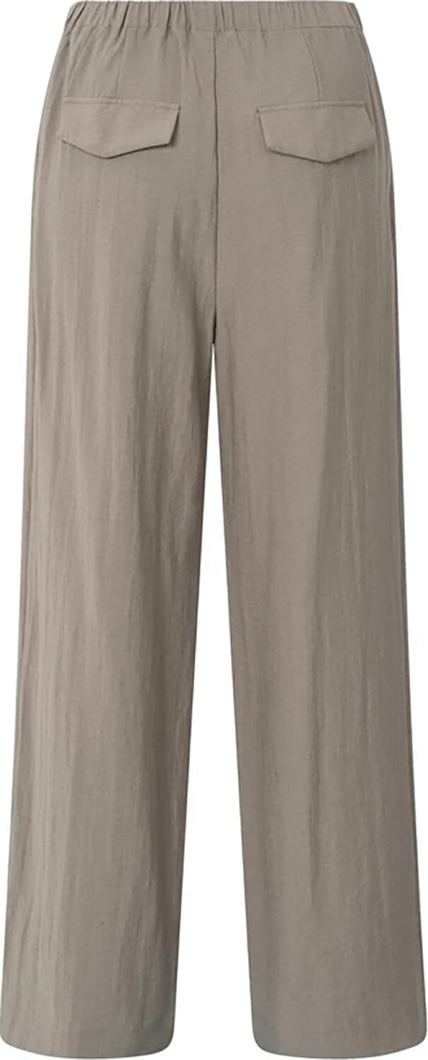 Ontdek de stijlvolle broek van Yaya met wijde pijpen en een elastische tailleband. Deze lange broek, ontworpen met minimalistische eenvoud, biedt een comfortabele pasvorm. Praktische zakken aan de achterzijde en een knoop- en ritssluiting zorgen voor een elegante en functionele uitstraling.