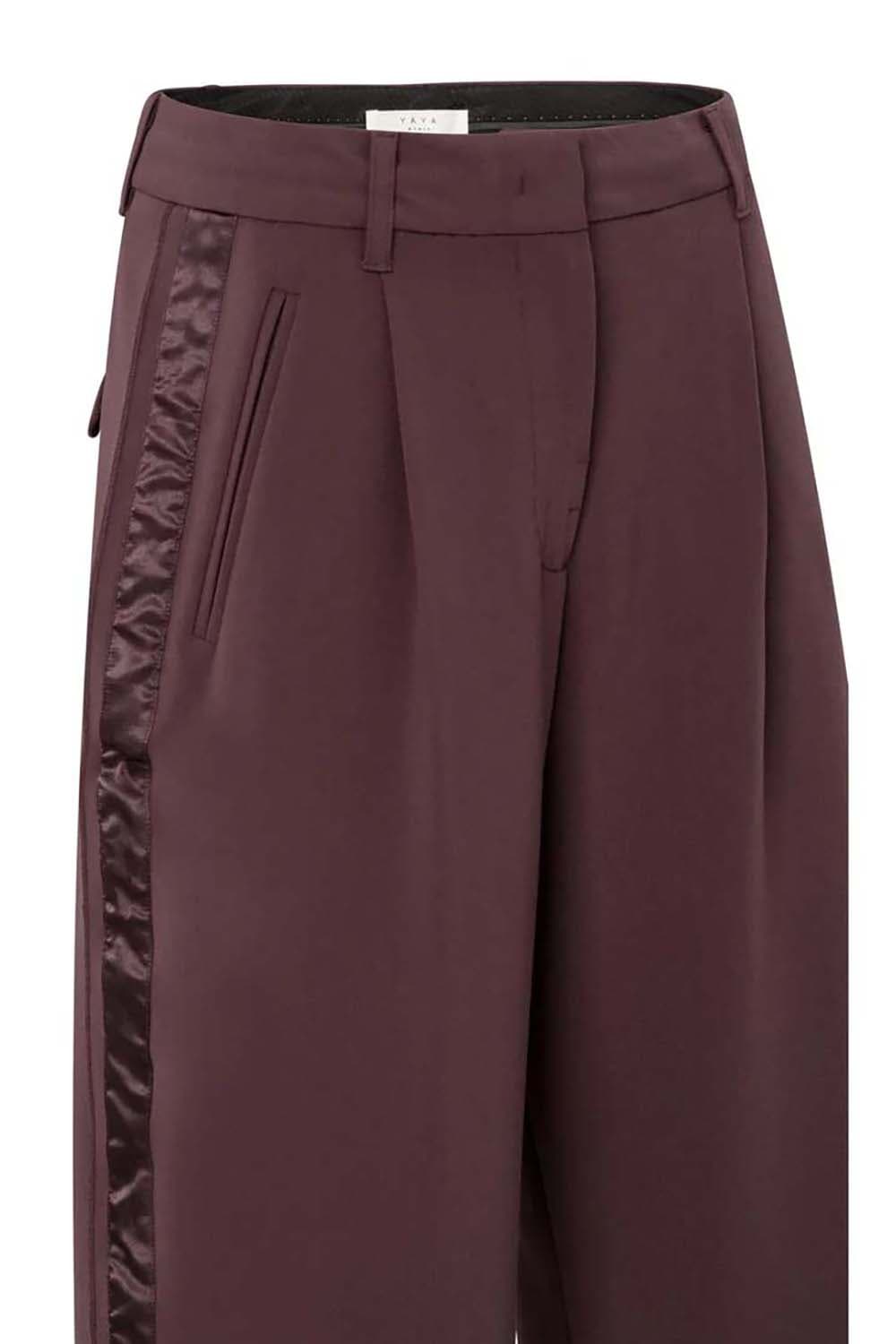 Ontdek de broek van Yaya, een lange broek met een verfijnde uitstraling. Met een normale taillehoogte, knoop- en ritssluiting, en losse pasvorm biedt deze pantalon zowel stijl als comfort. De subtiele zijstroken geven een elegante touch aan het ontwerp.